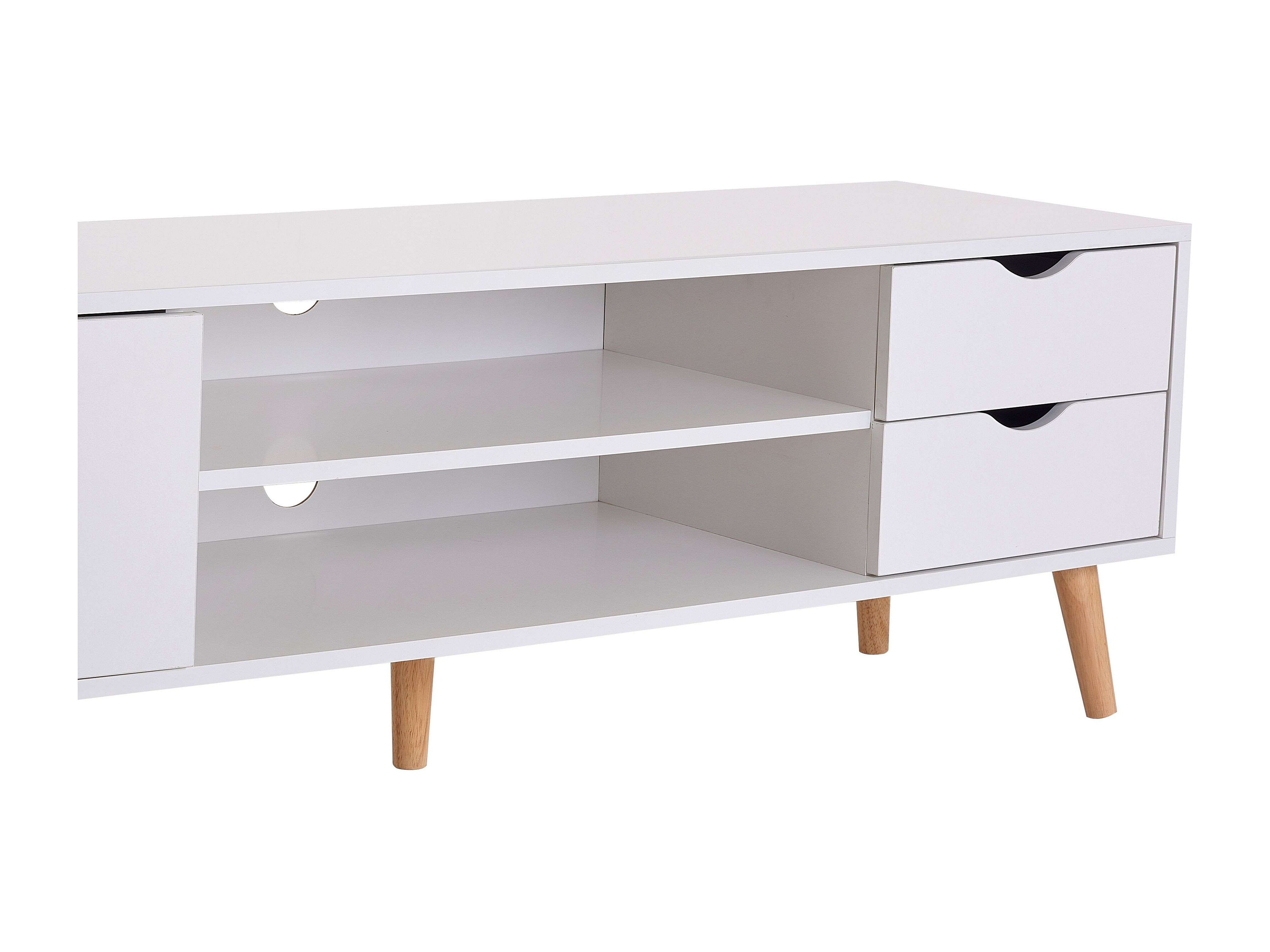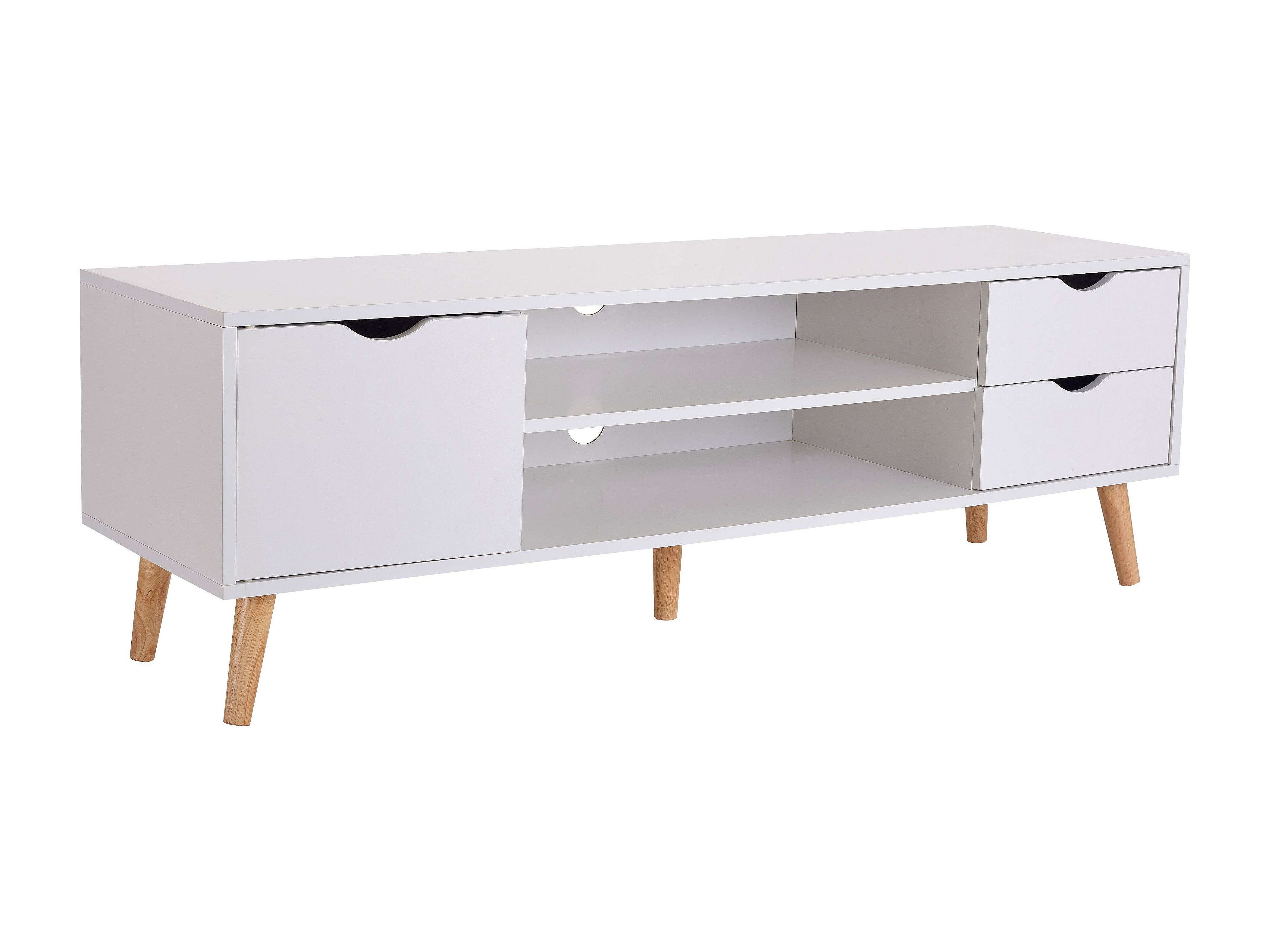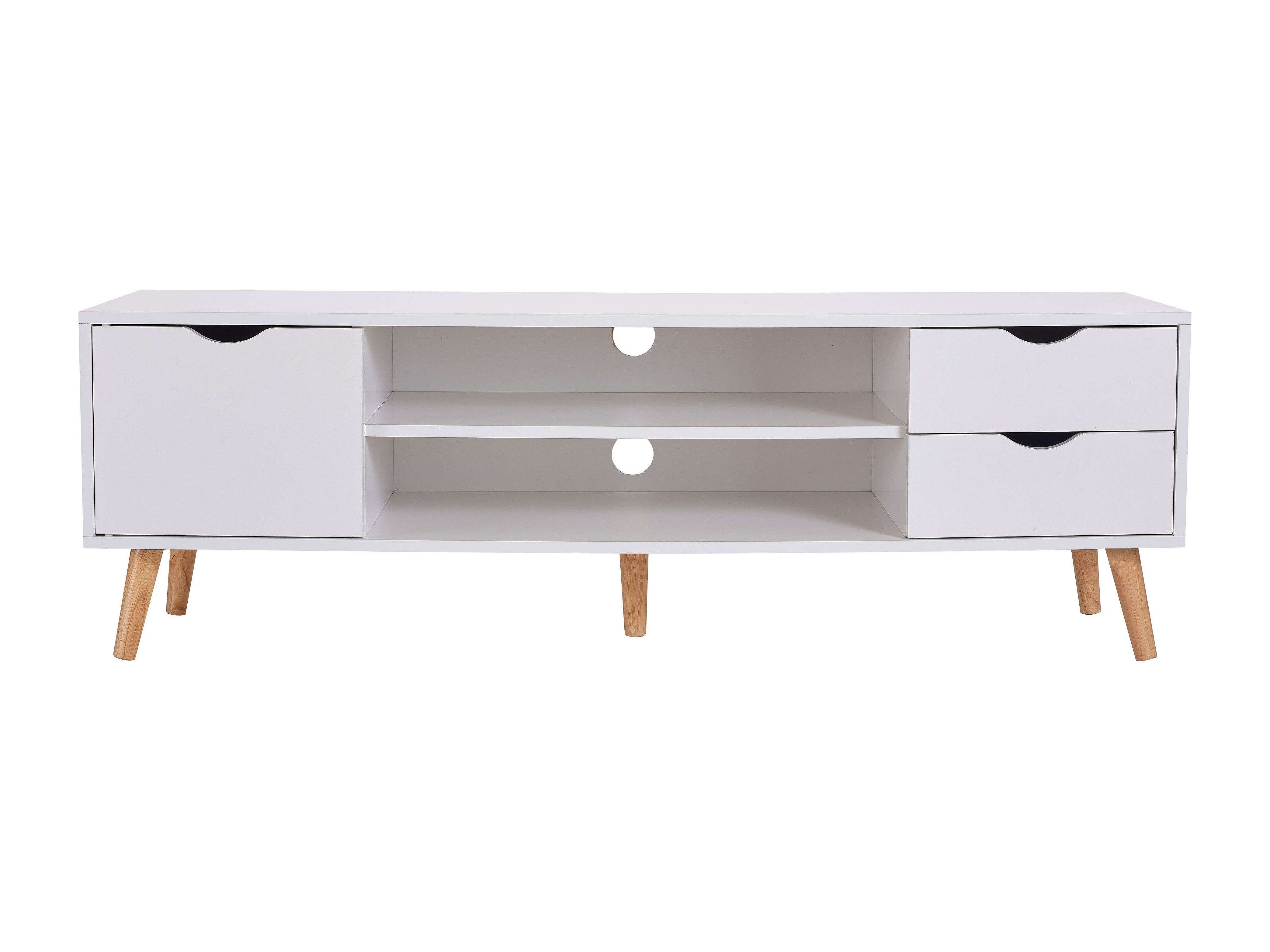 Meuble TV Fiana avec 2 tiroirs, 1 porte, étagère centrale, 140 x 46 x 40 cm, blanc/chêne