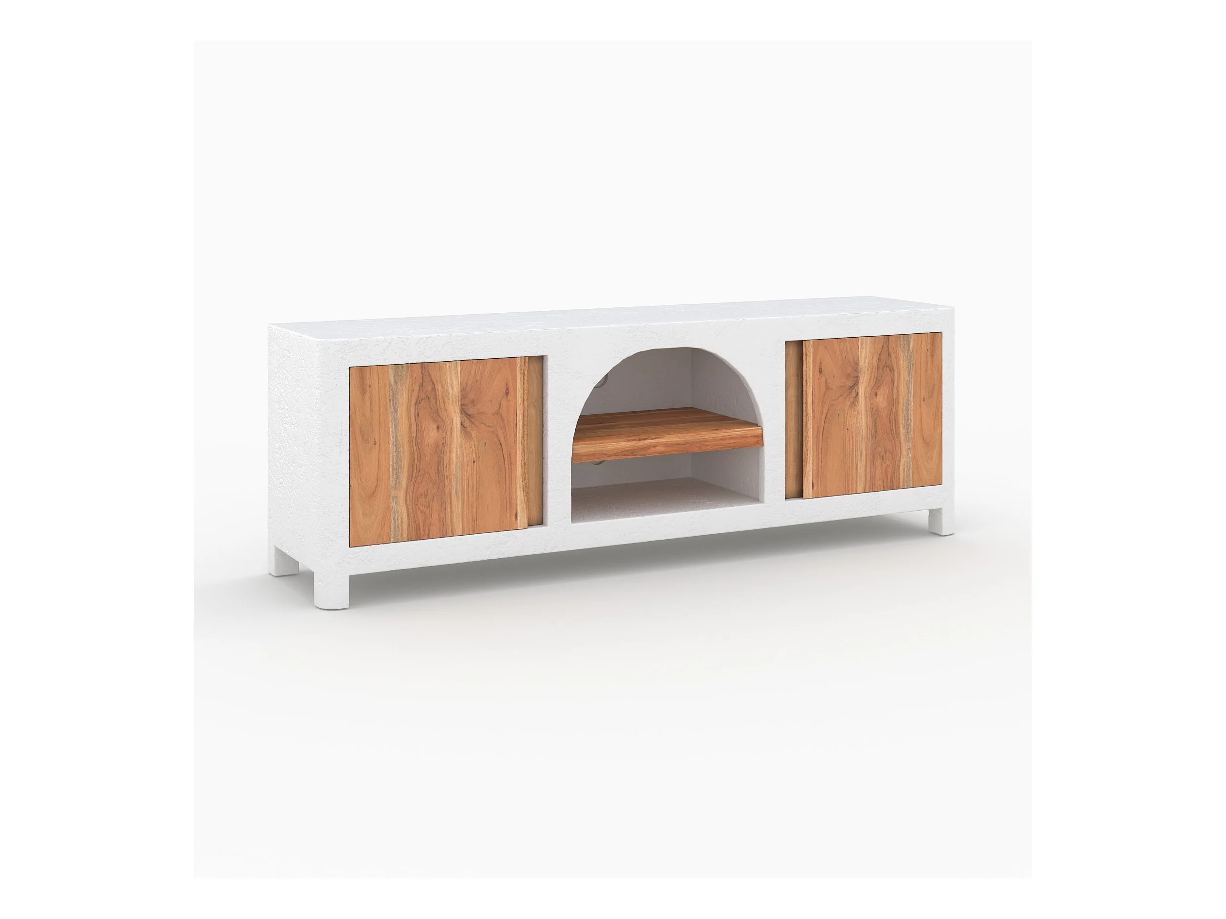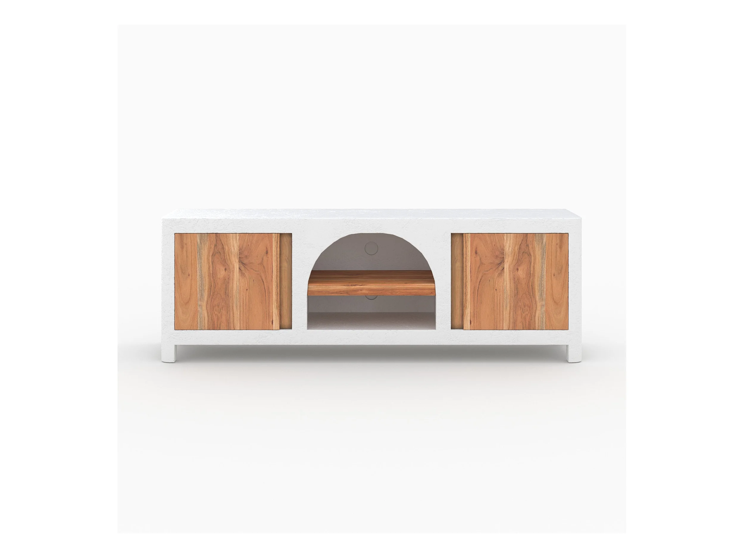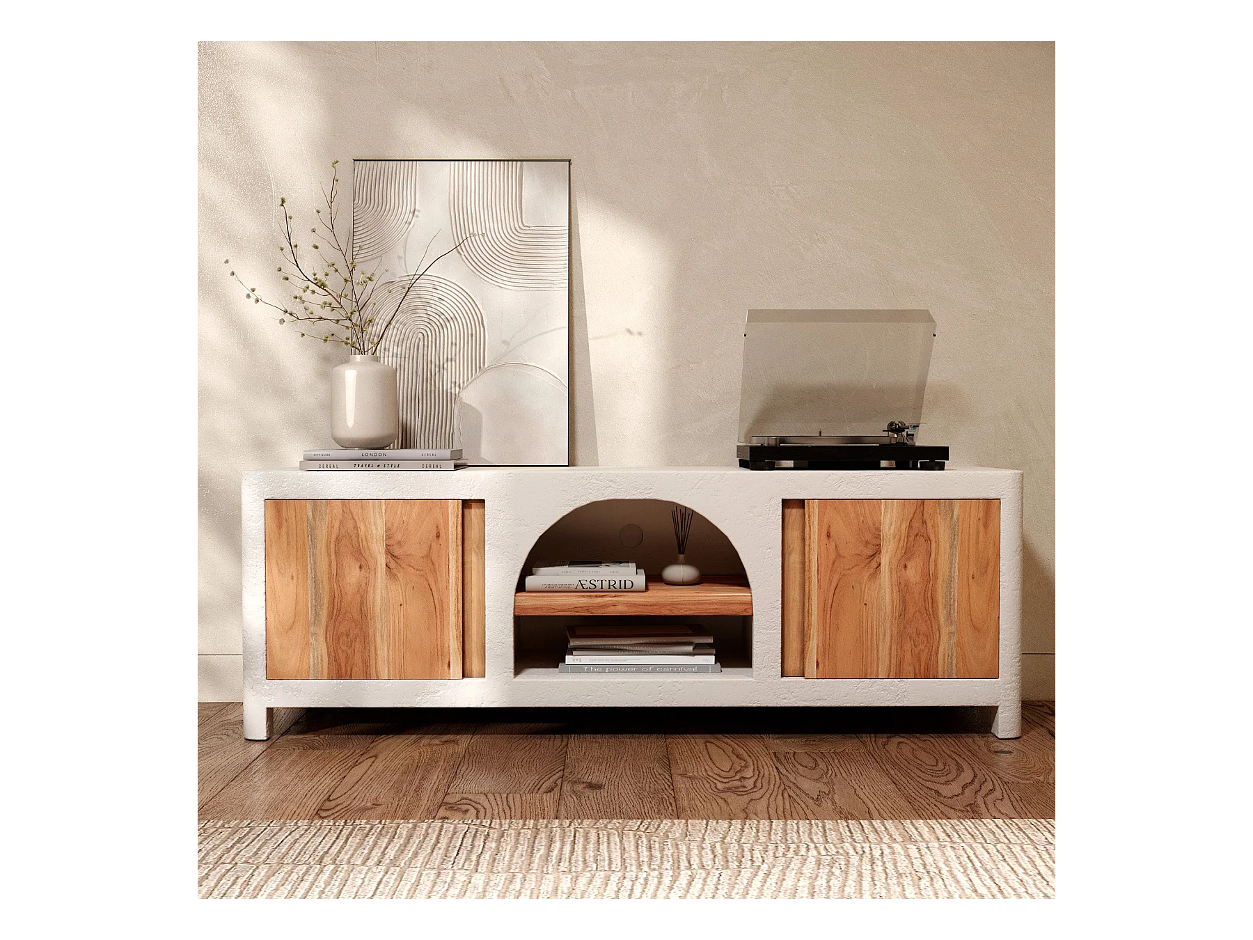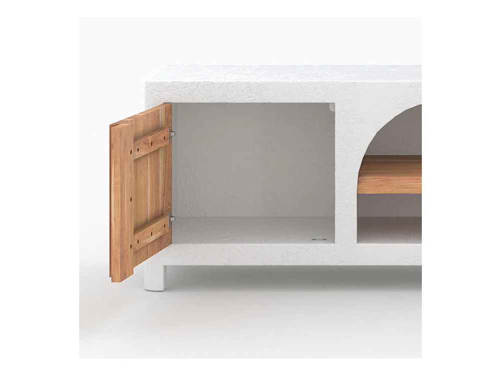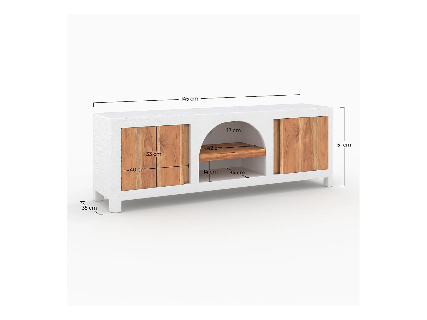 Meuble TV en béton blanc cassé et bois d'acacia 145 cm - Fira