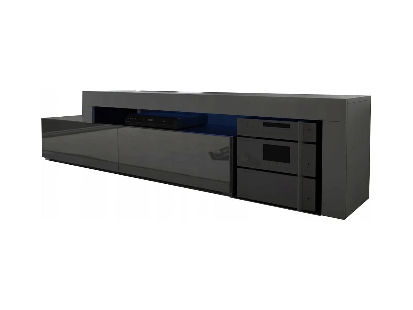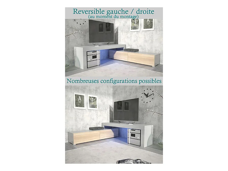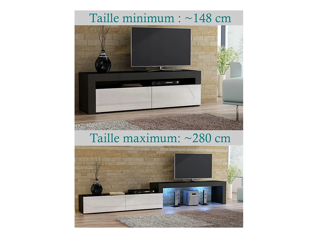 Meuble TV Flex Noir M et Noir laqué - LED Inclus - EXTENSIBLE - ANGLE