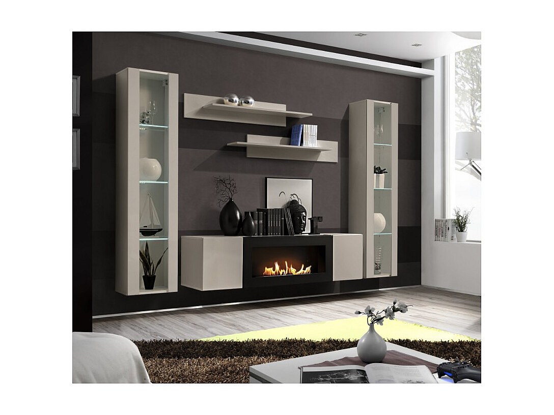 Meuble TV FLY cachemire – avec cheminée bio-éthanol intégrée
