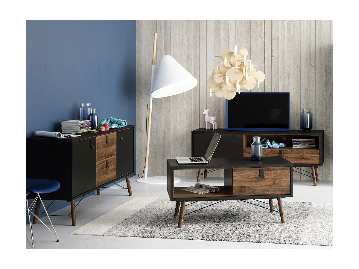 Très élégante la collection FURESO, sublimera votre décoration avec ses coloris noyer et anthracite. Ce duo de couleurs redonne une touche moderne à cette collection d'inspiration vintage. Conçue avec une structure en panneaux de particules, cette collection vous offre de nombreuses possibilités de rangements. De quoi aménager un intérieur classe et ordonné.