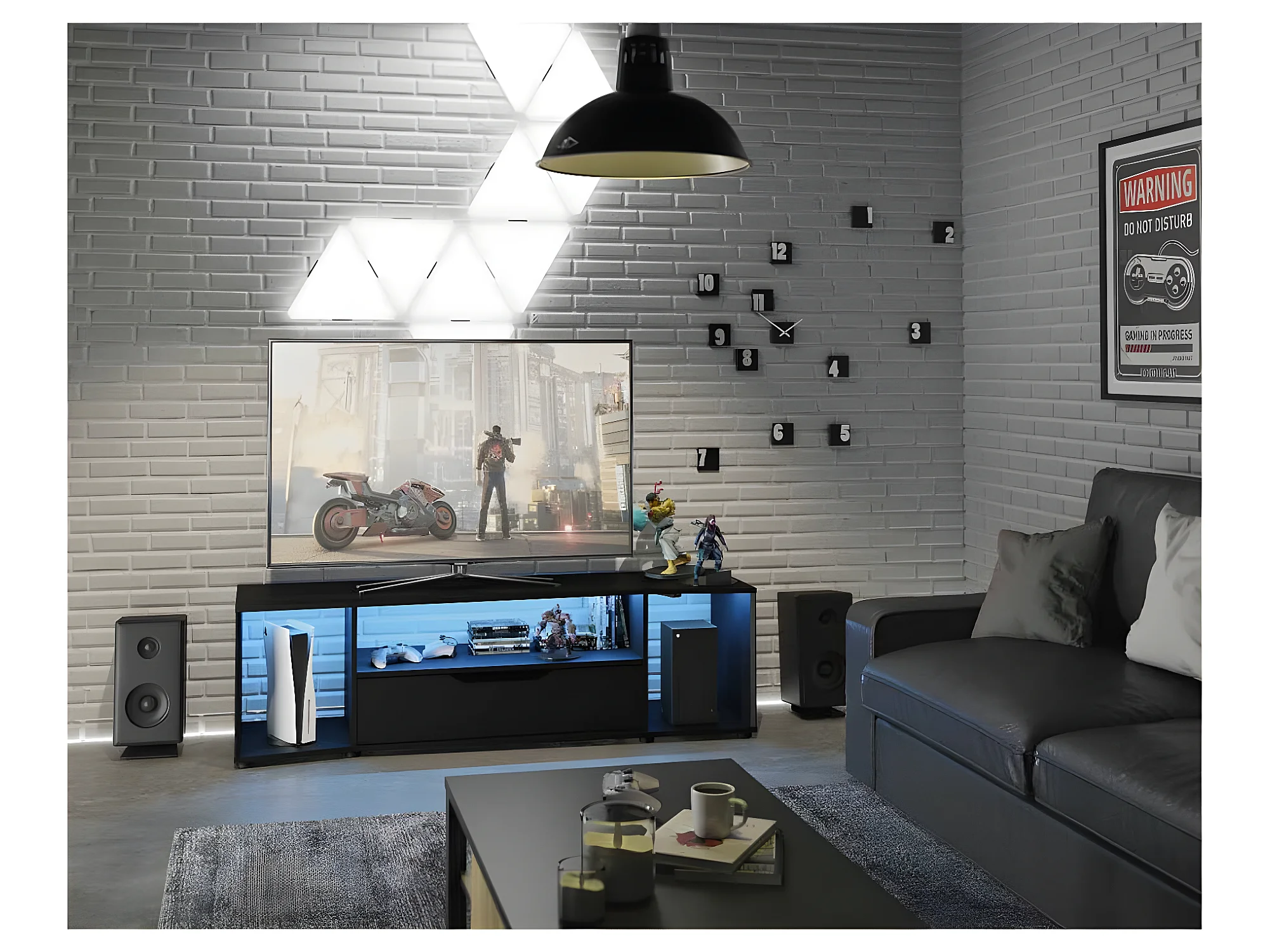 Meuble TV Gamer 1 tiroir 3 niches noir - LAIRA