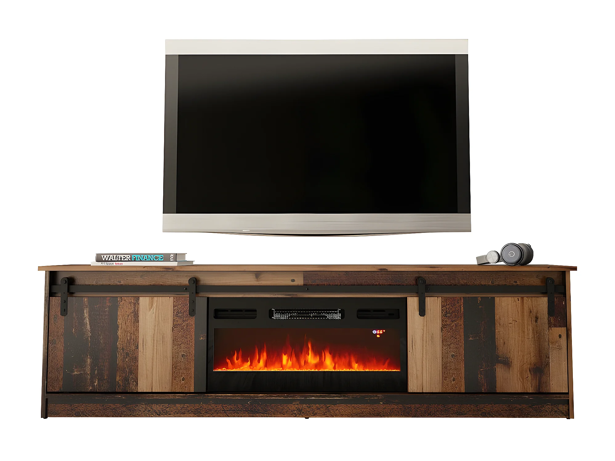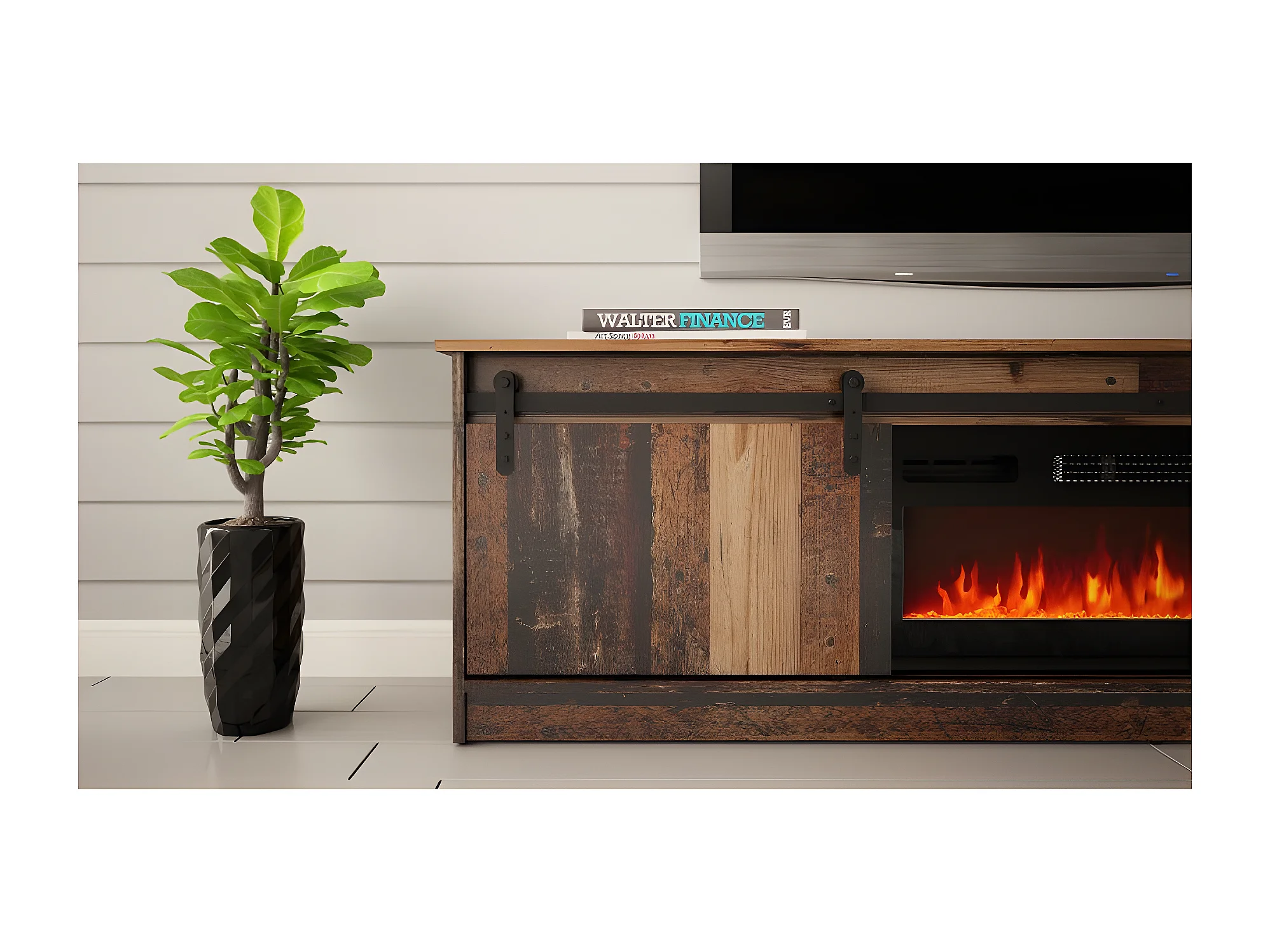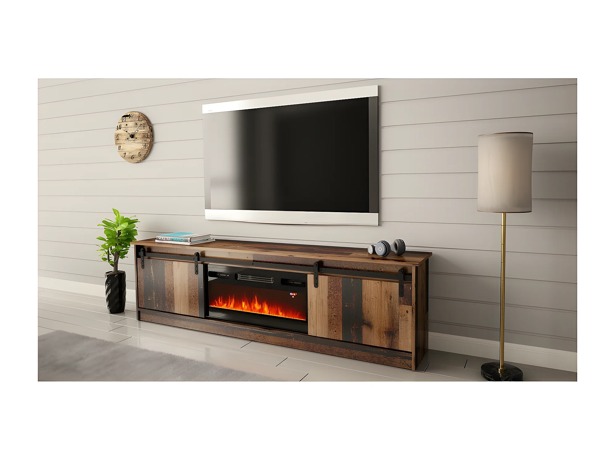 Meuble TV GRANIO avec cheminée style industriel vintage