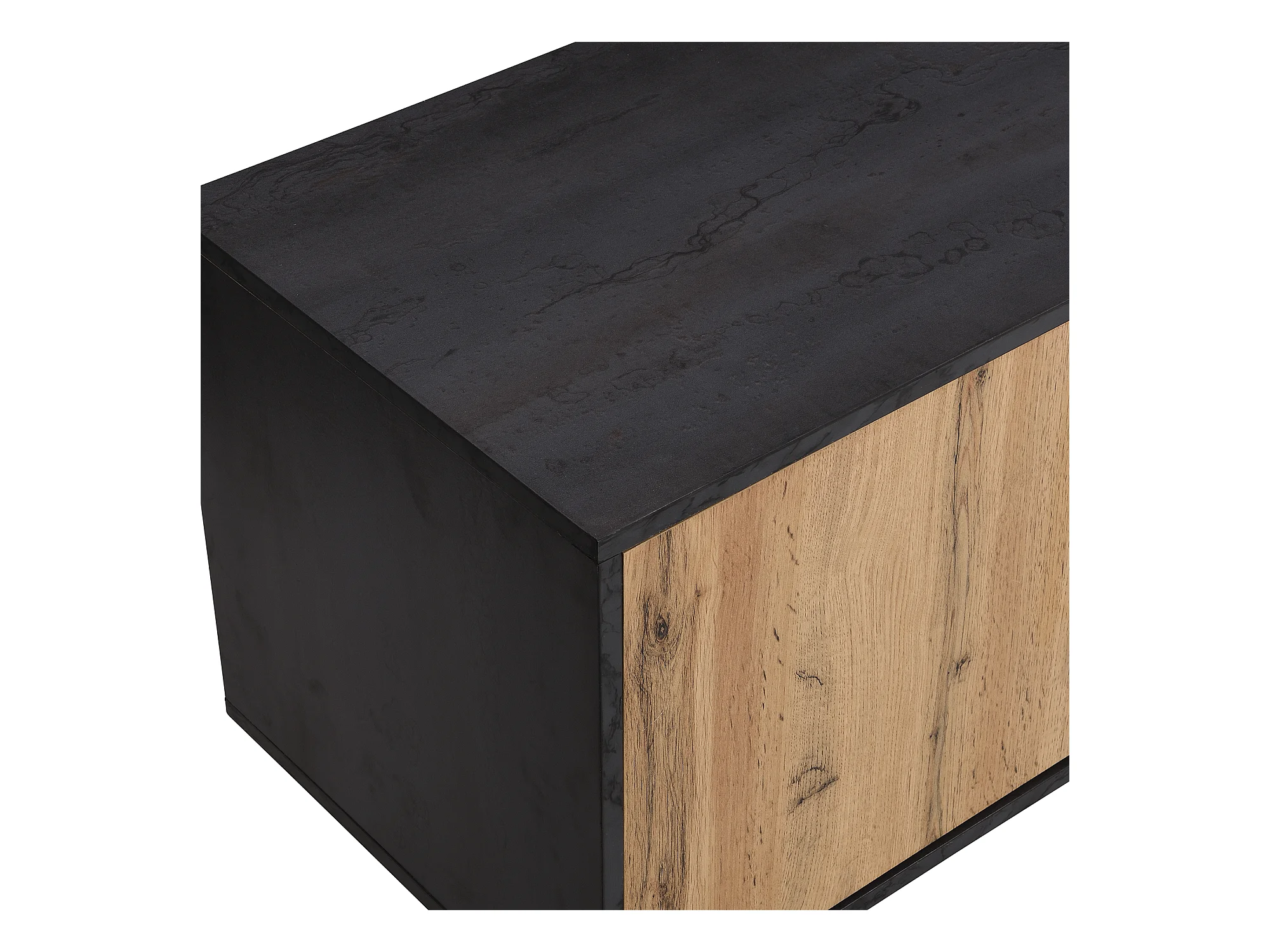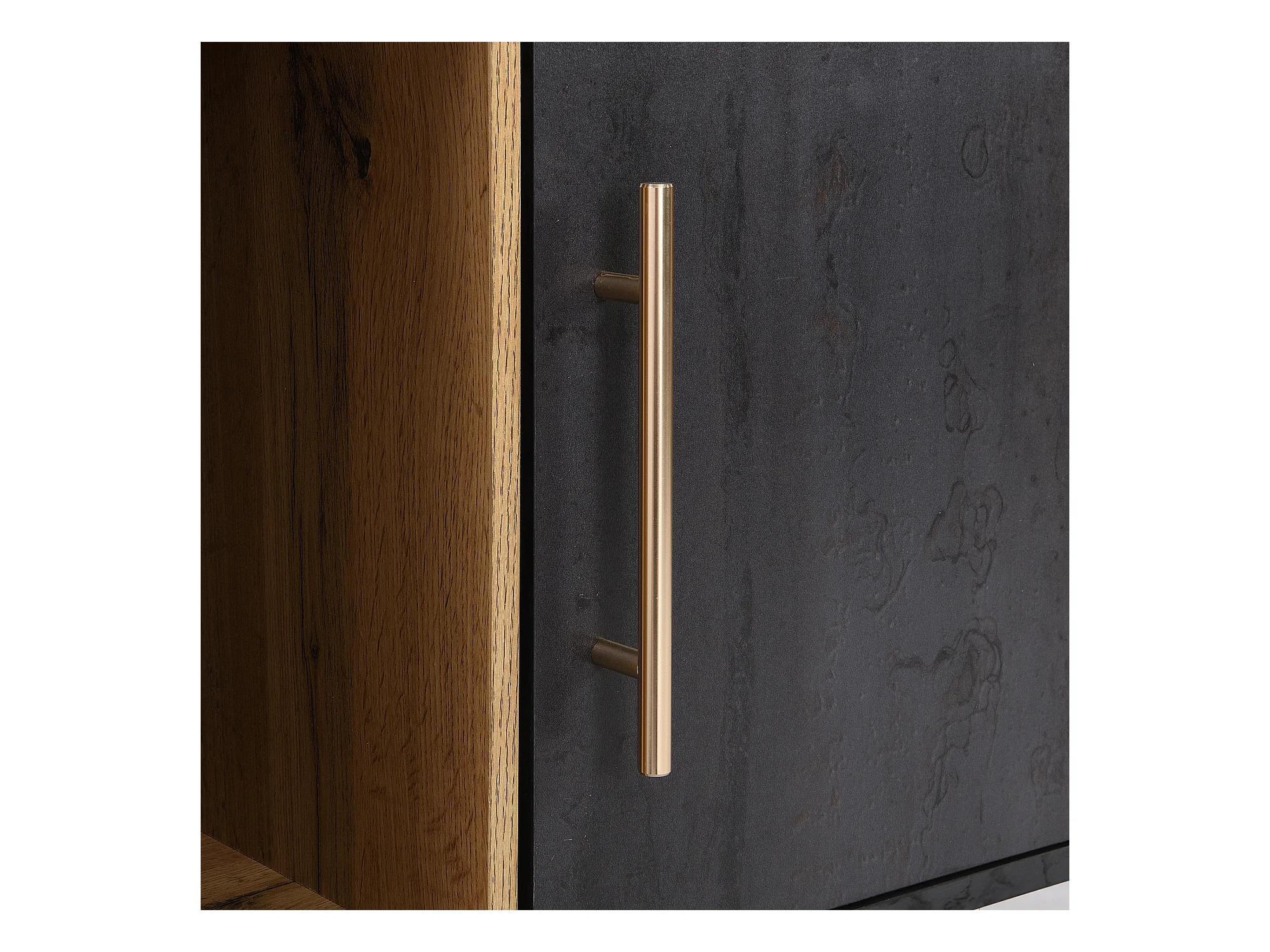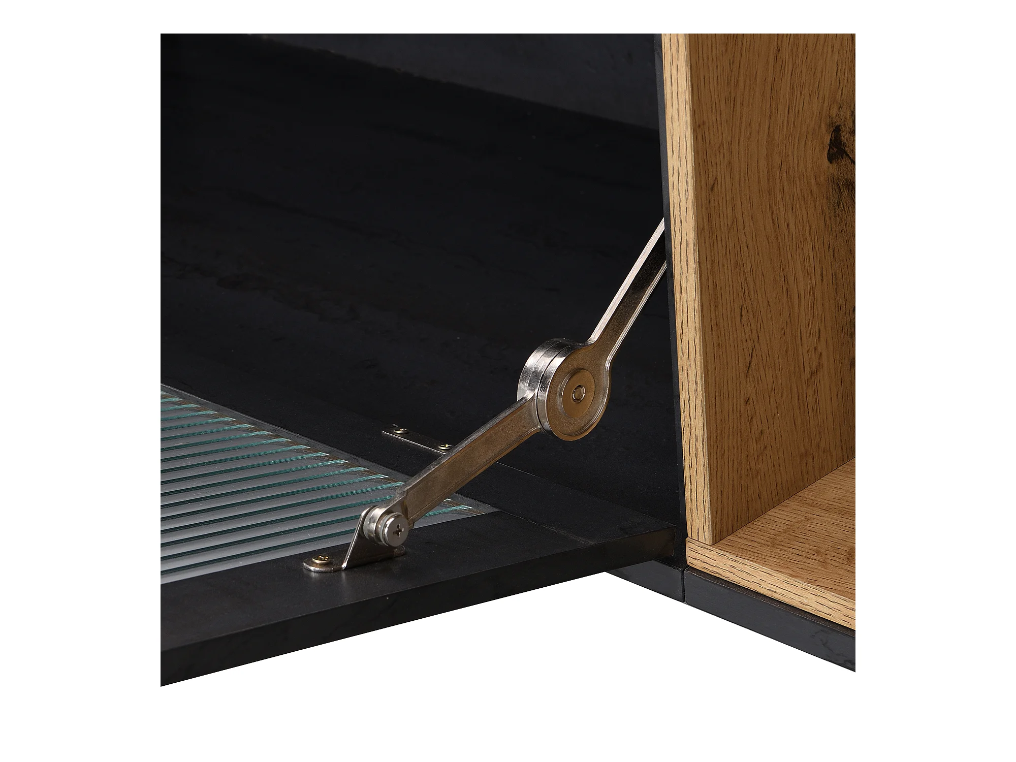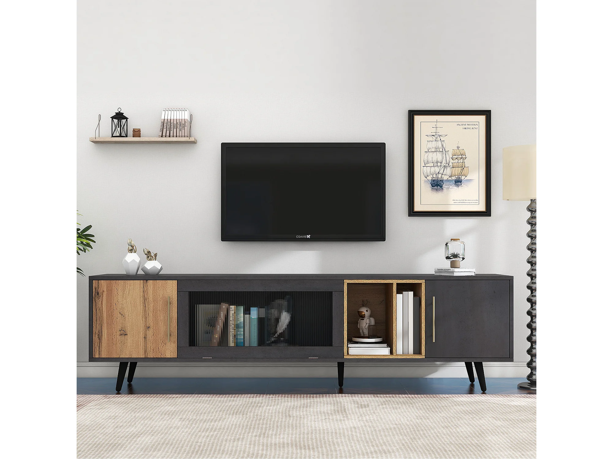 Meuble TV gris et verre ondulé avec 3 portes battants niche ouvert rangement 200 x 40 COVUNS