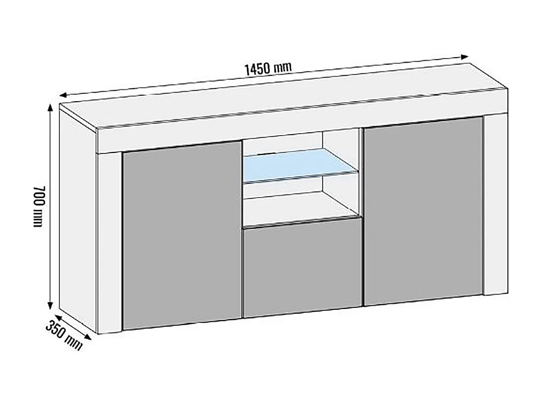 Meuble TV haut BIG JIVE 145 cm blanc laqué avec LEDS