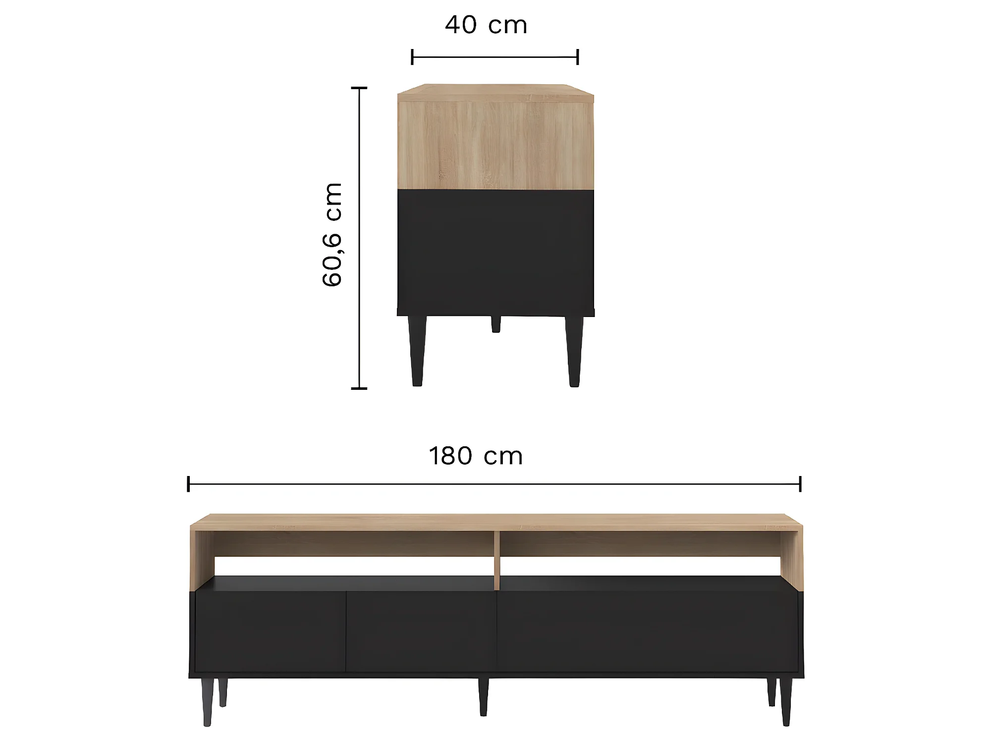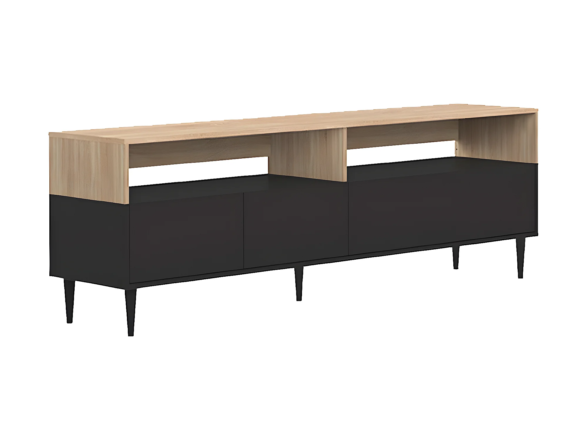 Meuble TV HORIZON - noir et chêne naturel - TEMAHOME