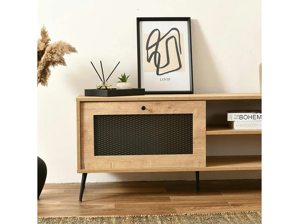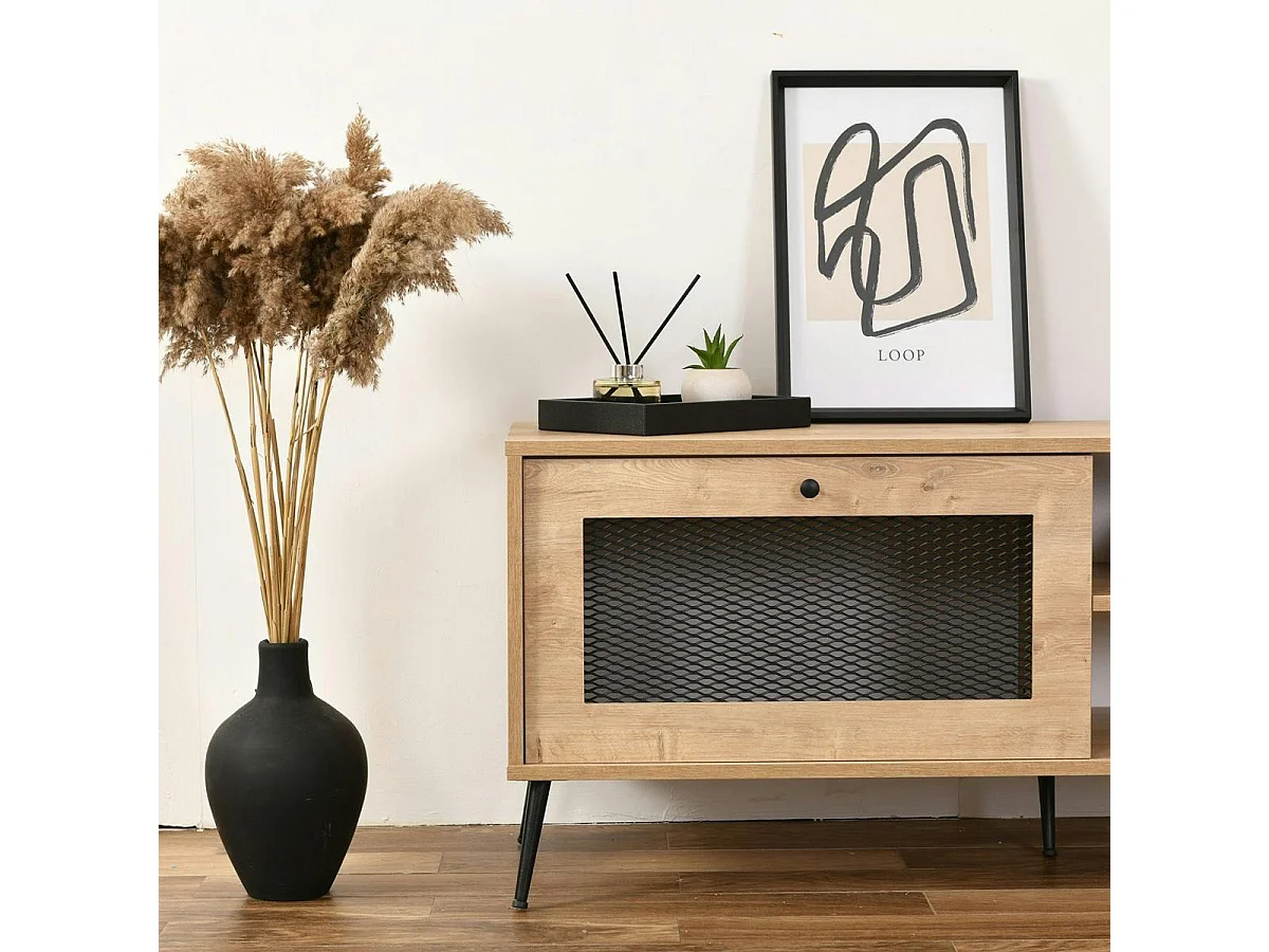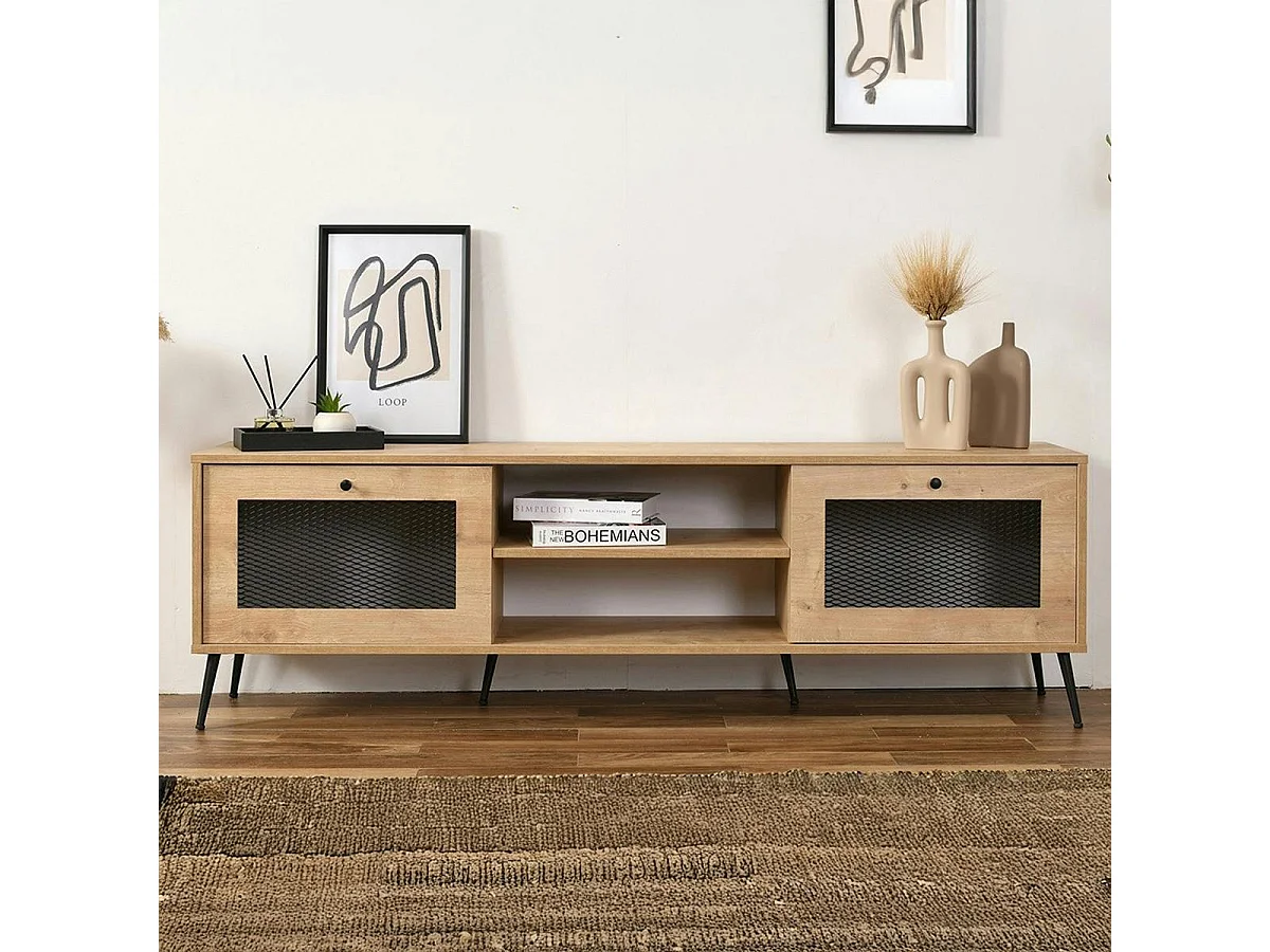 Meuble TV industriel 2 portes grillagées 2 niches JENA