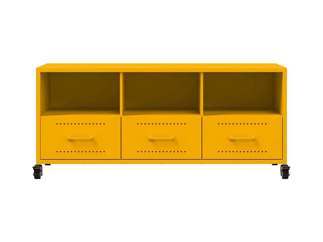 Meuble TV jaune moutarde 100,5x39x43,5 cm acier laminé à froid