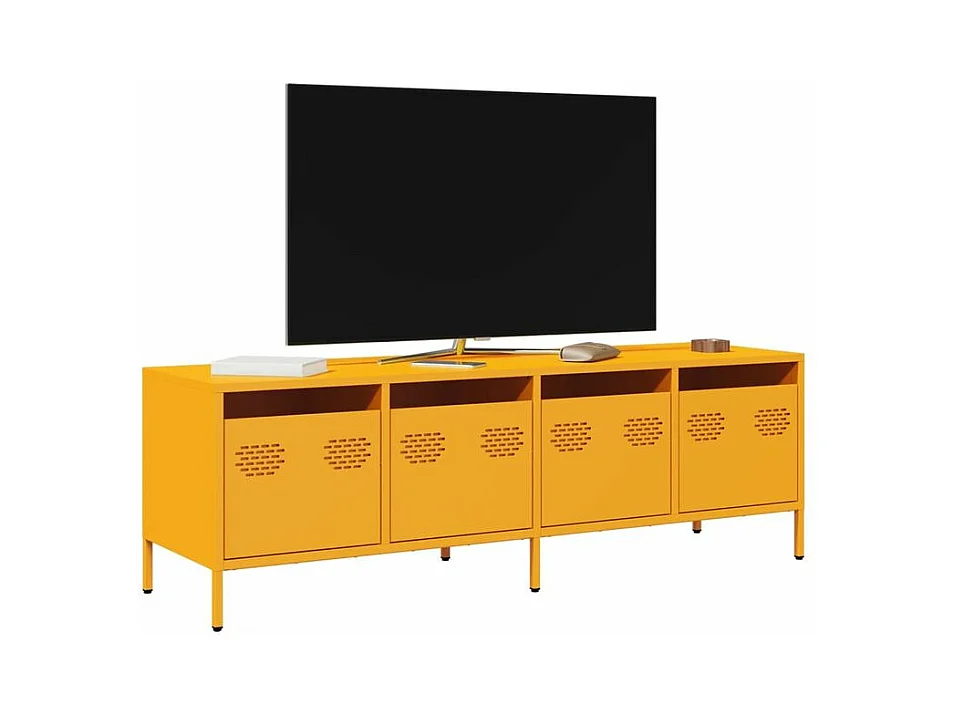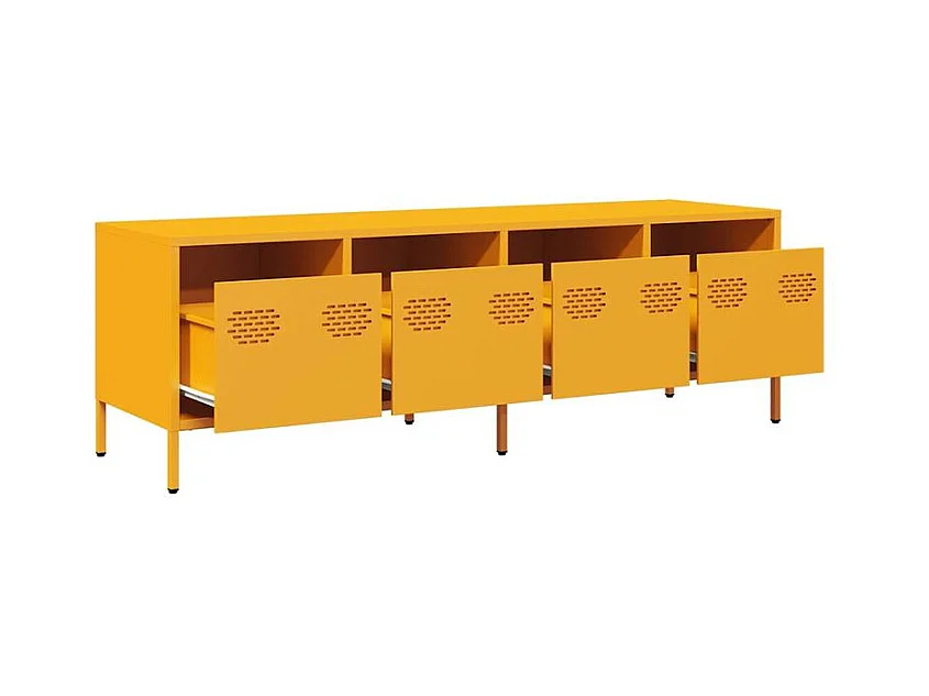 Meuble TV jaune moutarde 135x39x43,5 acier laminé à froid