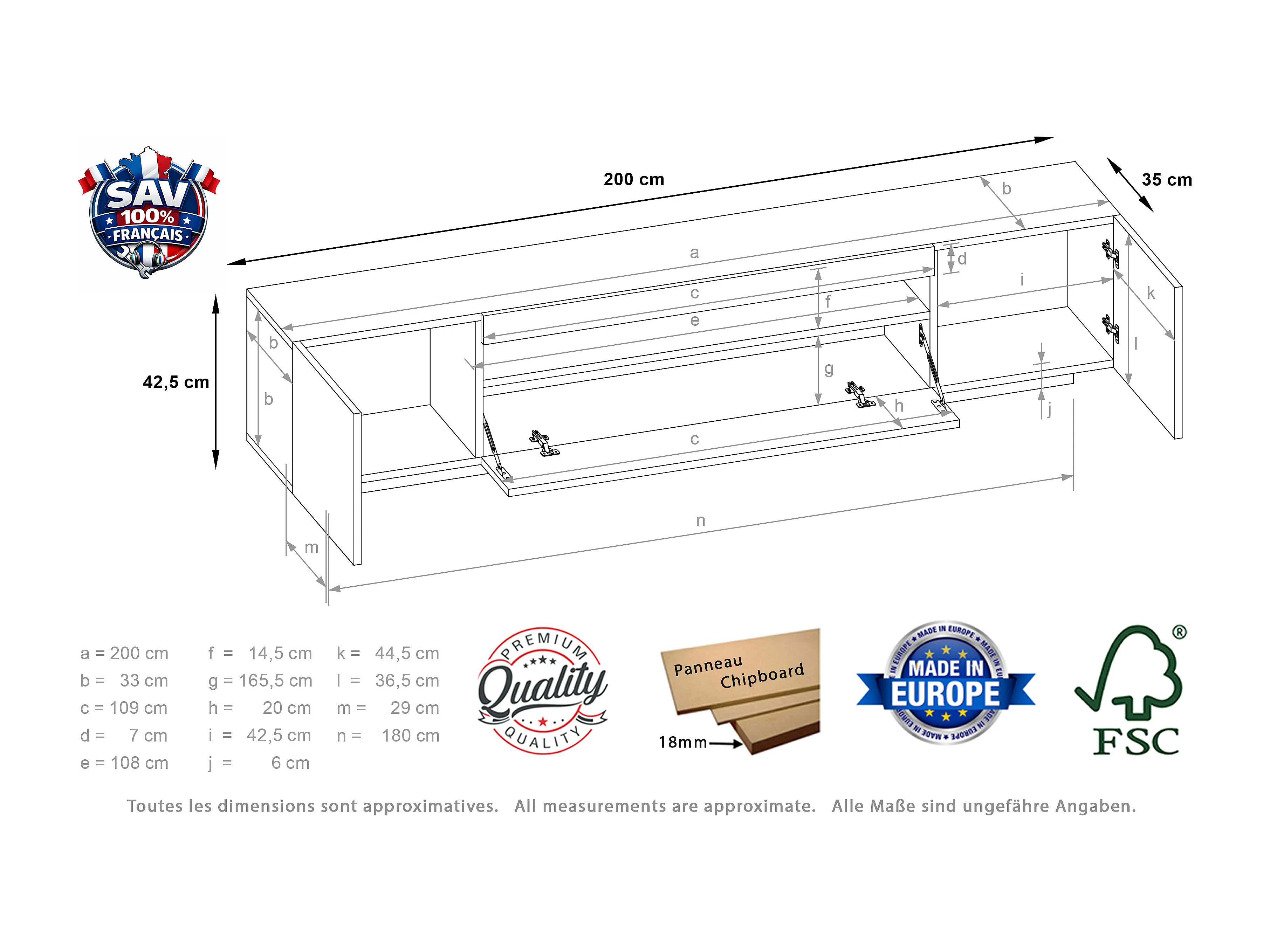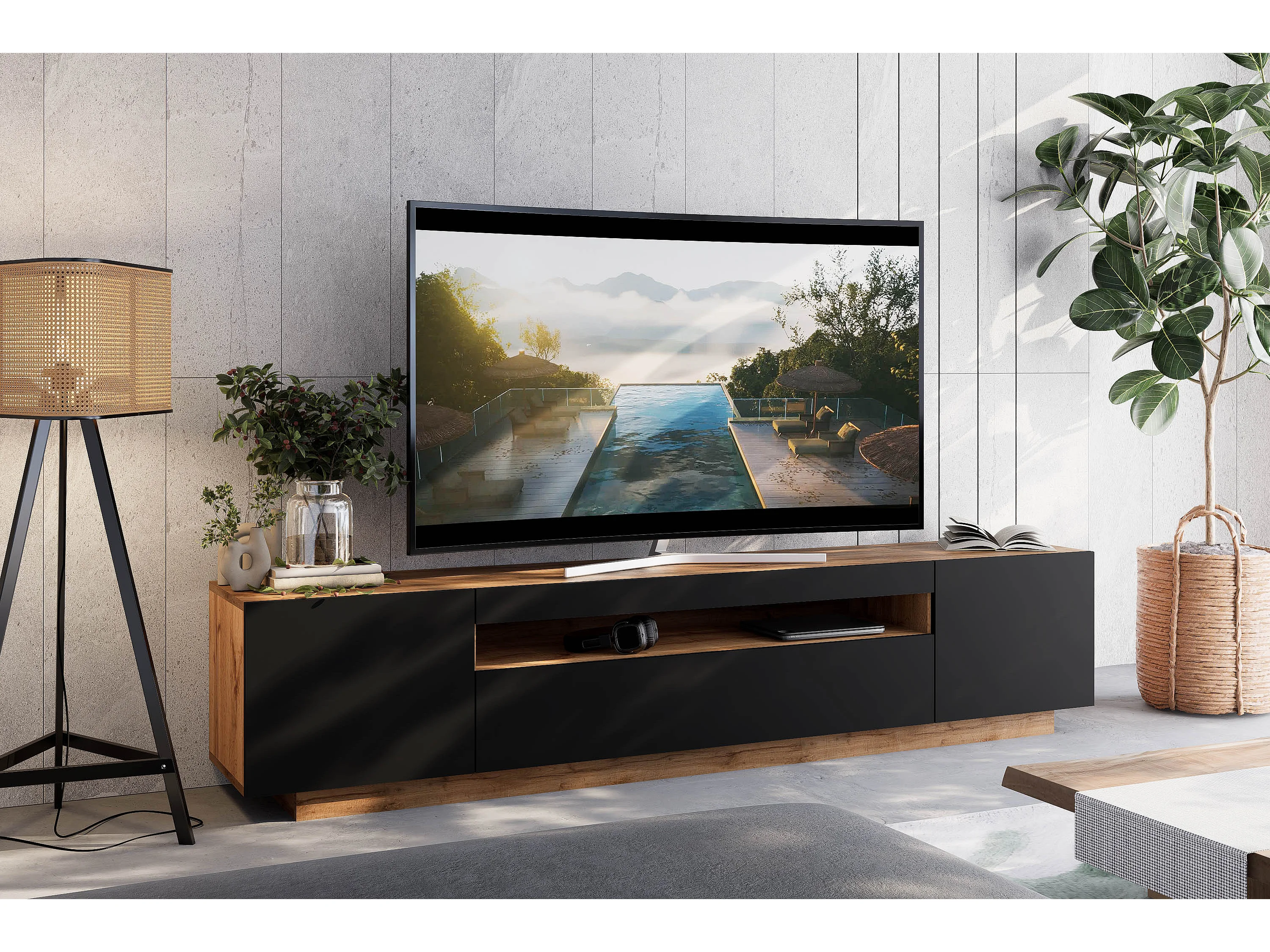 Meuble TV KUSH 200 cm bois et noir style industriel contemporain