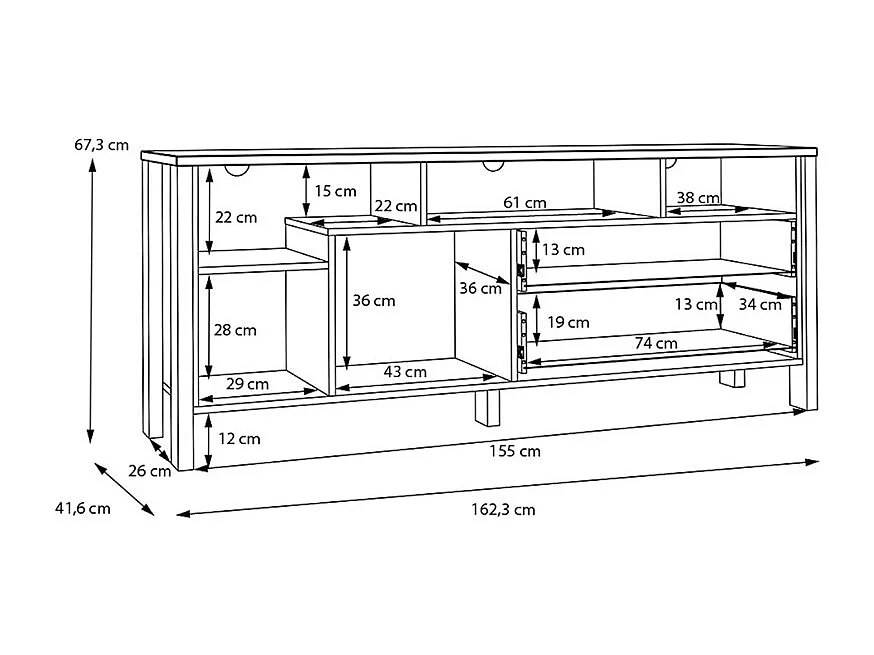 Meuble TV L. 162 cm avec décor gris clair et chêne - DEVONNE