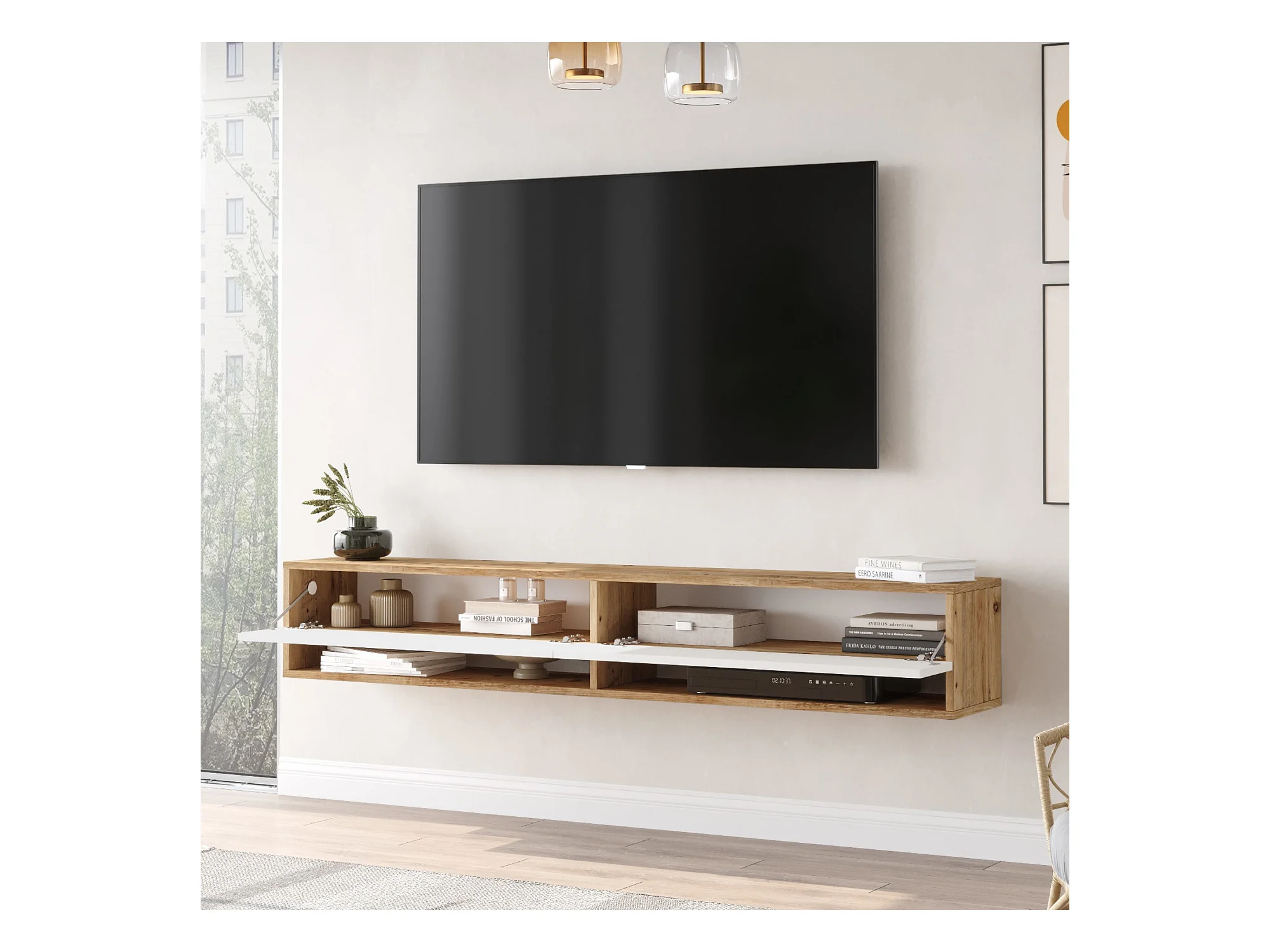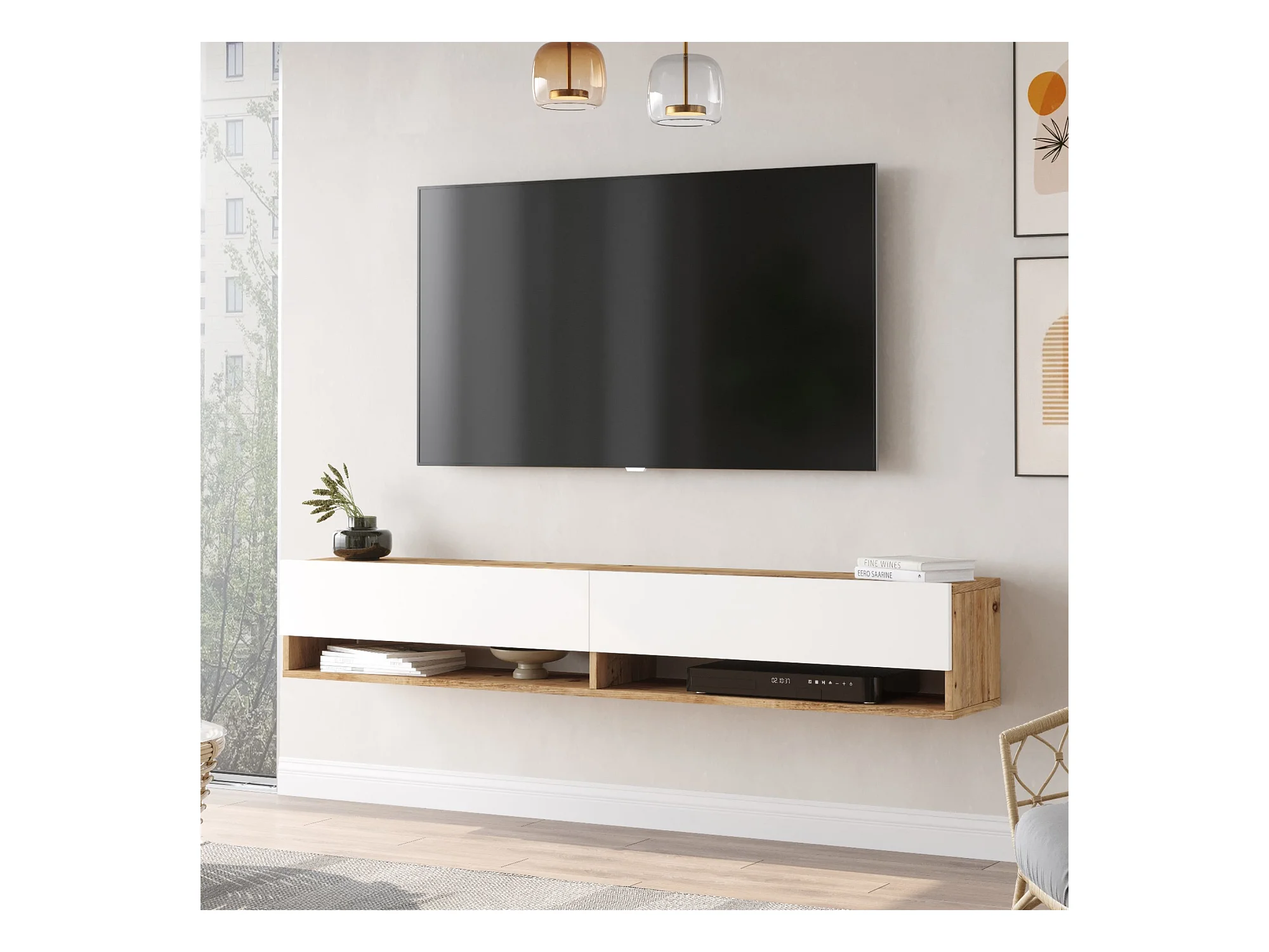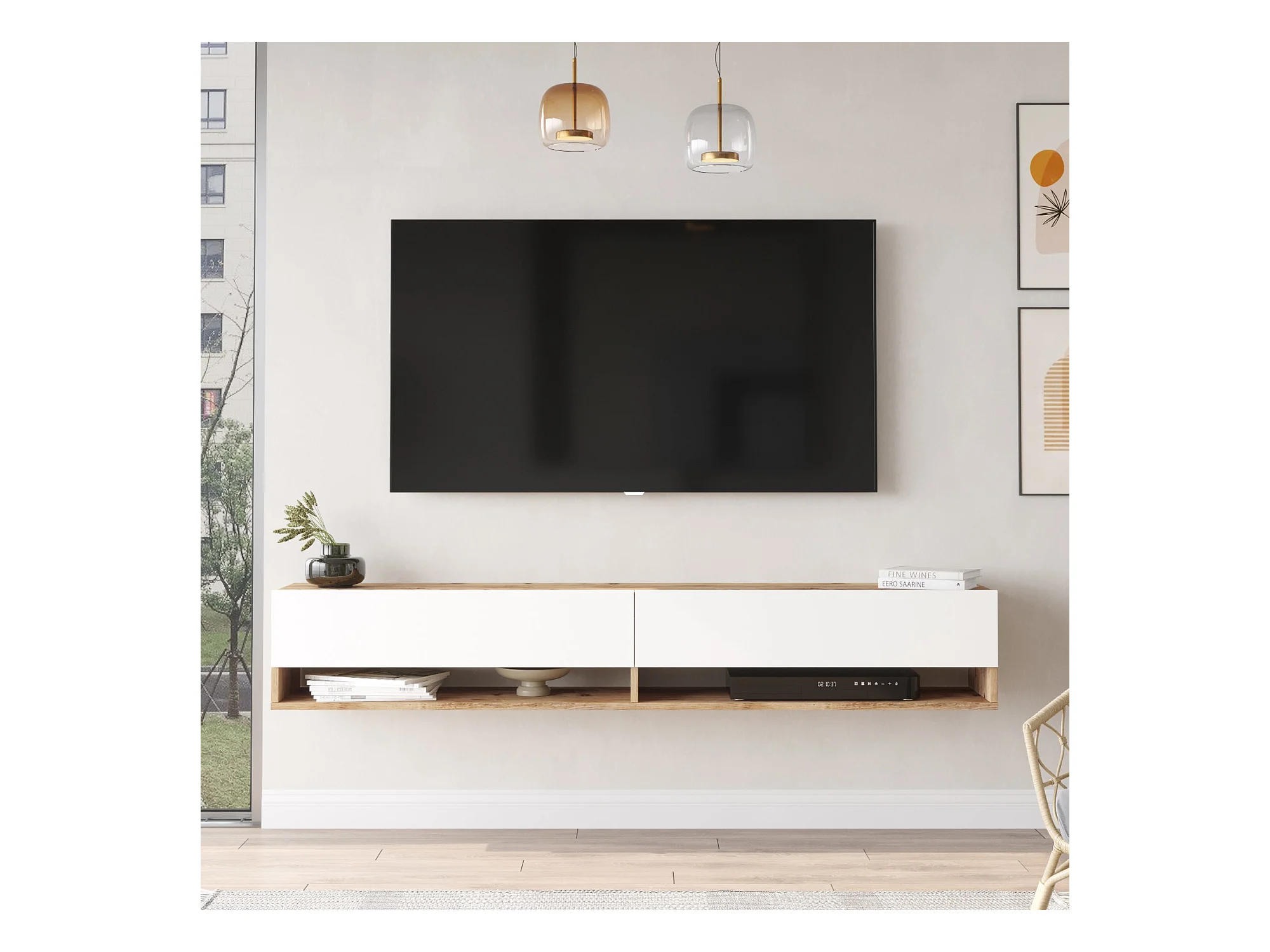 Meuble TV Laitila à 2 portes 29,5 x 180 x 31,5 cm effet bois de pin / blanc [en.casa]
