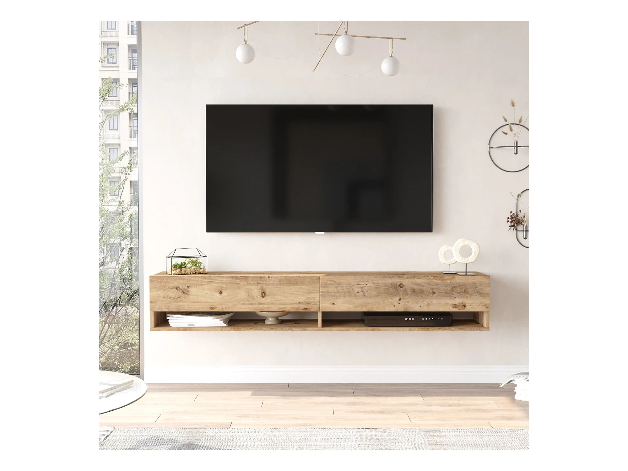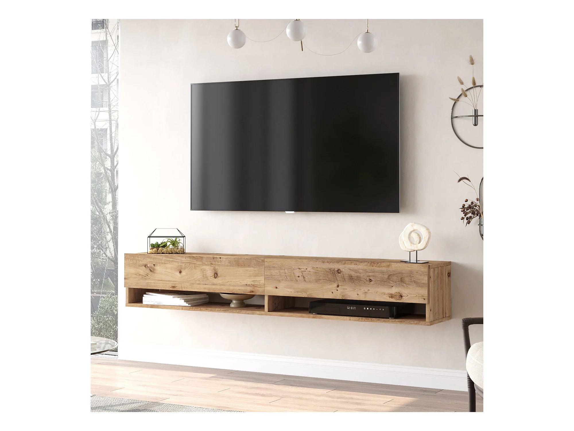 Meuble TV Laitila à 2 portes 29,5 x 180 x 31,5 cm effet bois de pin [en.casa]