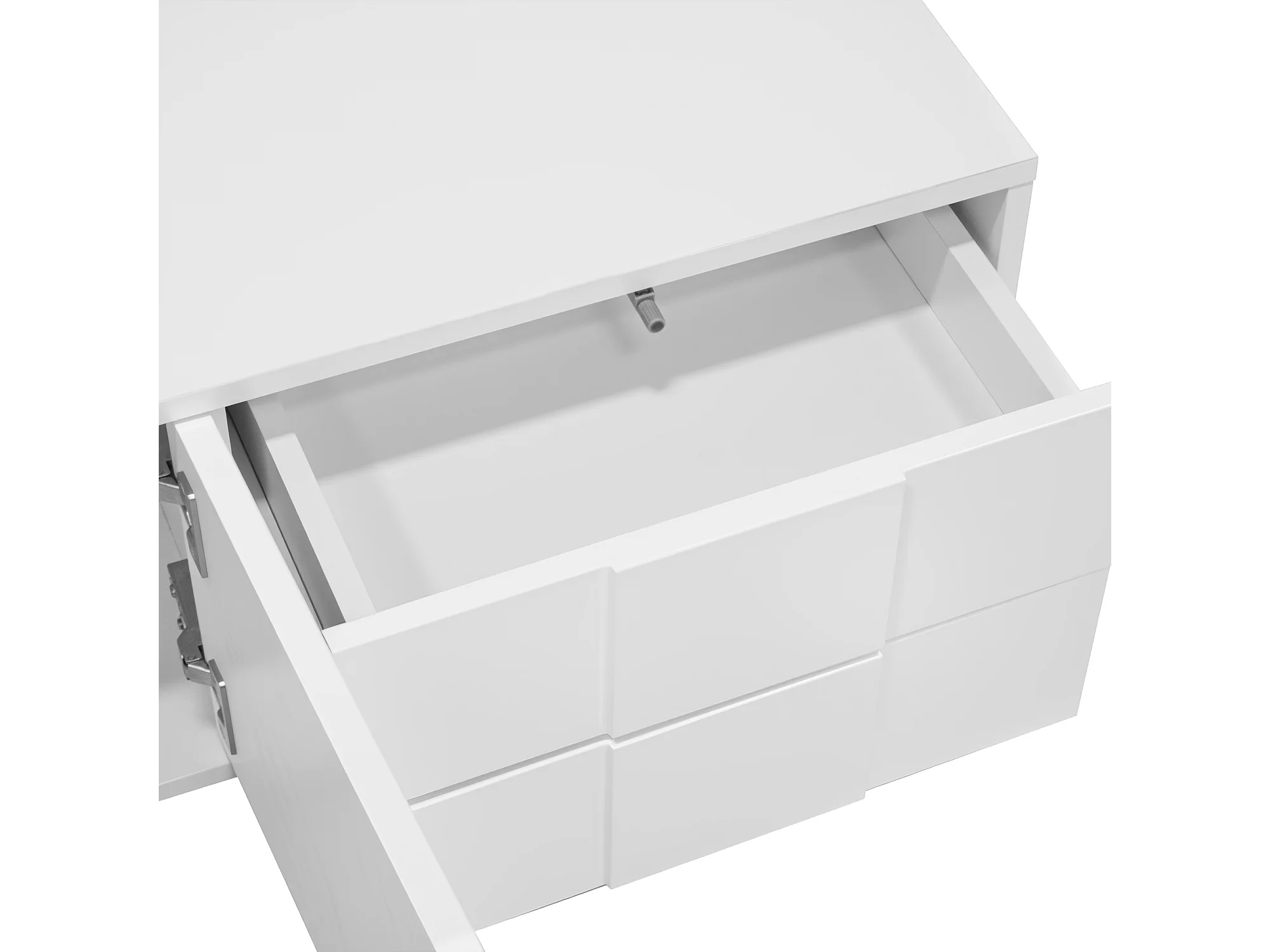 Meuble TV laquée brillante - 170 x 30 x 30.5 cm - avec 3 portes et 2 tiroirs - suspendu ou posé - MDF + aggloméré - blanc