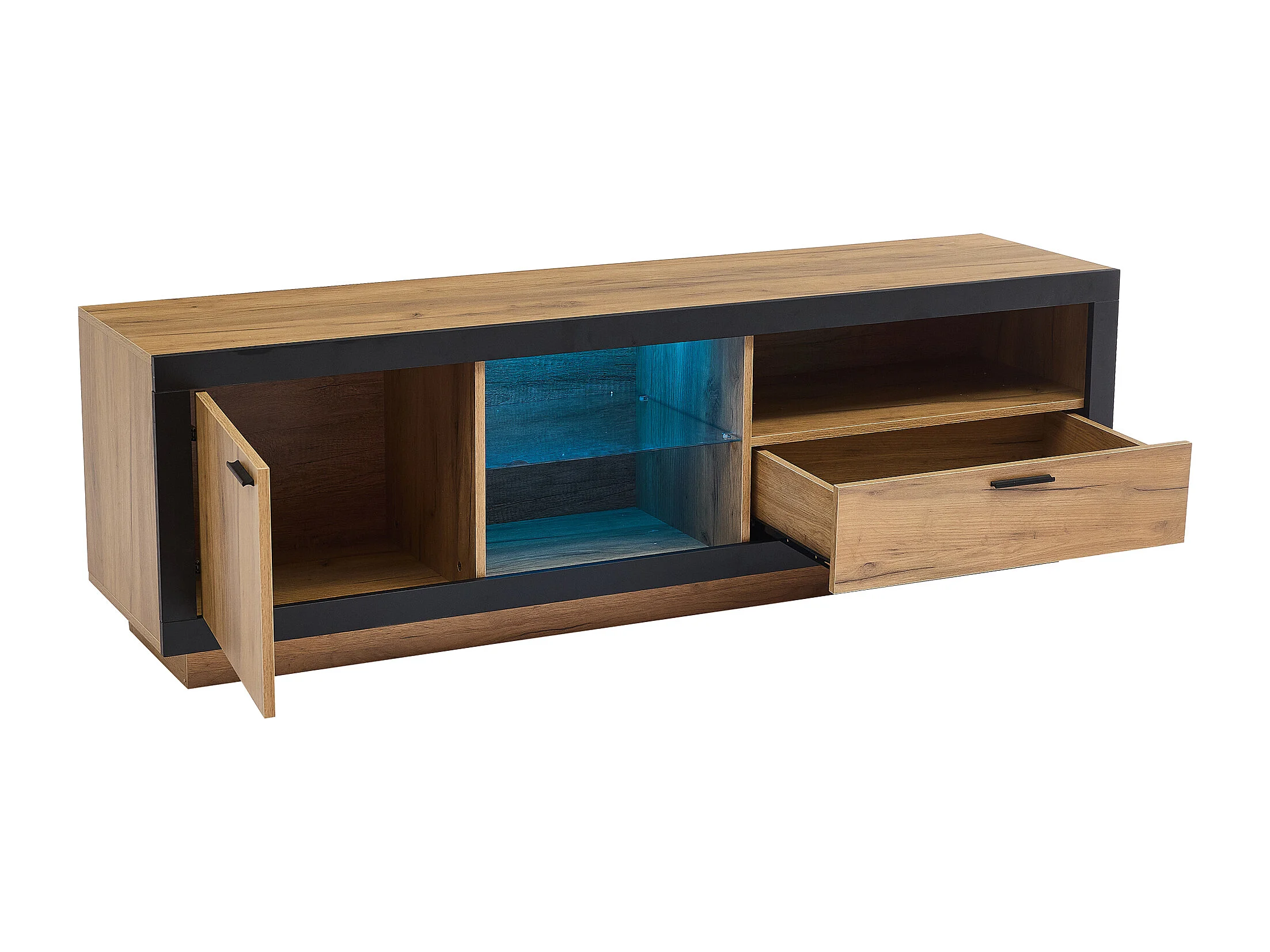 Meuble TV LED 160 * 40 * 50cm, Moderne Lowboard Rangement, Console TV avec Étagères en Verre, Noir