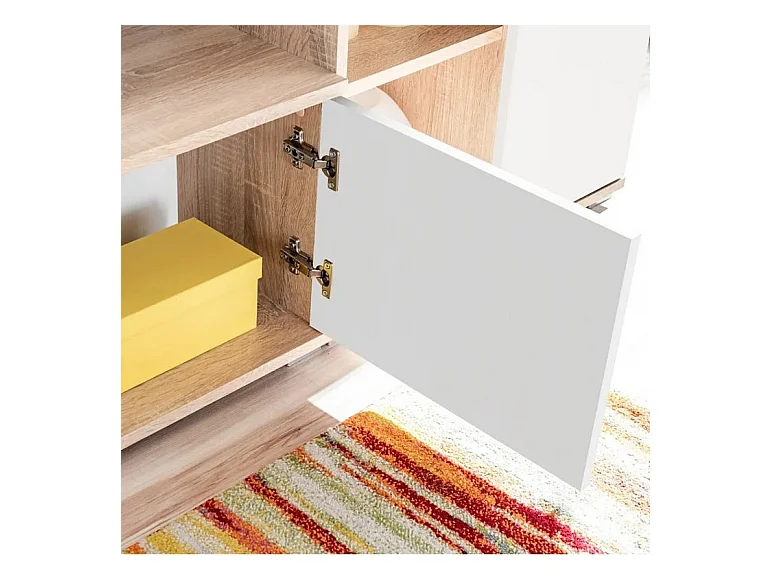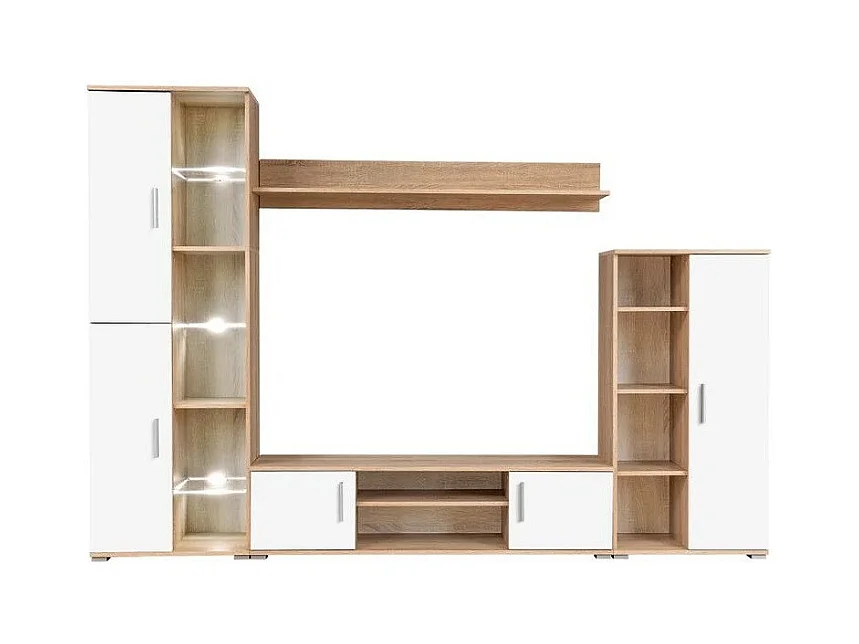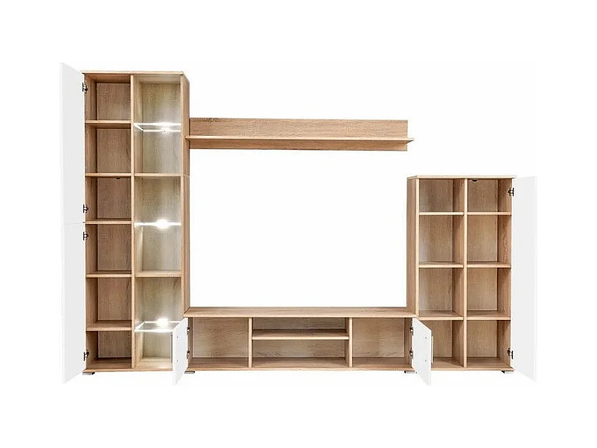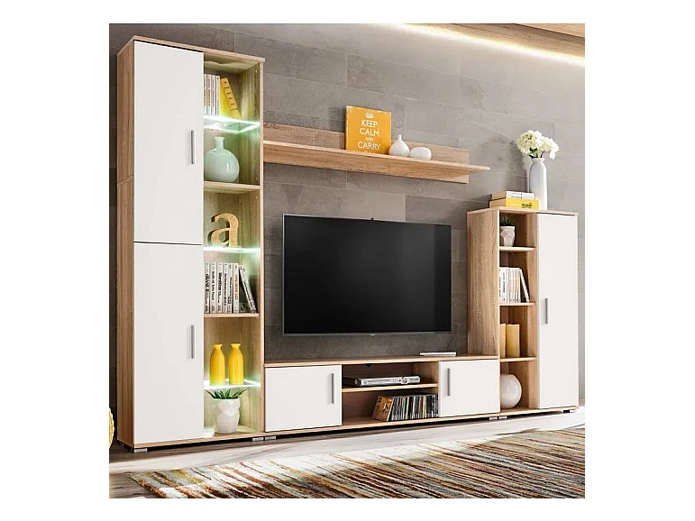 Meuble TV LED 4 pièces bois blanc et chêne clair Kynik 260cm