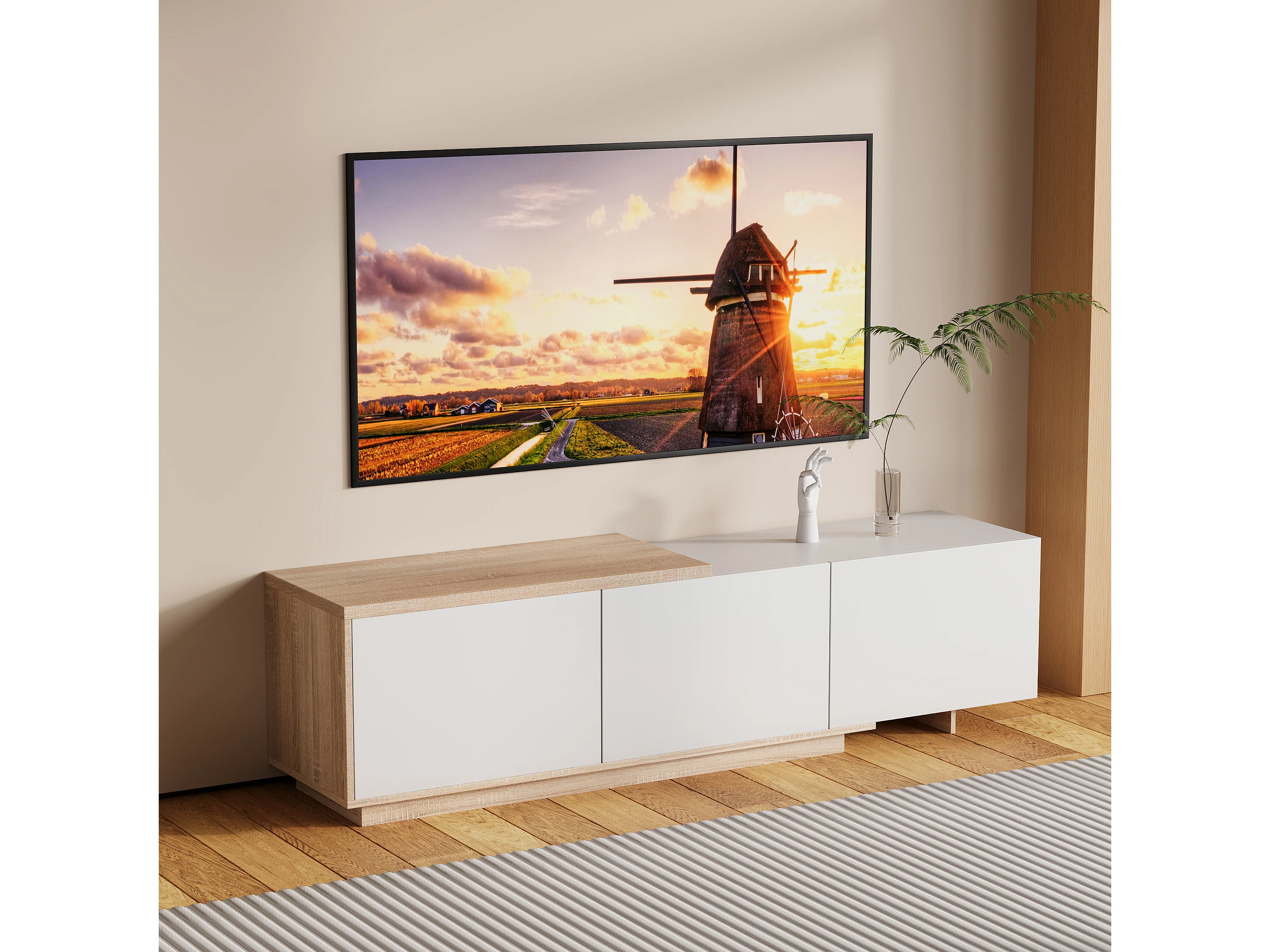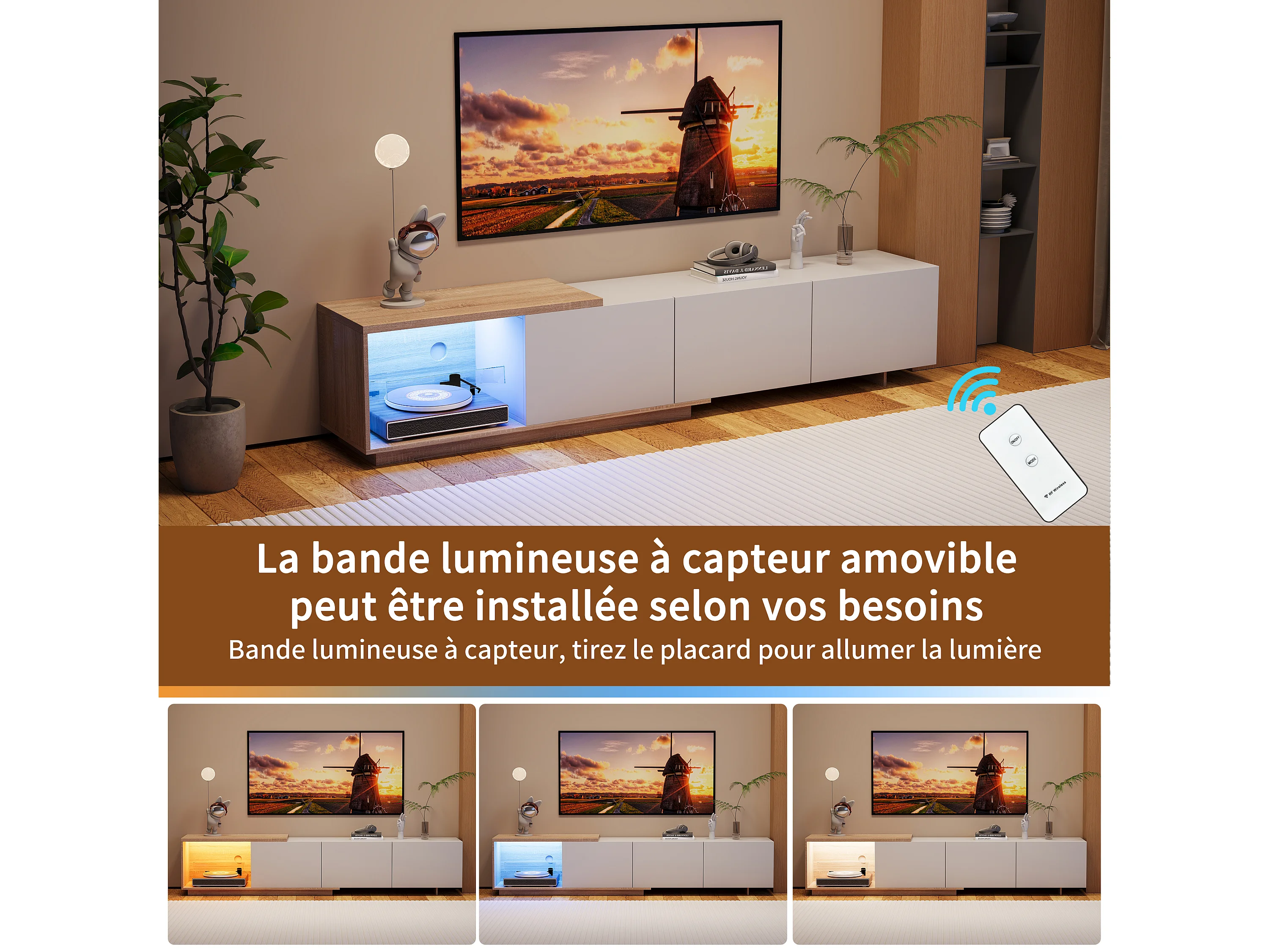 Meuble TV LED - avec 3 tiroirs - bois - blanc - 240 × 38 × 44 cm