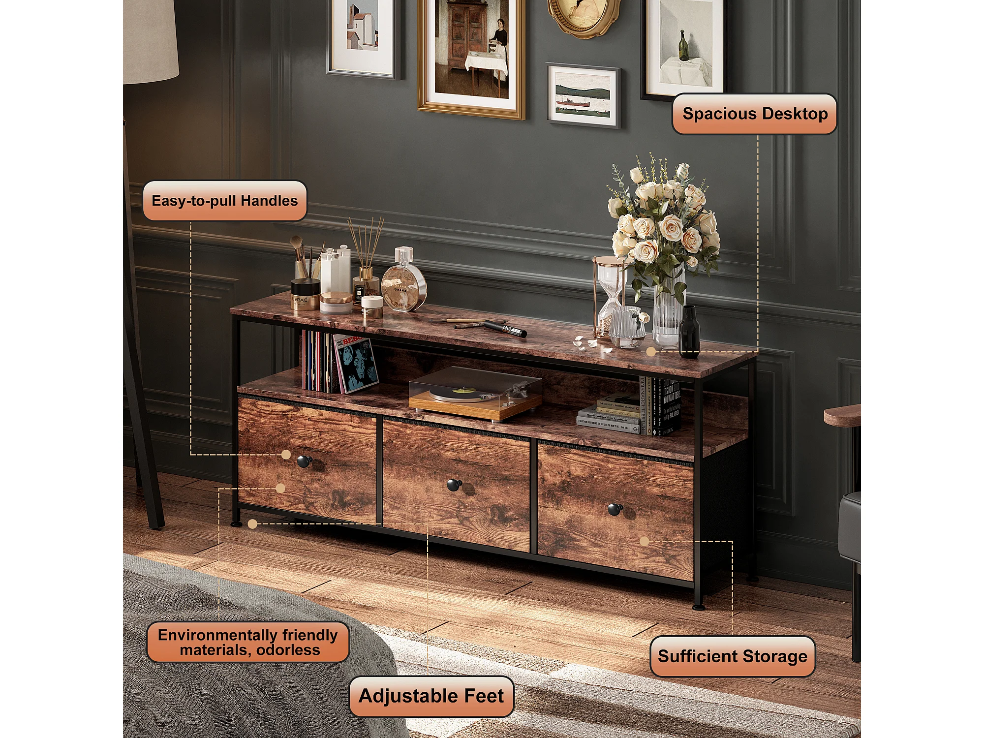 Meuble TV - LED avec 3 Tiroirs - Petit Meuble Tele avec Rangement - Marron Rustique - 108*30*57cm