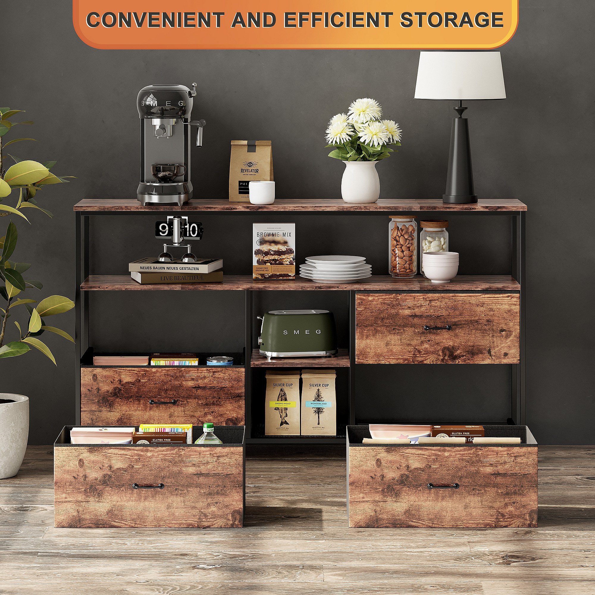 Meuble TV LED avec 4 Tiroirs, Petit Meuble Tele avec Rangement, Banc TV, Support Télé, Commode en Tissu pour Le Salon Chambre à Coucher Entrée, Marron Rustique