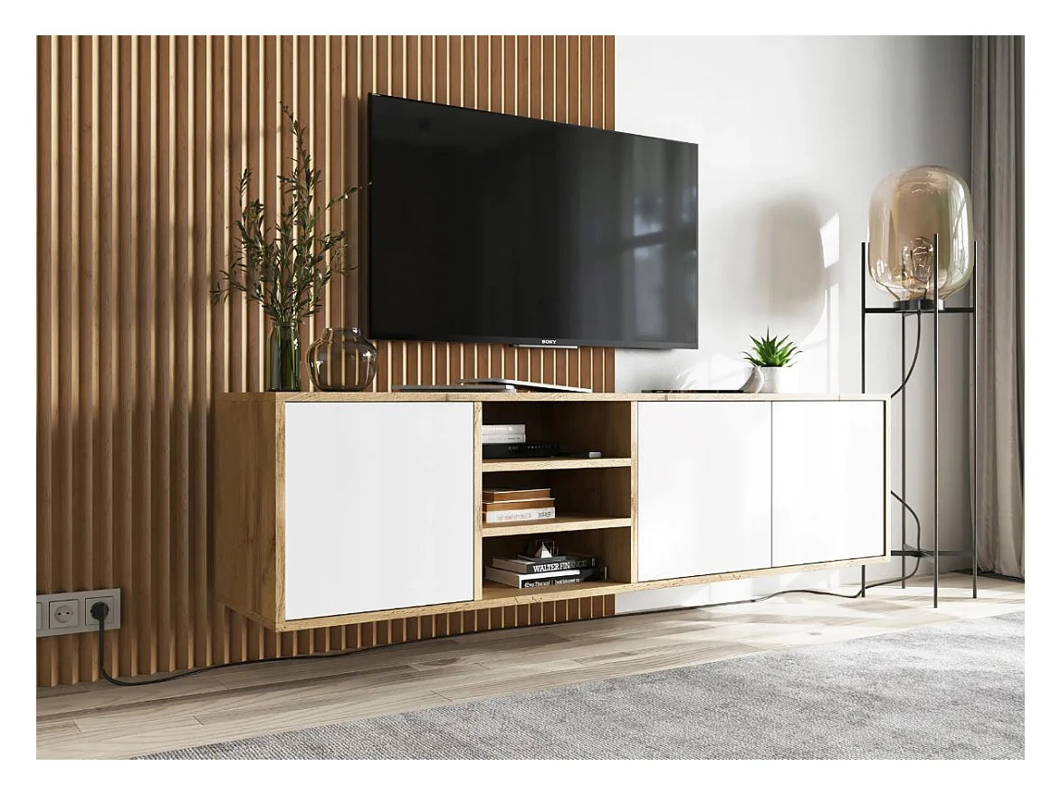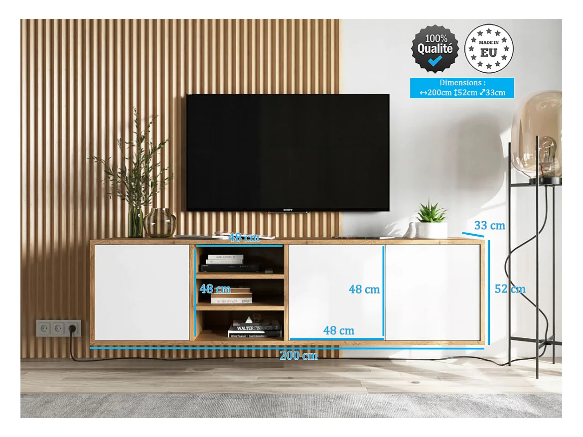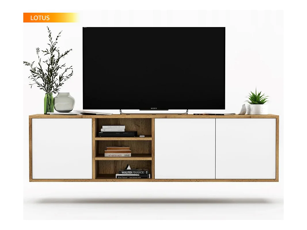 Meuble TV LOTUS 200 cm portes blanc laquées A poser ou suspendre