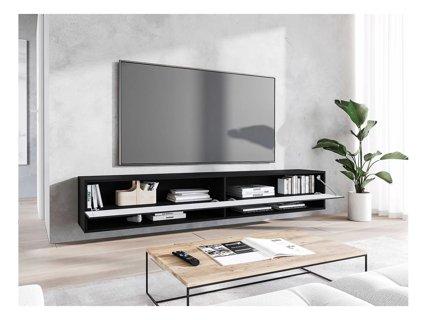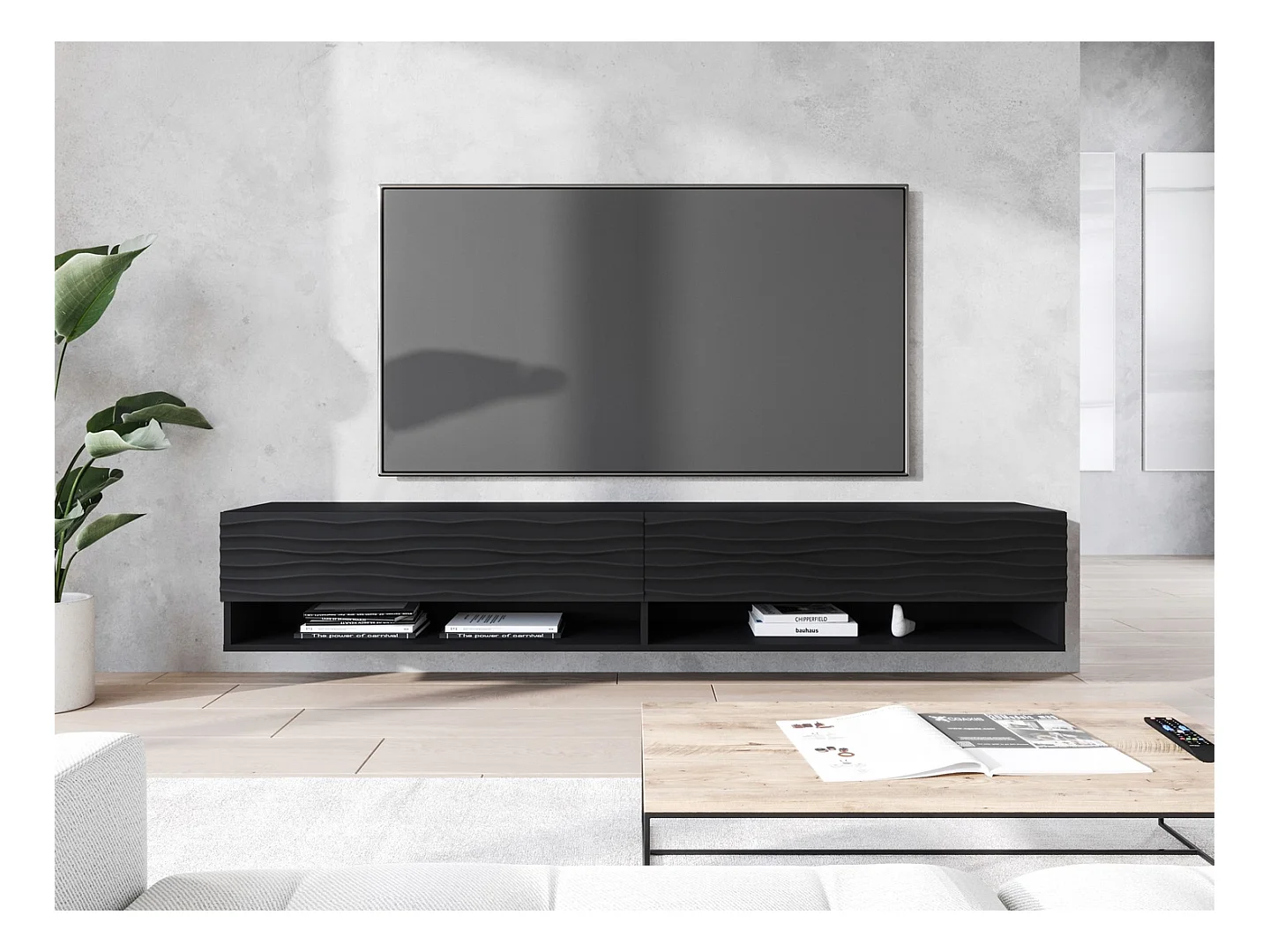 Meuble TV moderne 180 cm – corps mat, façades MDF ondulées, sans poignées, posé ou suspendu, couleur graphite noir mat