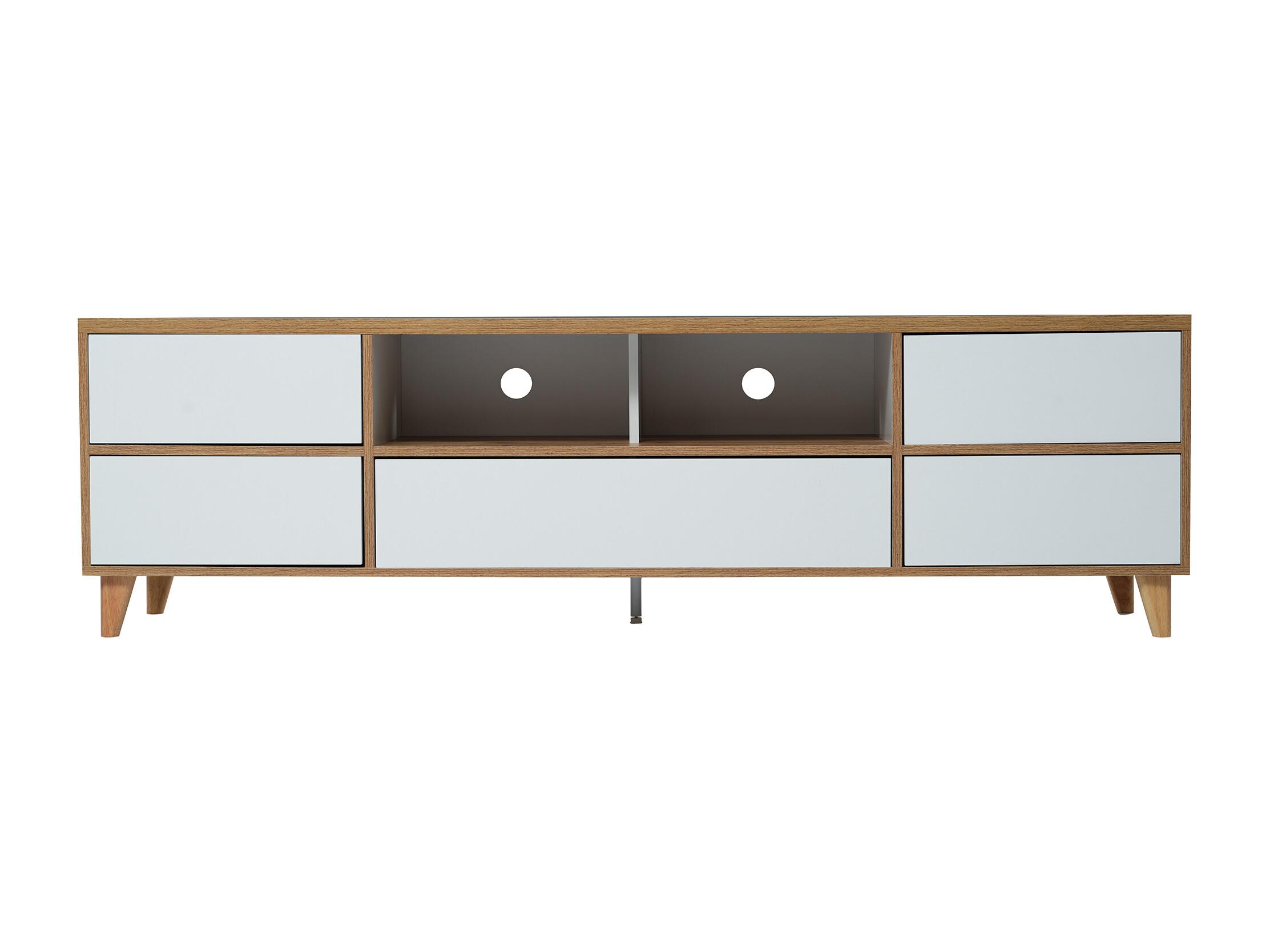 Meuble TV, Lowboard, meuble de salon blanc et bois, compartiments et portes au style campagnard naturel