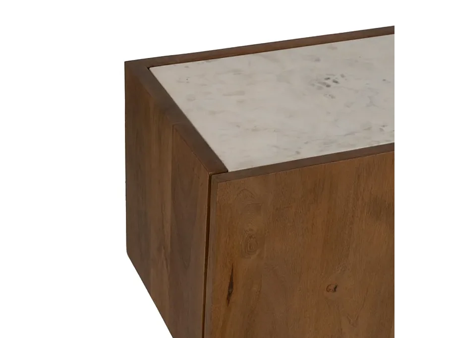 Meuble TV marbre et bois acacia 200 cm PELORIA