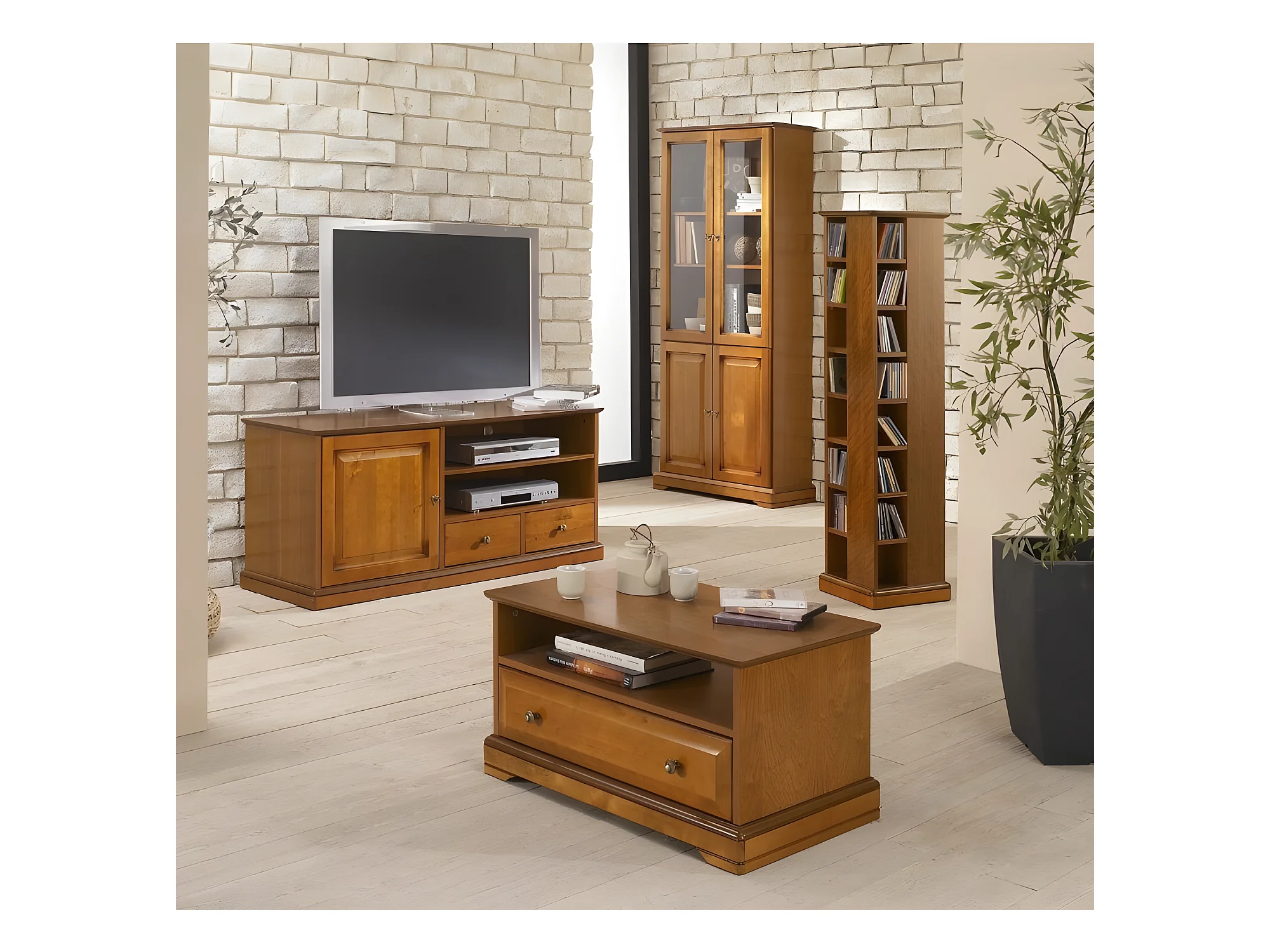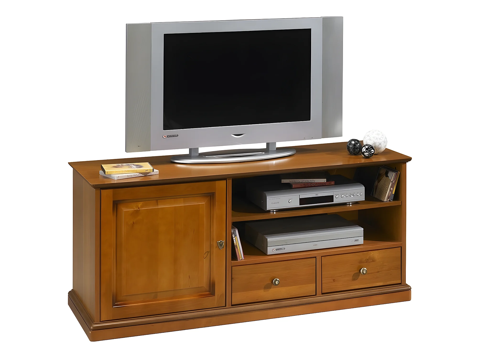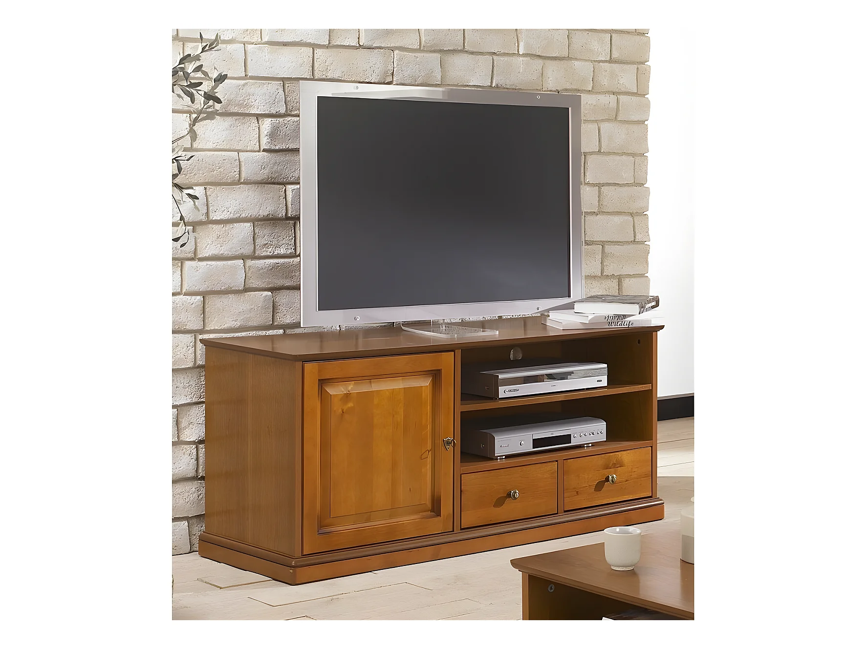 Meuble TV Merisier 60 Pouces 1 Porte 2 Tiroirs L 134.9 H 58.7 P 46.5 cm