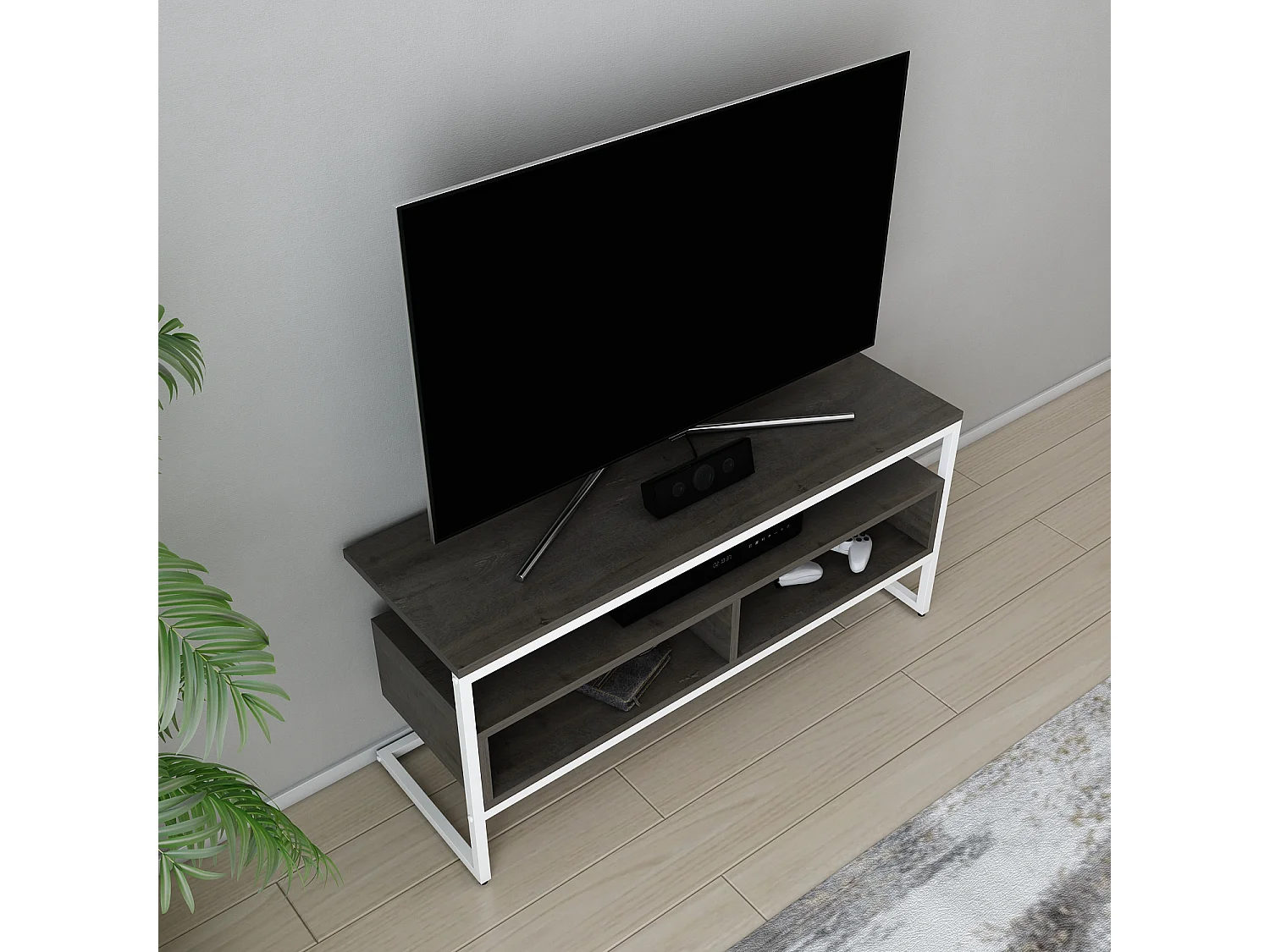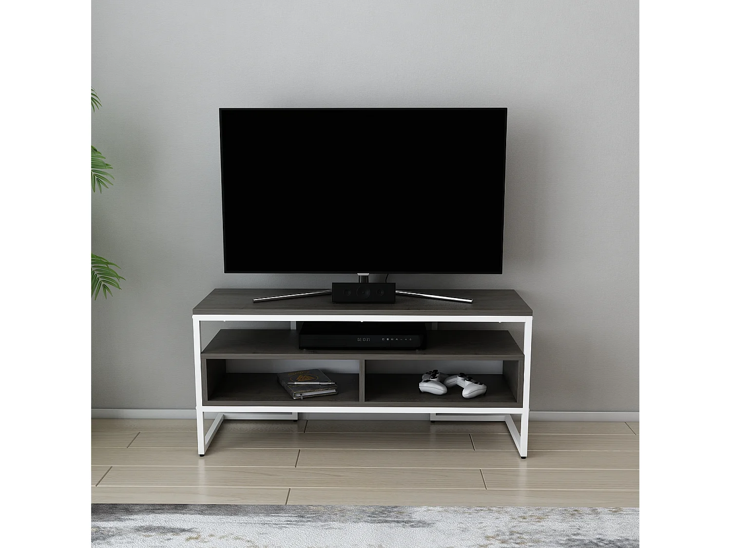 Meuble TV Merrion 111 cm Cadre Métallique (Blanc et Wenge)