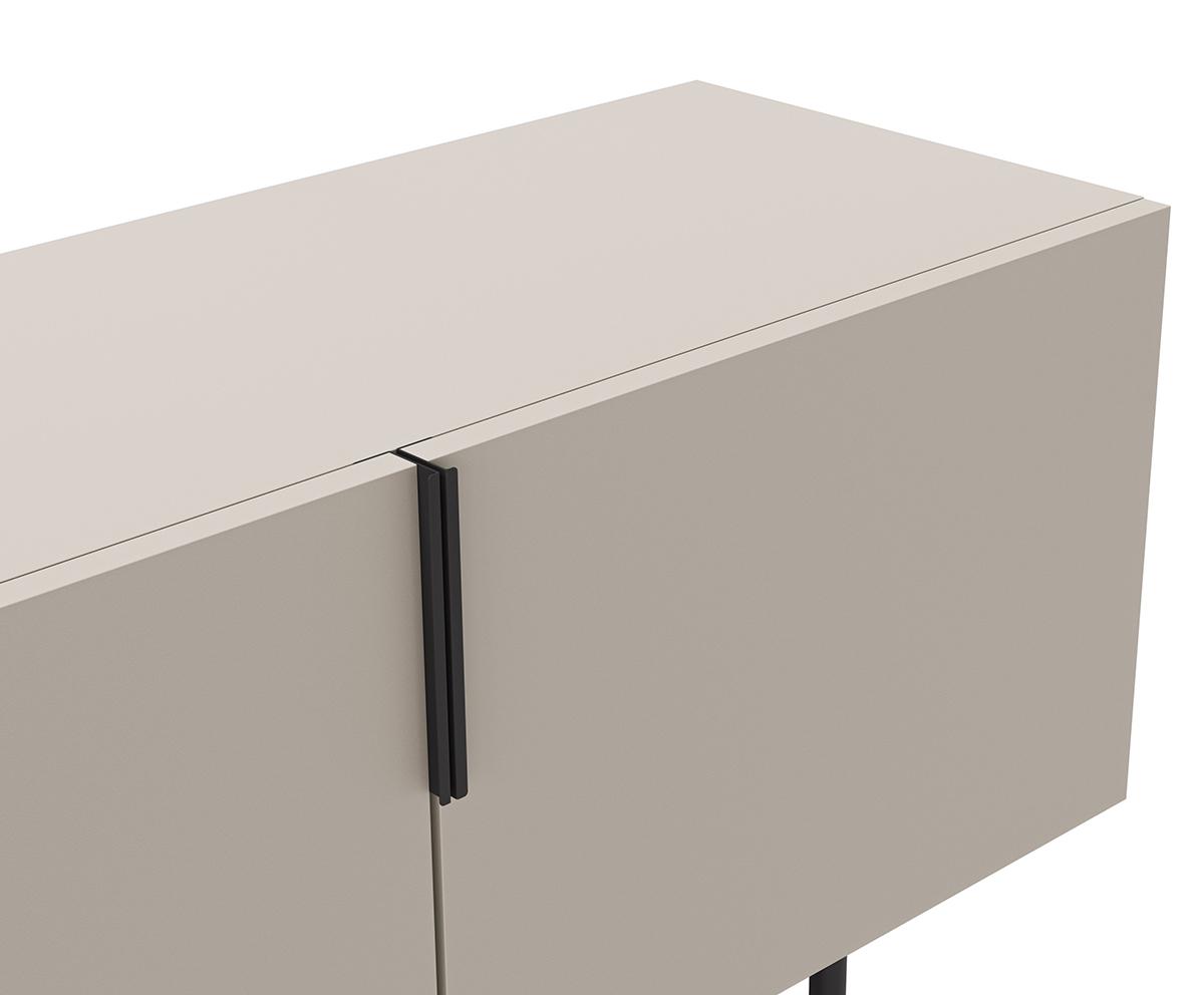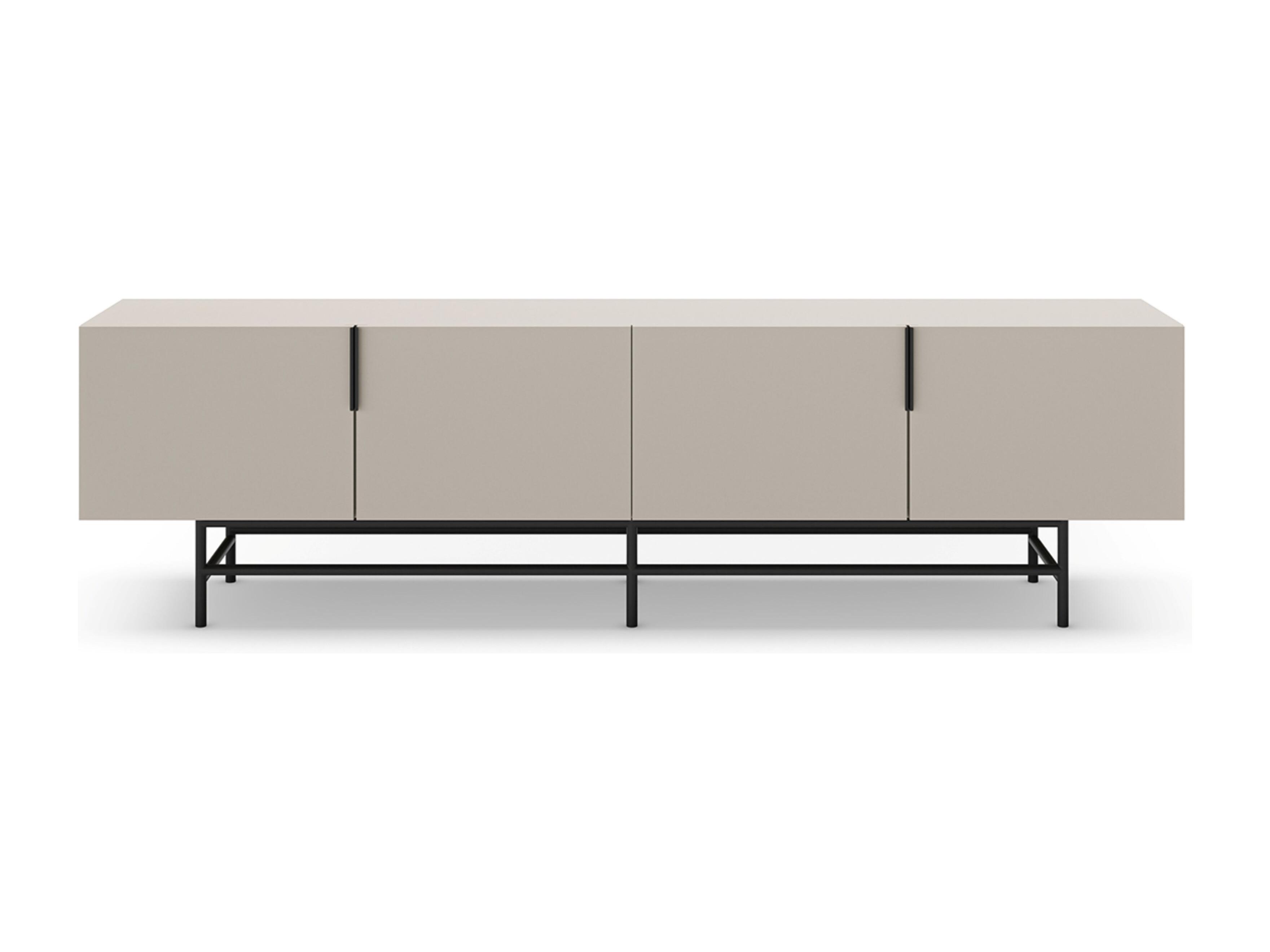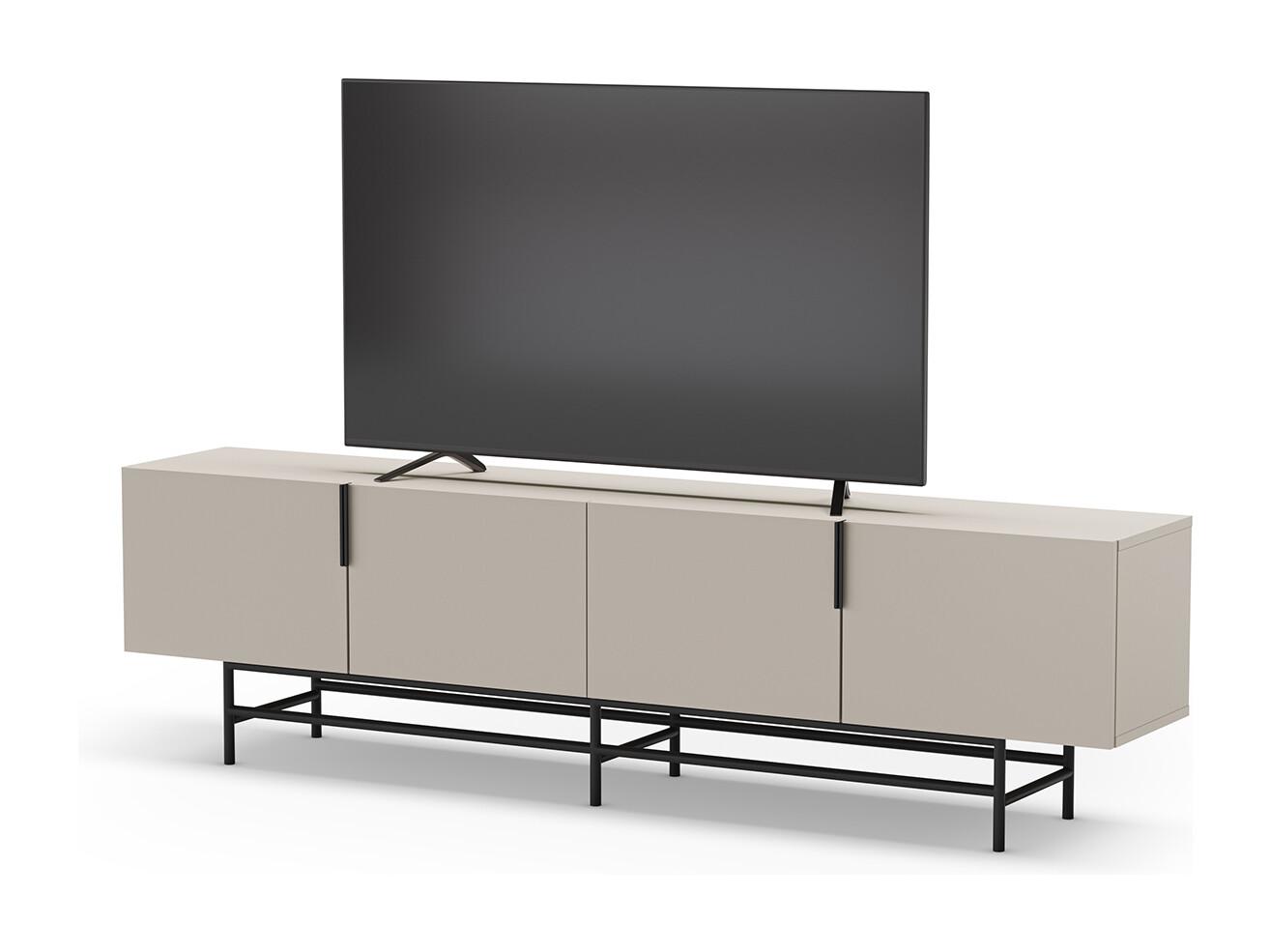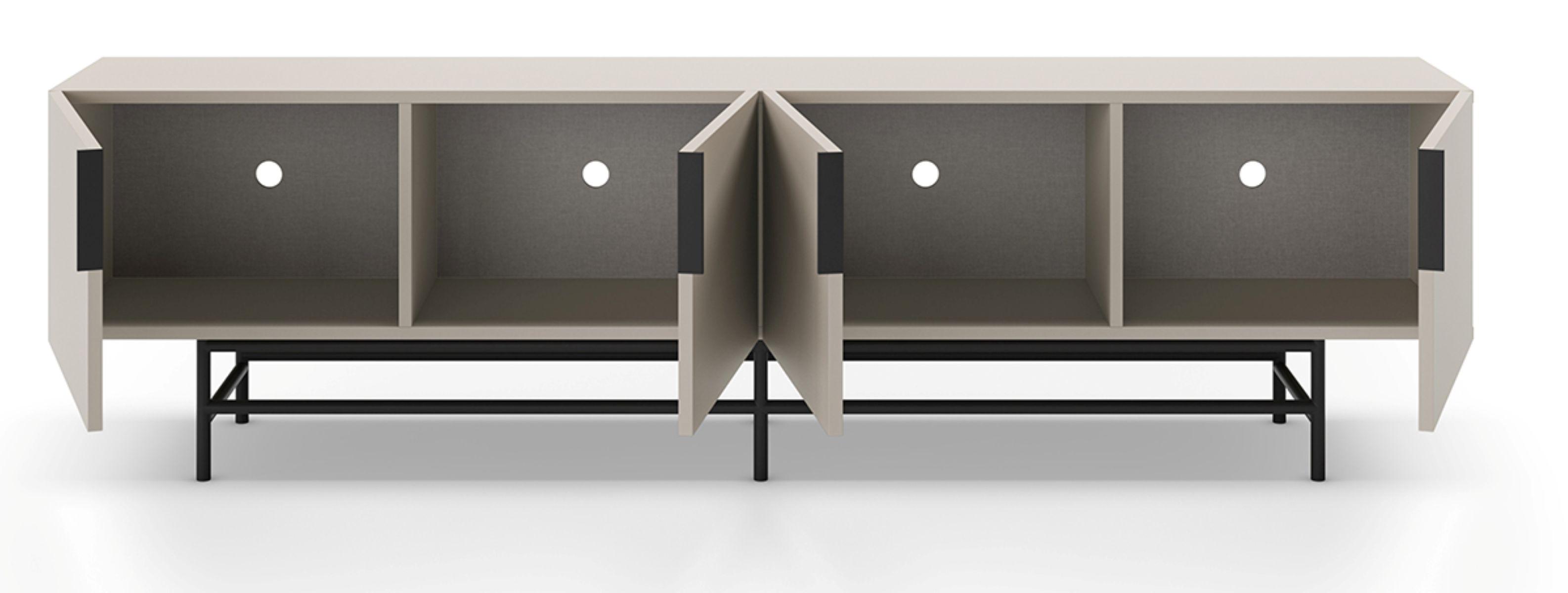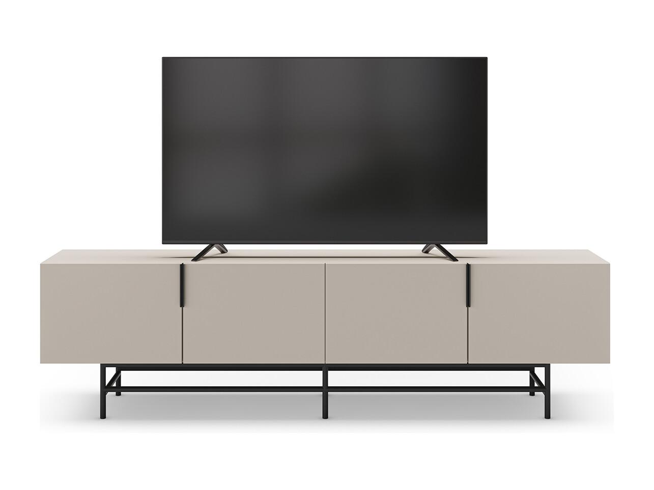 Meuble TV, Meuble de salon aspect bois coloris crème, pieds en métal noir - Longueur 200 x Profondeur 35 x Hauteur 55 cm
