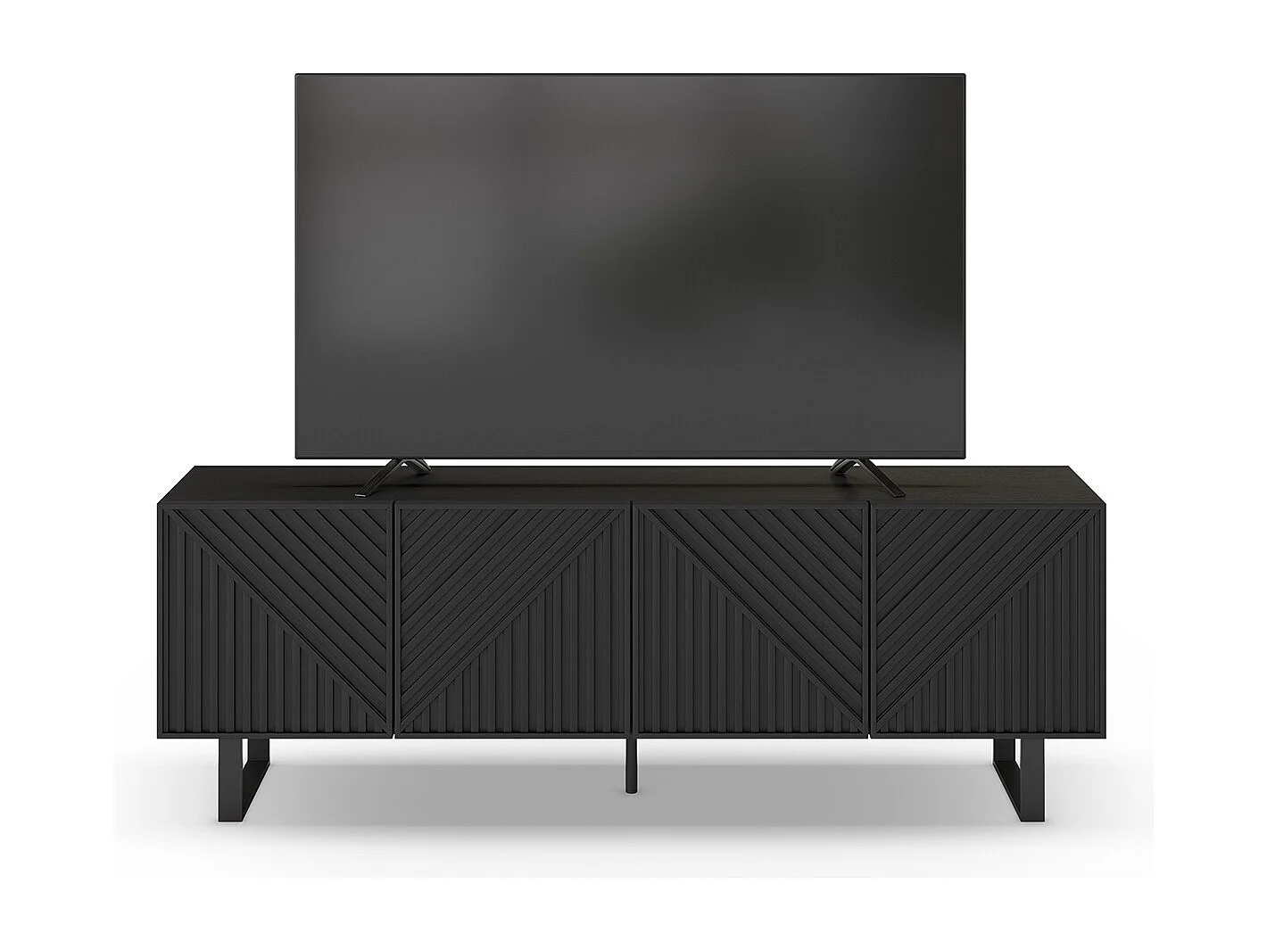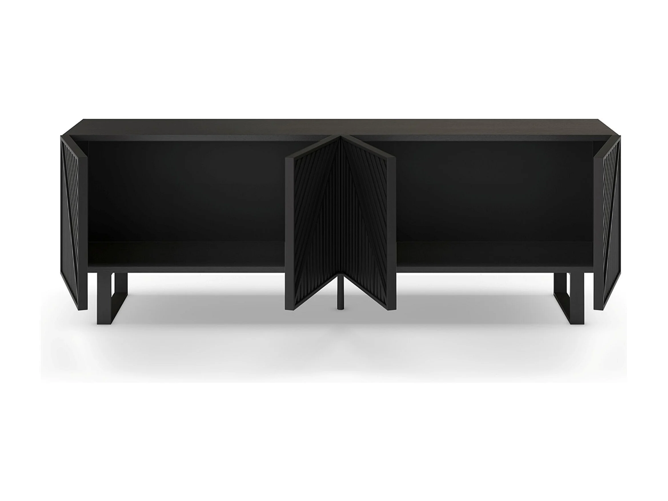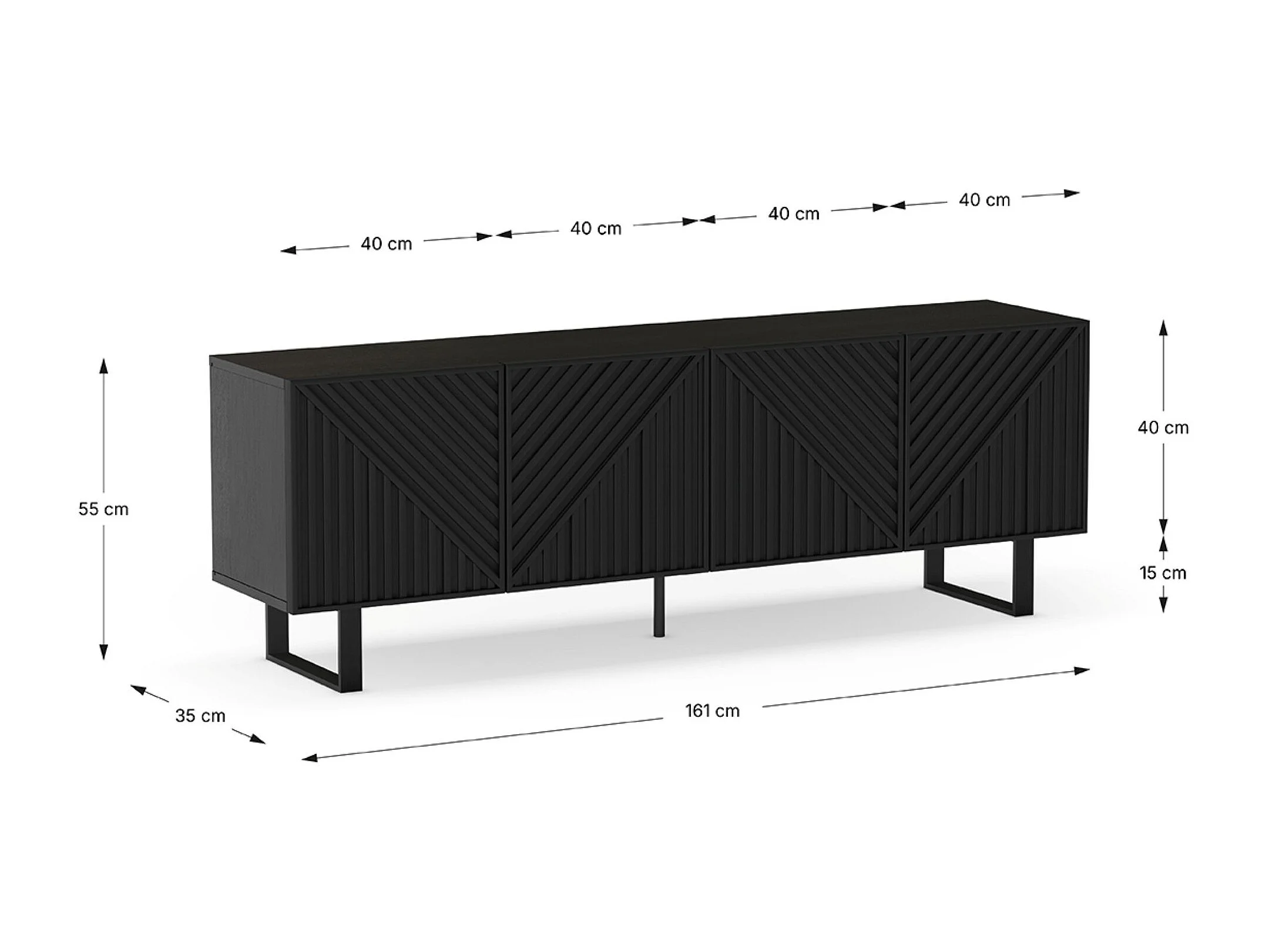 Meuble TV, Meuble de salon aspect bois coloris noir, pieds en métal noir - Longueur 161,20 x Profondeur 35 x Hauteur 55 cm