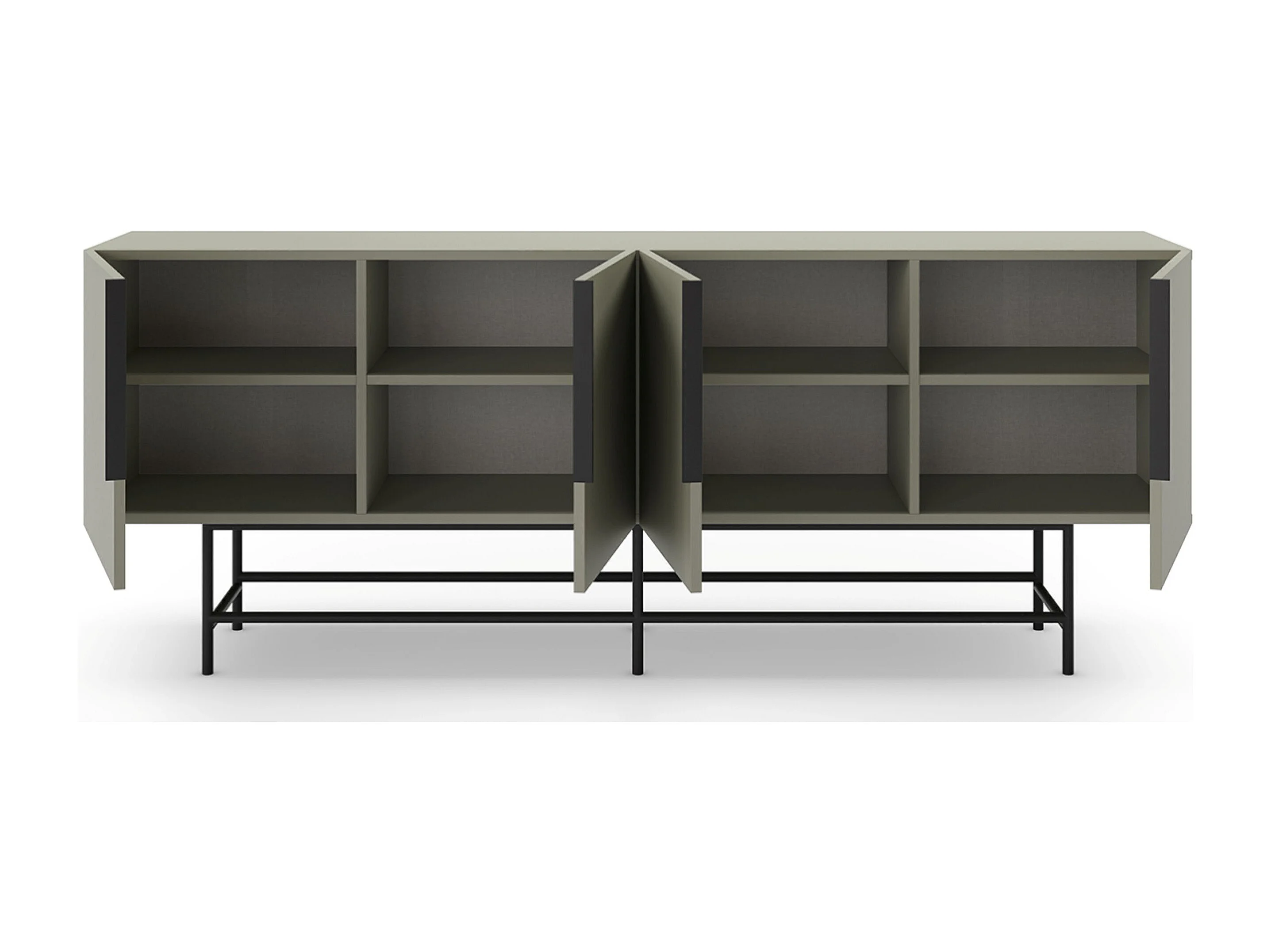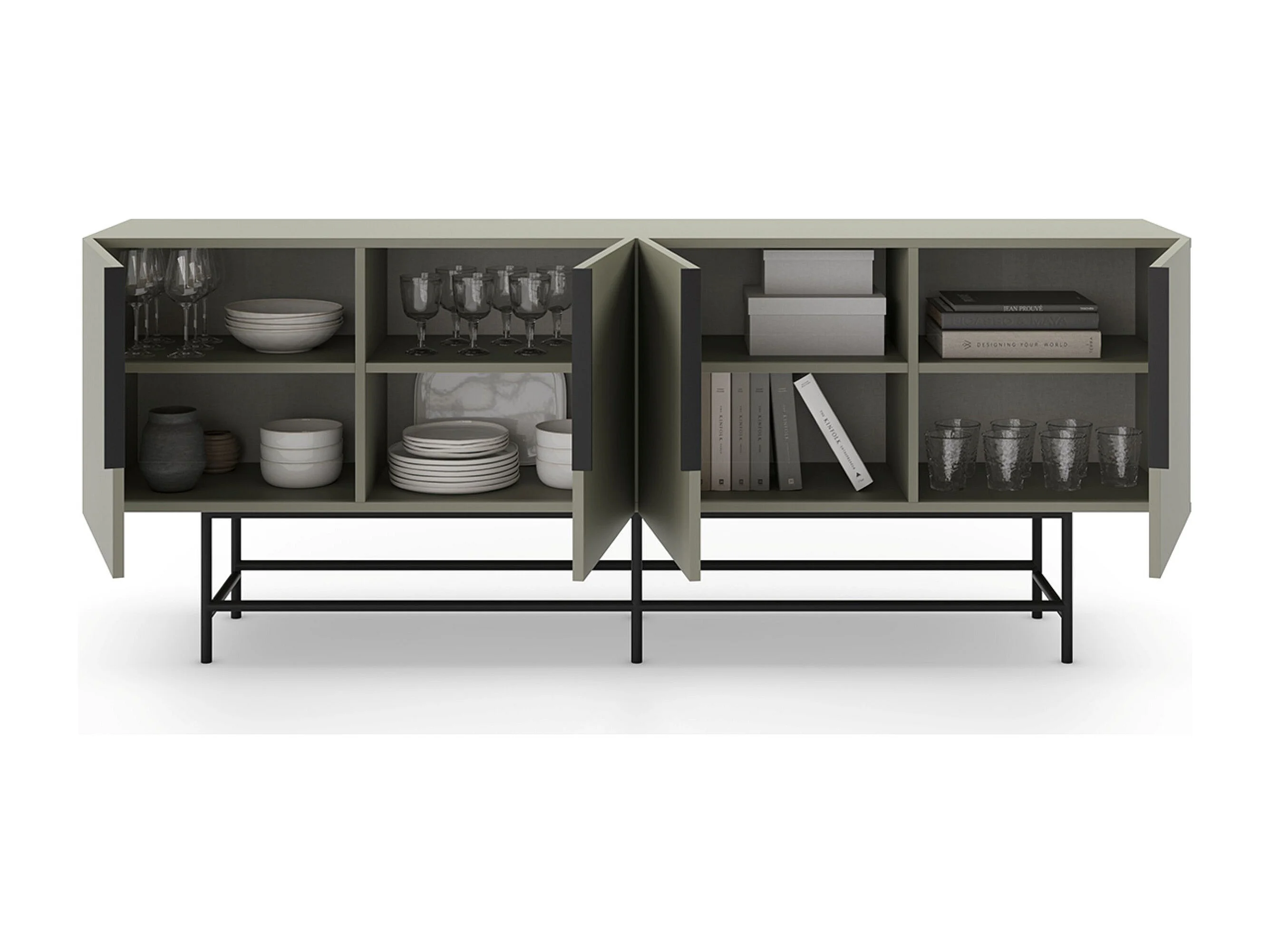 Meuble TV, meuble de salon aspect bois coloris vert et pieds en métal noir - Longueur 200 x Profondeur 40 x Hauteur 77 cm