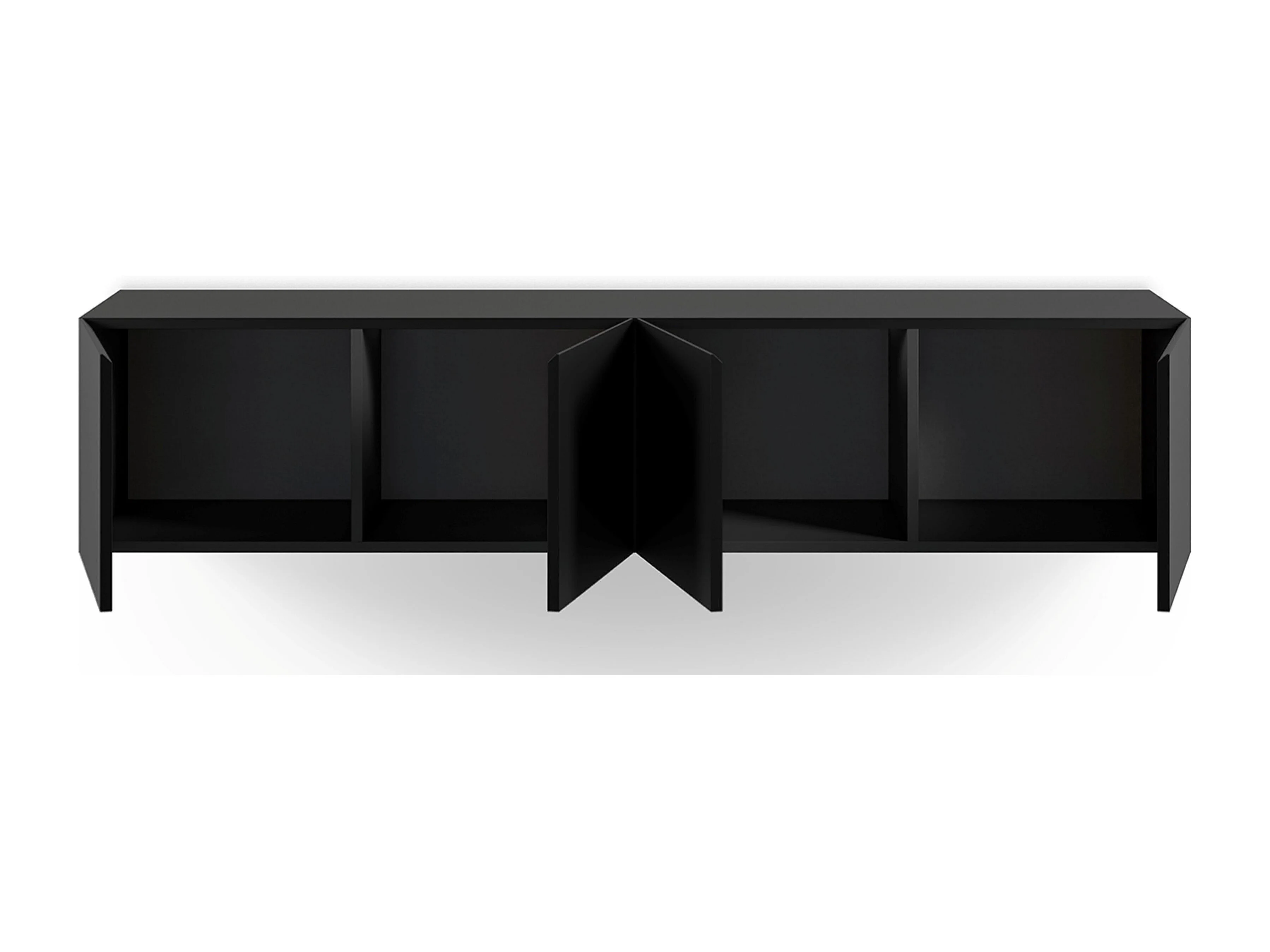 Meuble TV, Meuble de salon avec 4 portes aspect bois coloris noir - Longueur 180 x Profondeur 35 x Hauteur 38 cm