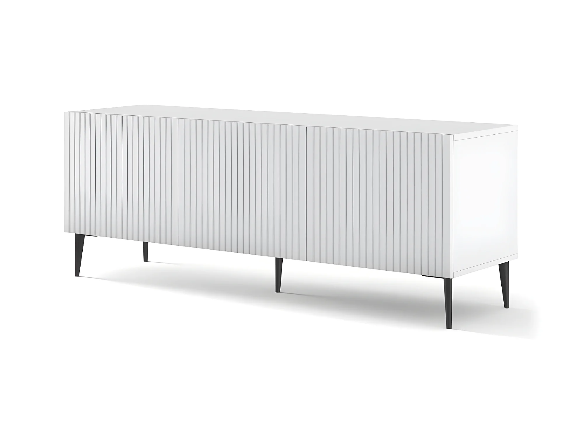 Meuble TV meuble Hi-fi sur pied Blanc Mat 150x42x56cm RAVI B FILET Pied noir