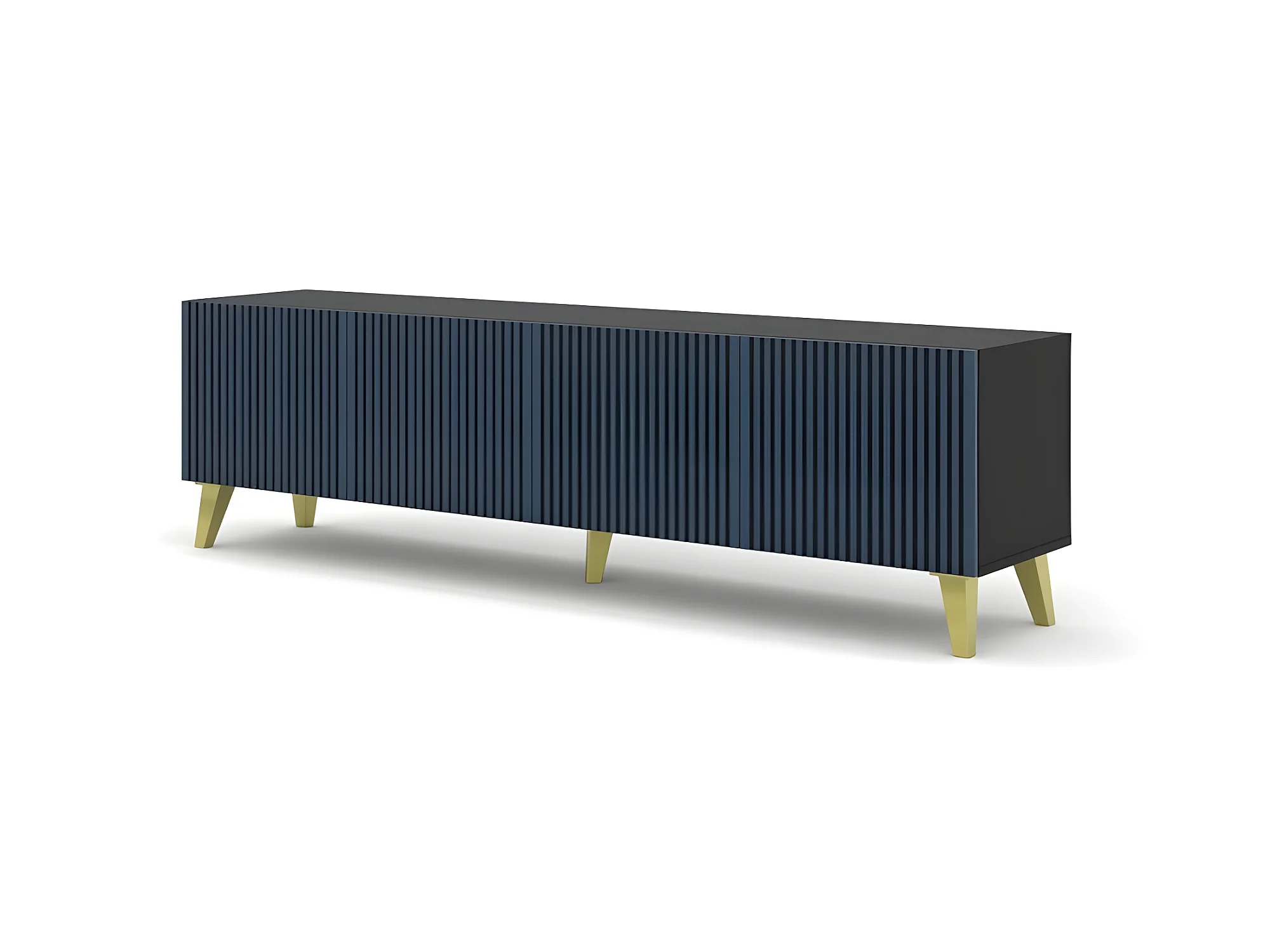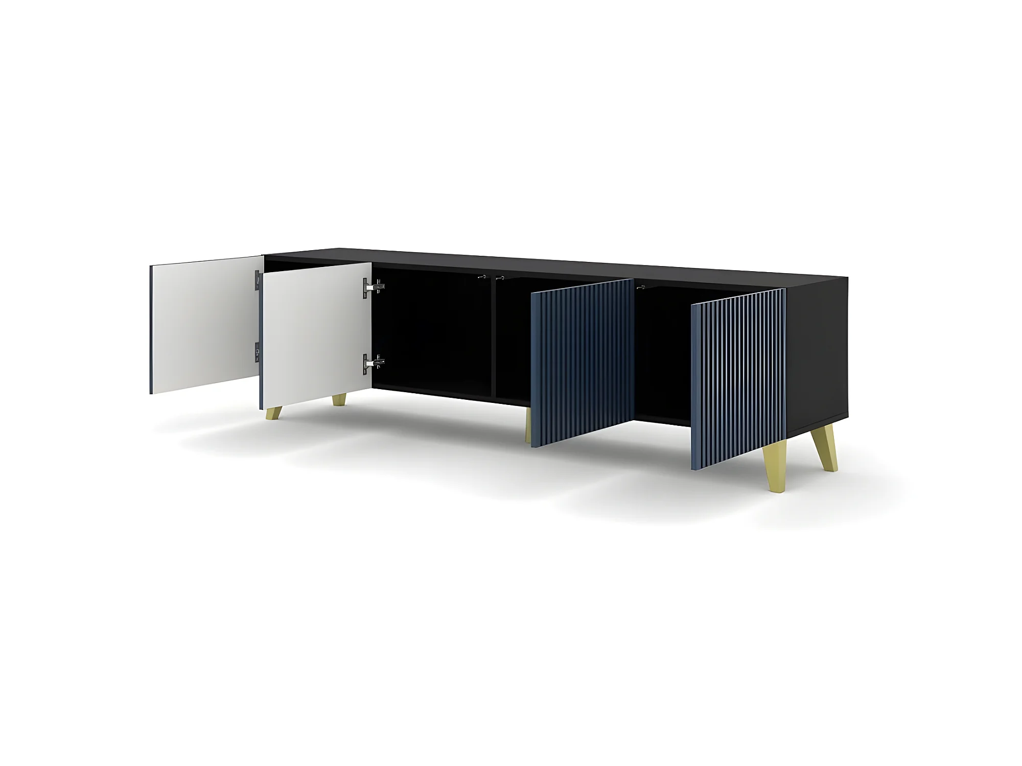 Meuble TV meuble Hi-fi sur pied Noir/Bleu marine 200x42x56cm RAVI F PEINT Pied or