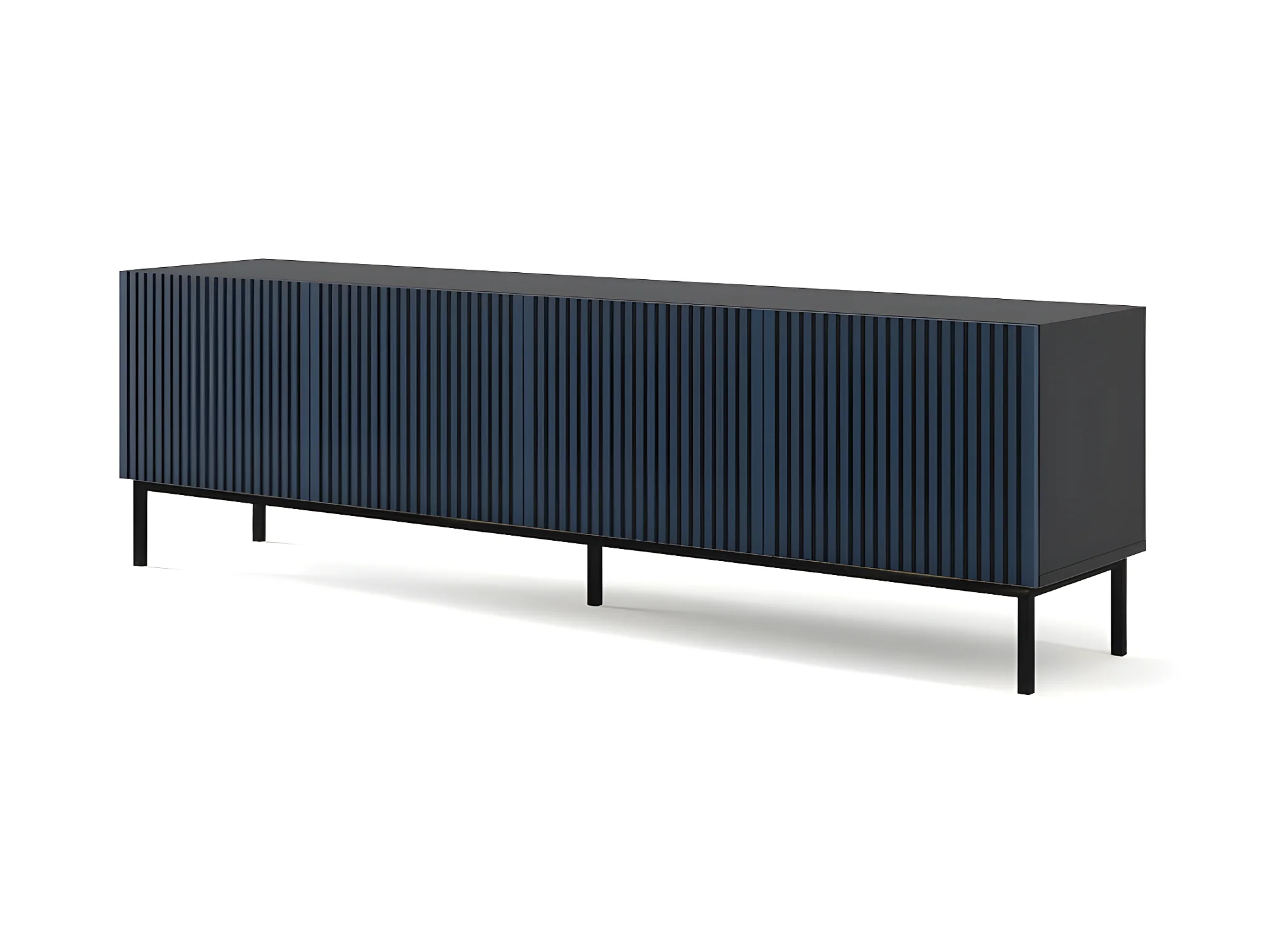 Meuble TV meuble Hi-fi sur pied Noir/Bleu marine 200x42x58cm RAVI F PEINT Pied Cadré noir