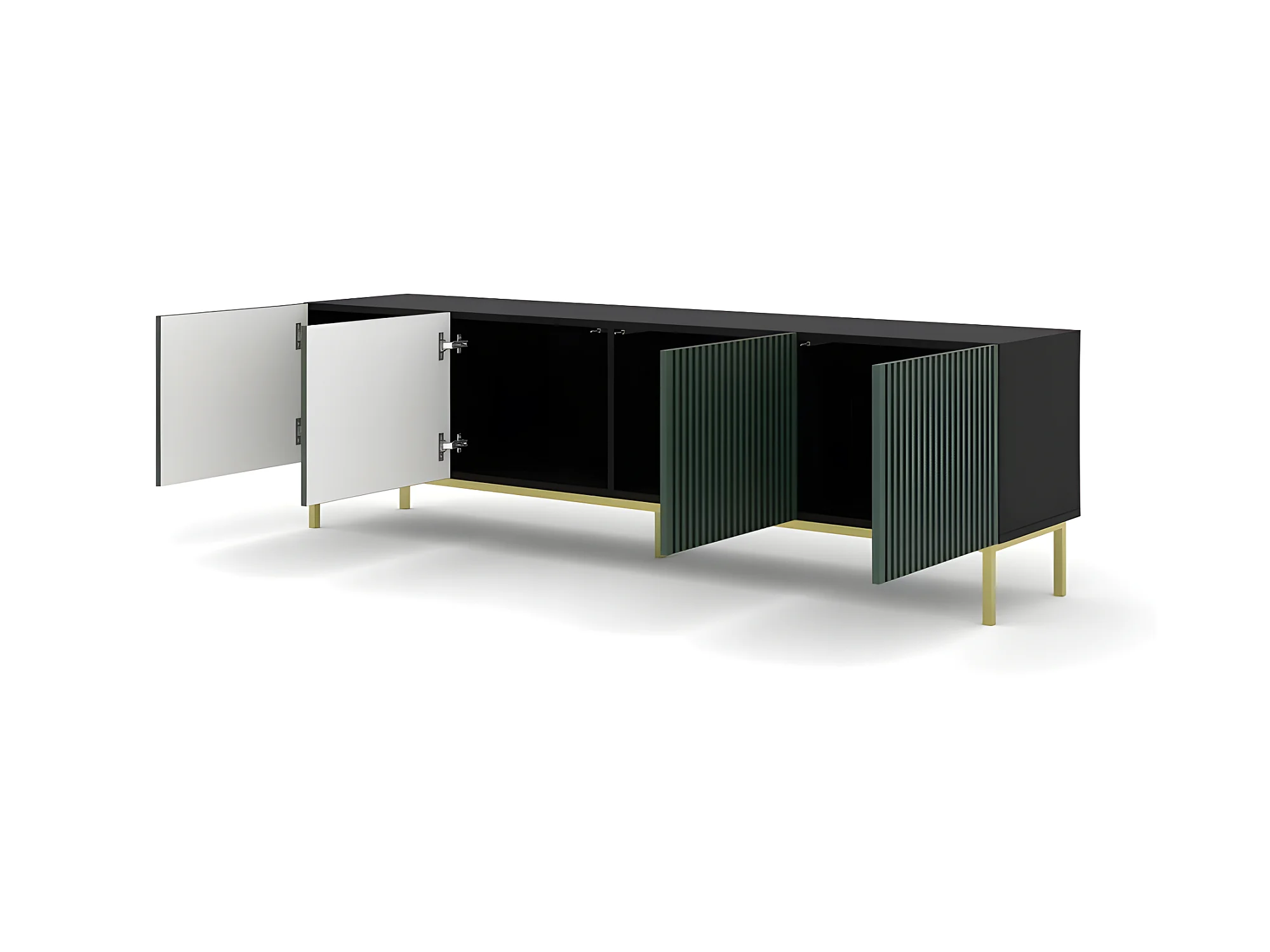 Meuble TV meuble Hi-fi sur pied Noir/Vert foncé 200x42x58cm RAVI F PEINT Pied Cadré or