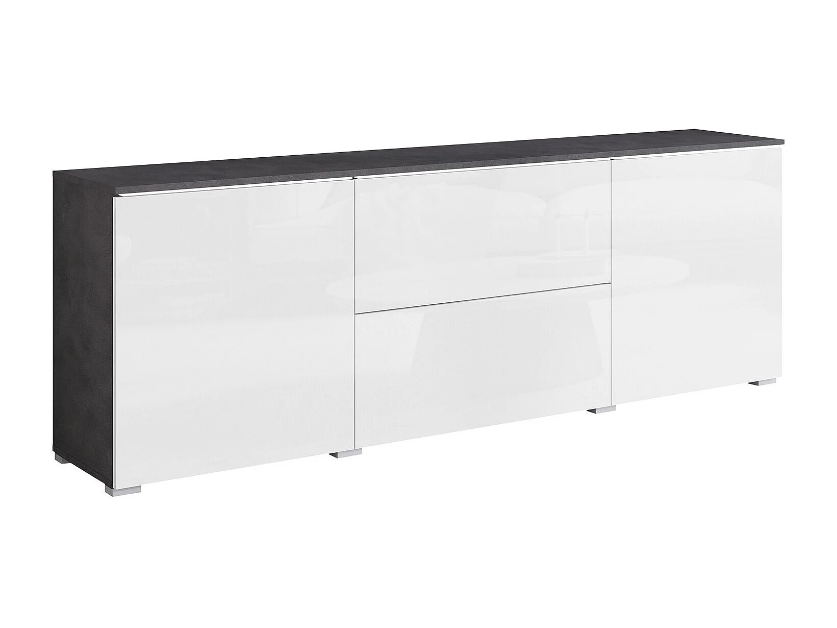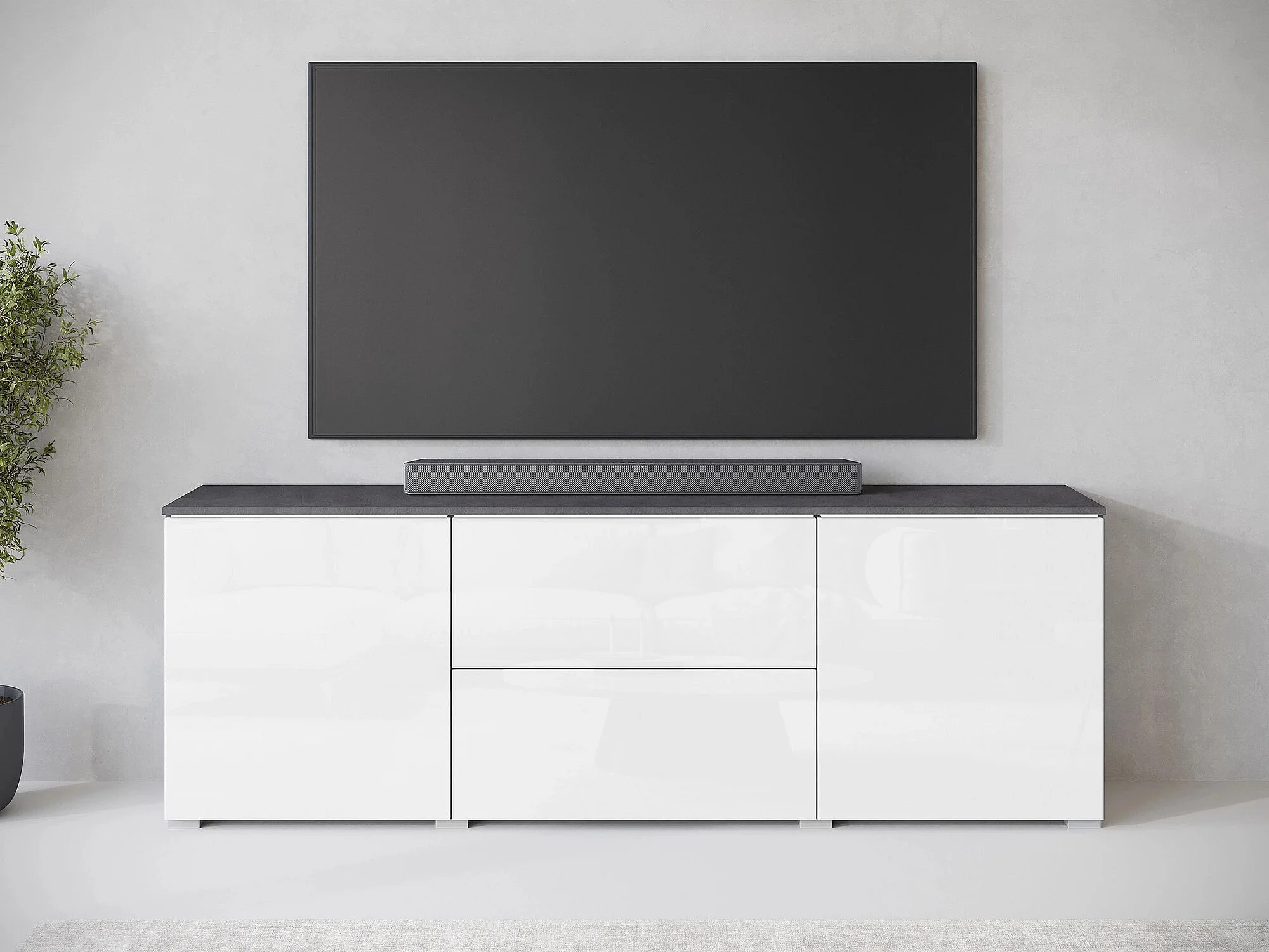 Meuble TV Sarasota 190, Blanc brillant|Matera gris, 180x62x35cm