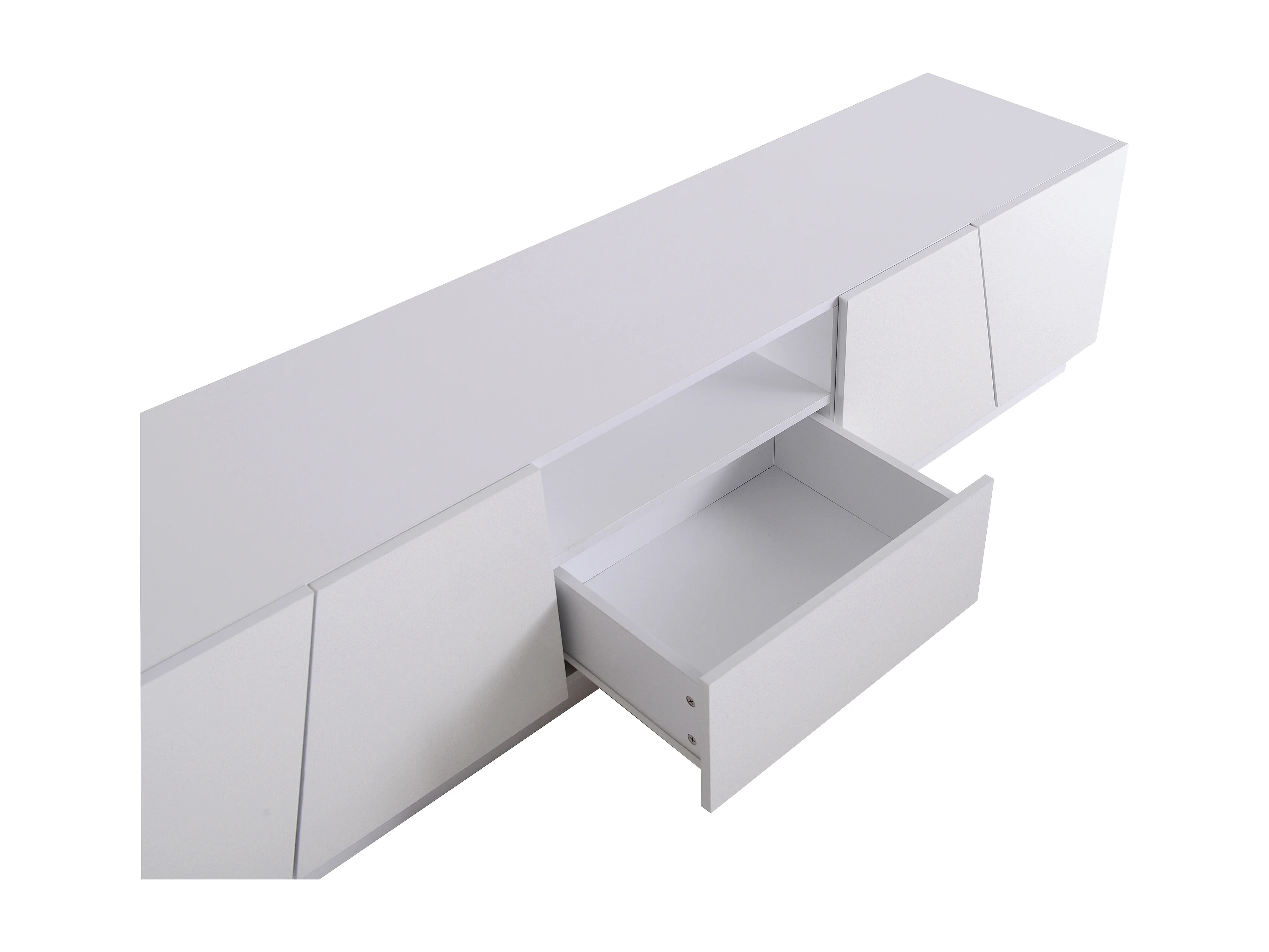 Meuble TV moderne 170 cm style patchwork diagonal. Design élégant et fonctionnel pour salon, rangement médias, télécommandes et accessoires sans encombre