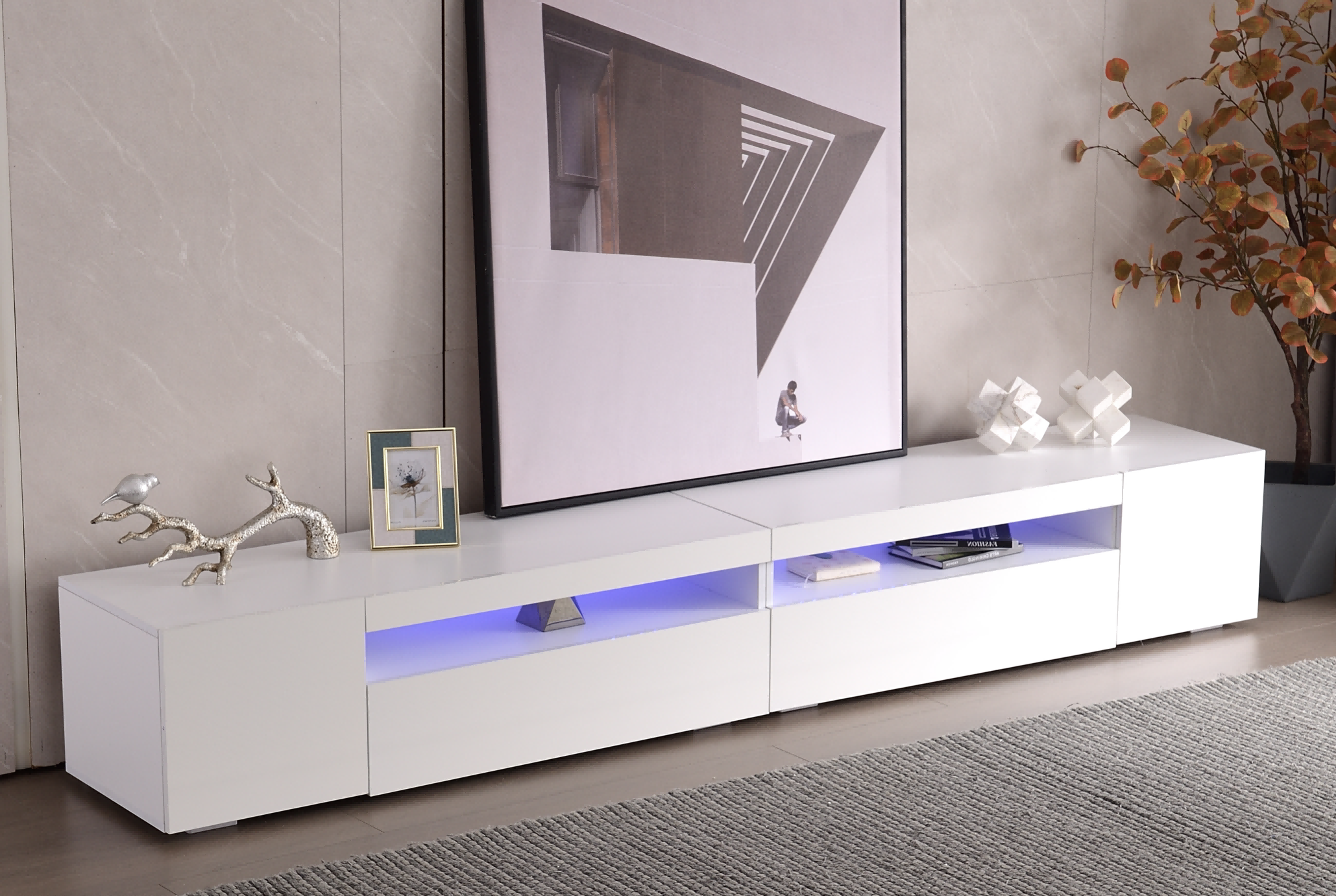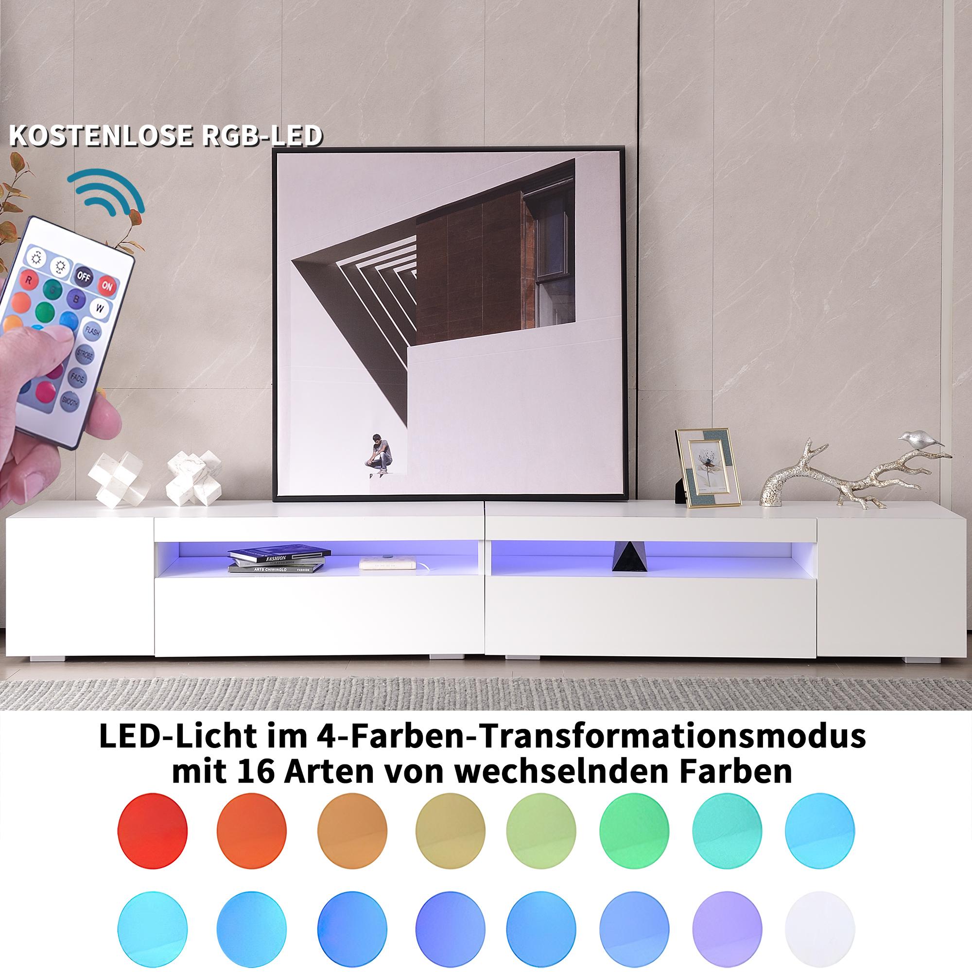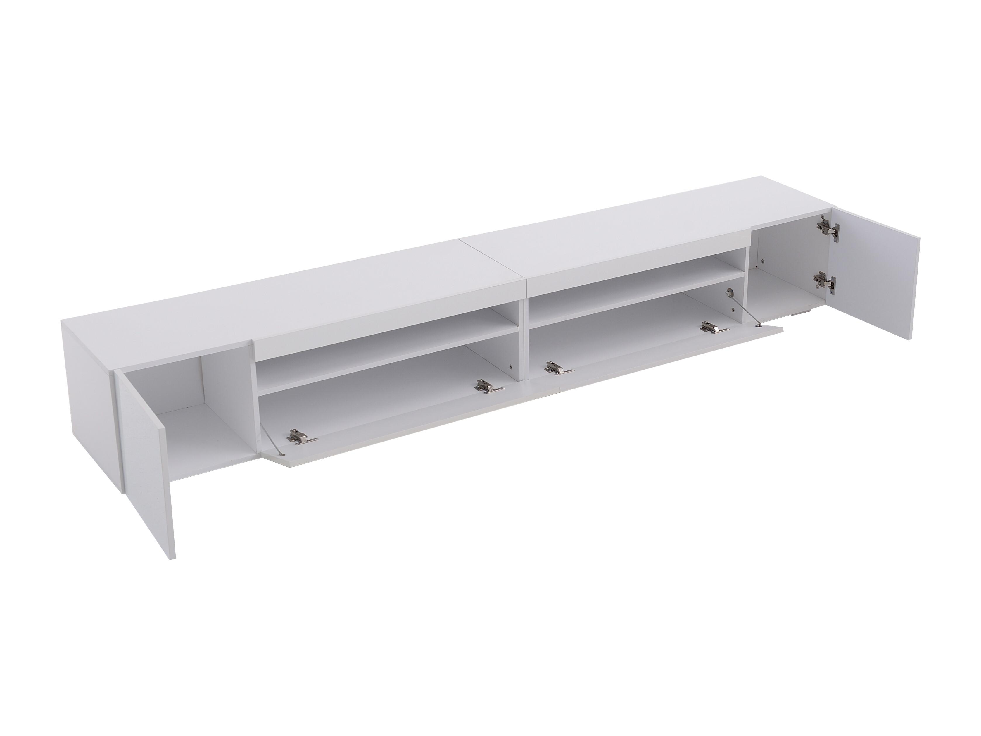 Meuble TV moderne 240x39x35 cm panneau lumineux LED variable - Blanc