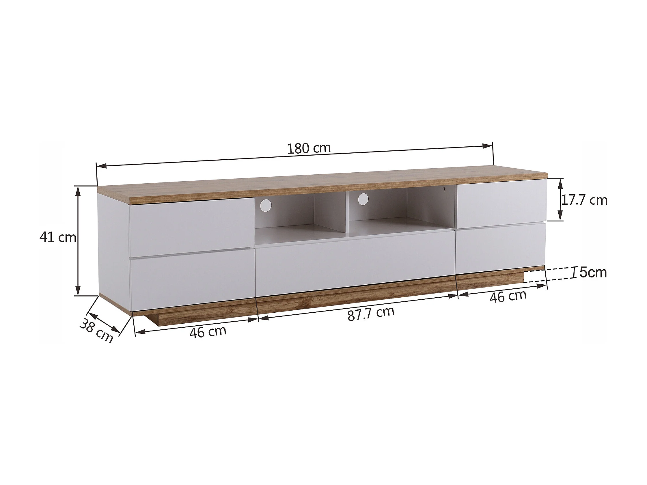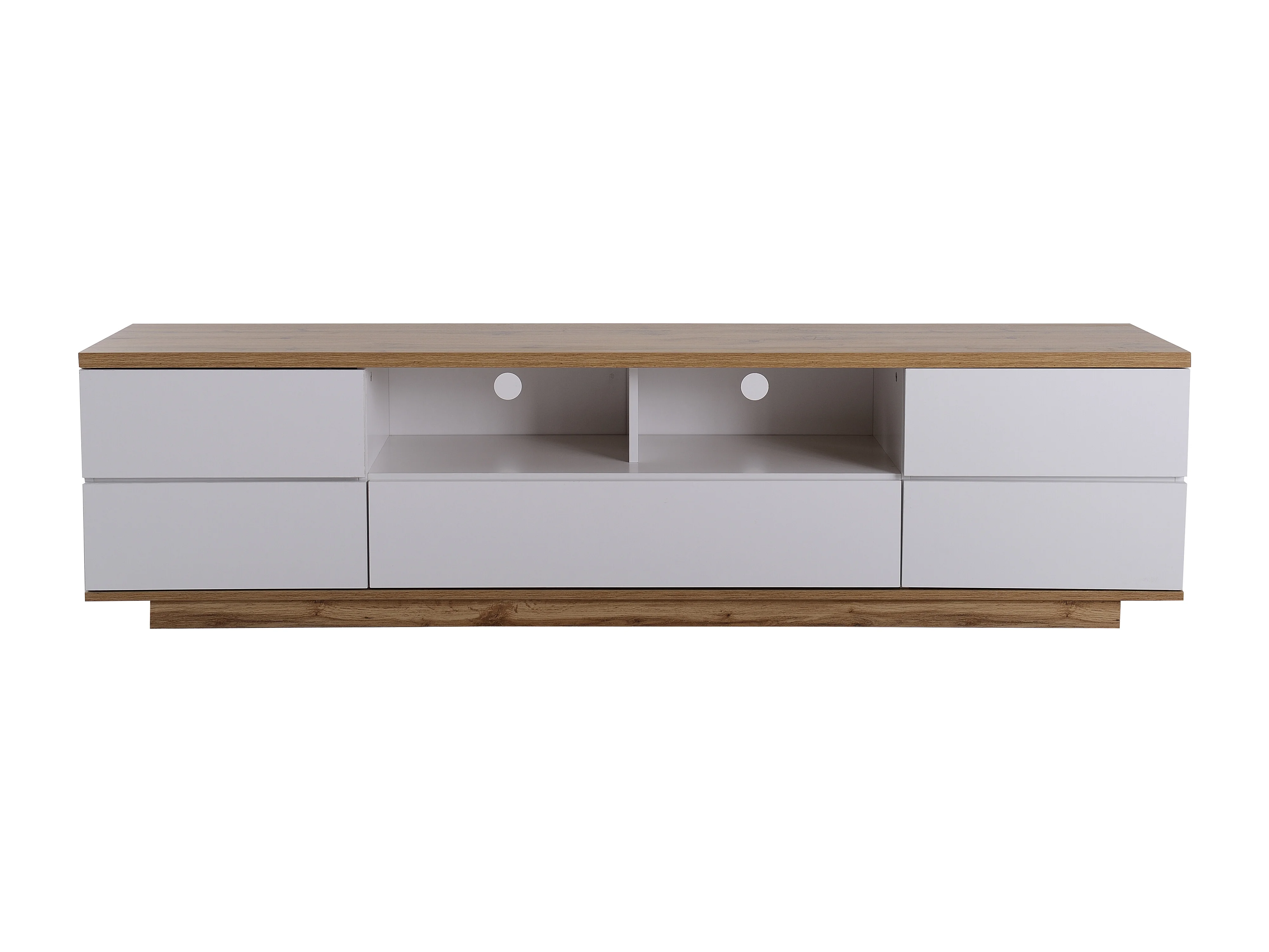 Meuble TV moderne à blocs de couleurs, finition blanche, avec motif bois, 180 cm