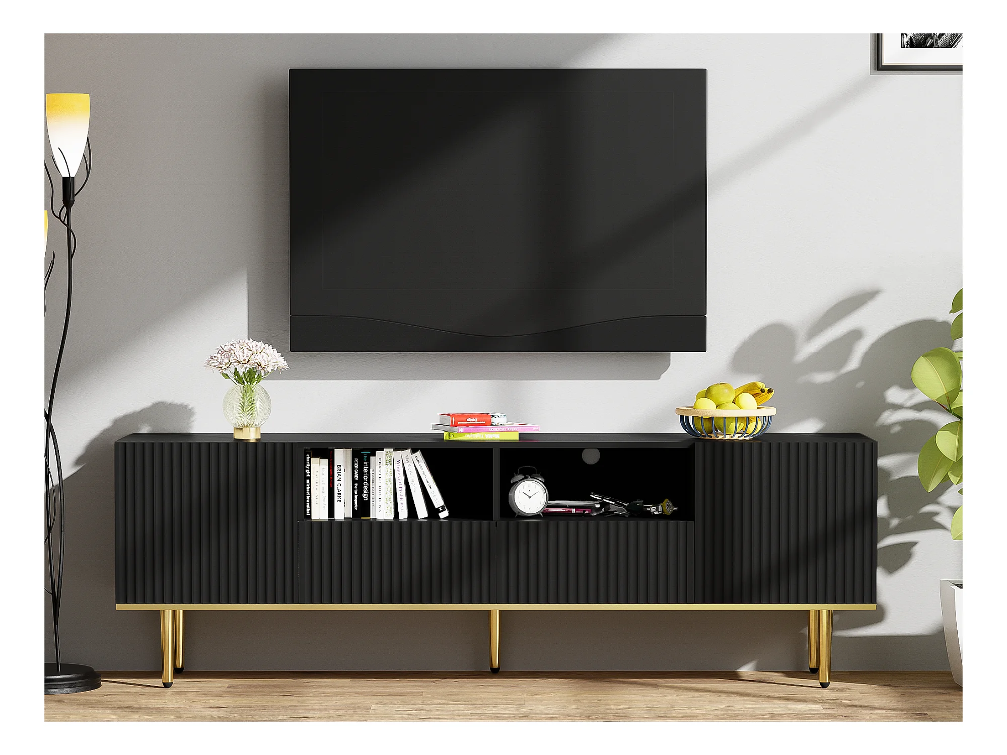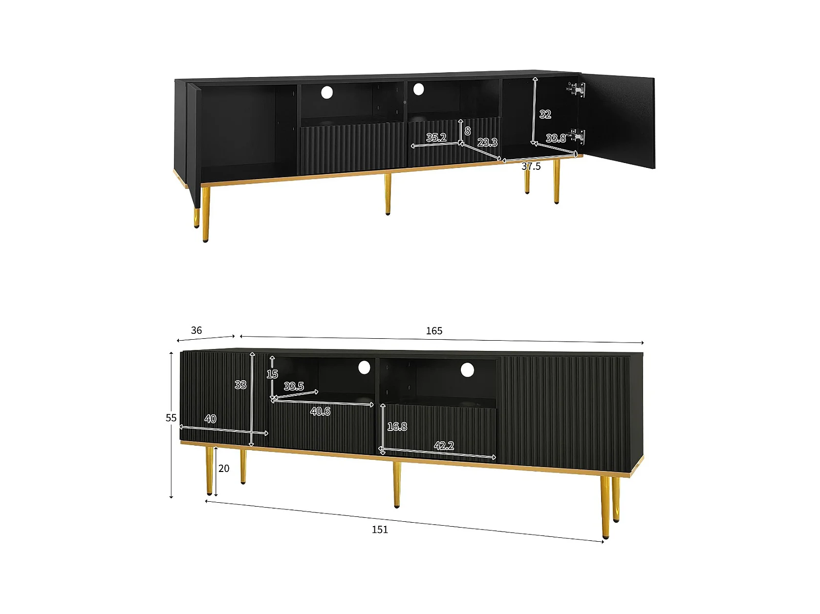 Meuble TV moderne - avec 2 portes et 2 tiroirs - pieds en métal - Noir