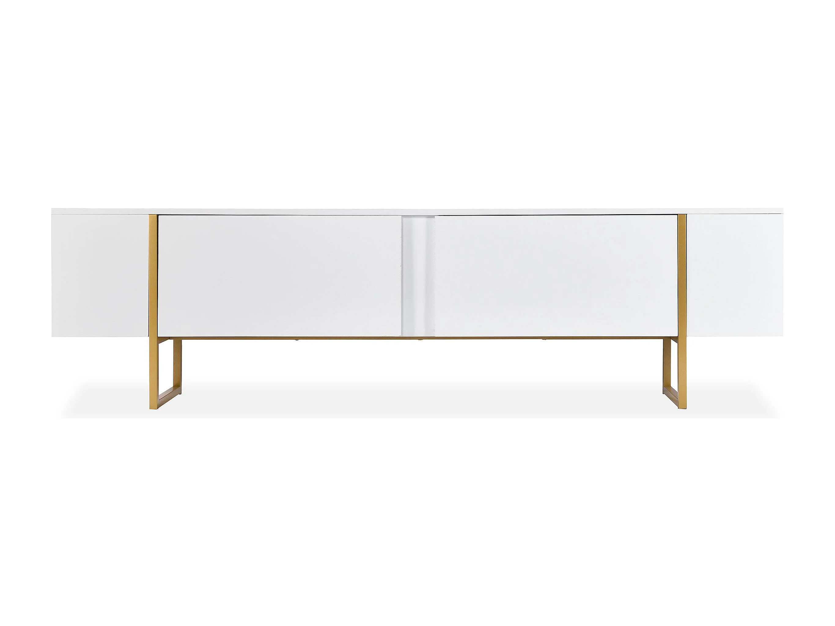 Meuble TV moderne avec 2 portes Valmain L180cm Blanc et Métal Or