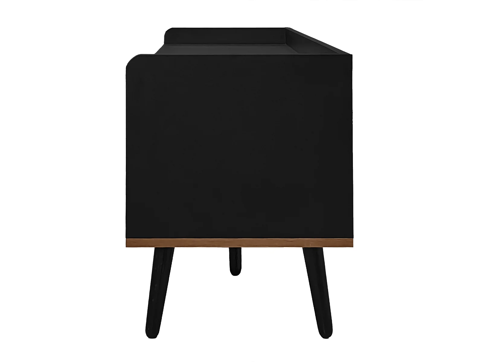 Meuble TV Moderne avec 3 Portes, Meuble Bas Finition Noire et Bois Naturel, 160x39x49.5cm