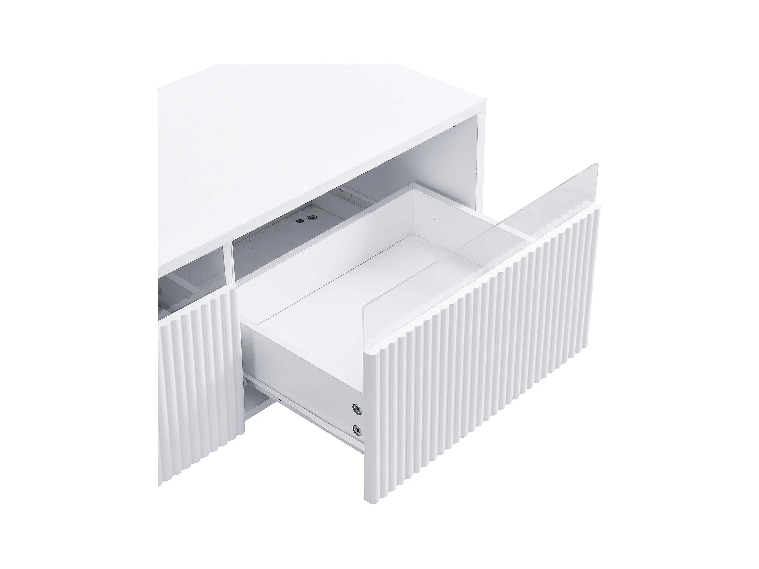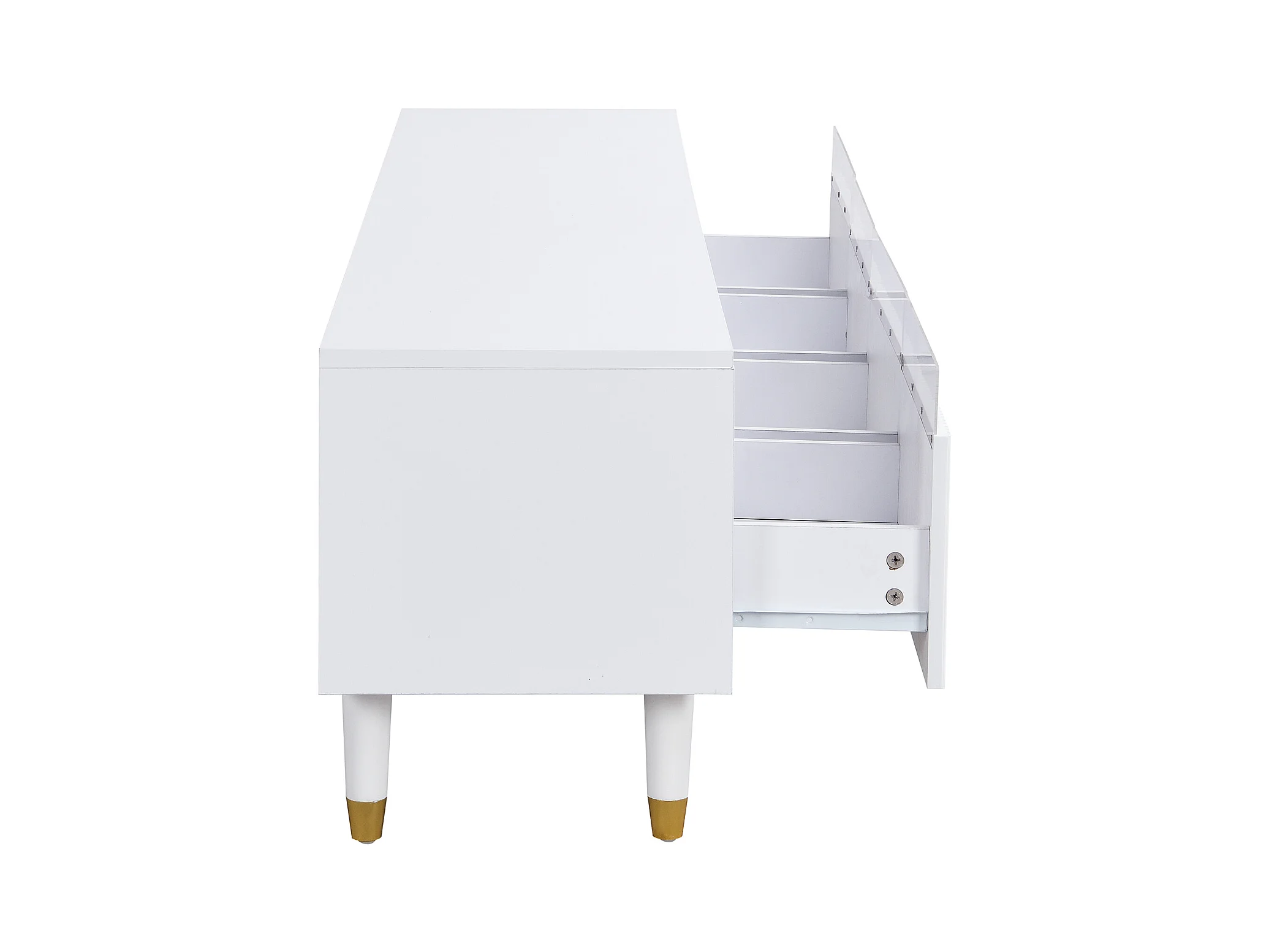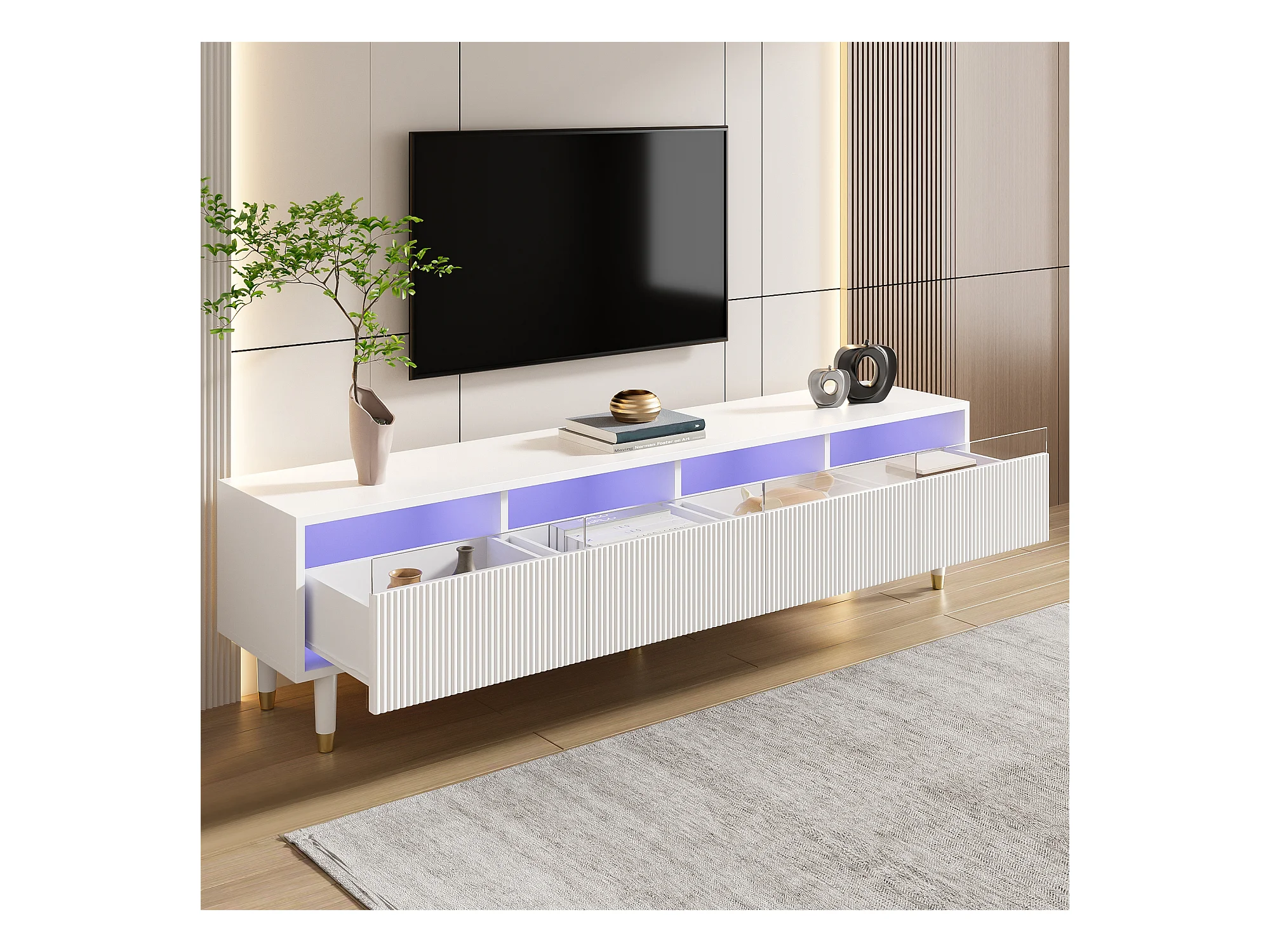 Meuble TV moderne blanc 178 cm – Design minimaliste, grand espace de rangement, 4 tiroirs, MDF et acrylique, idéal pour le salon, stable, élégant et polyvalent.