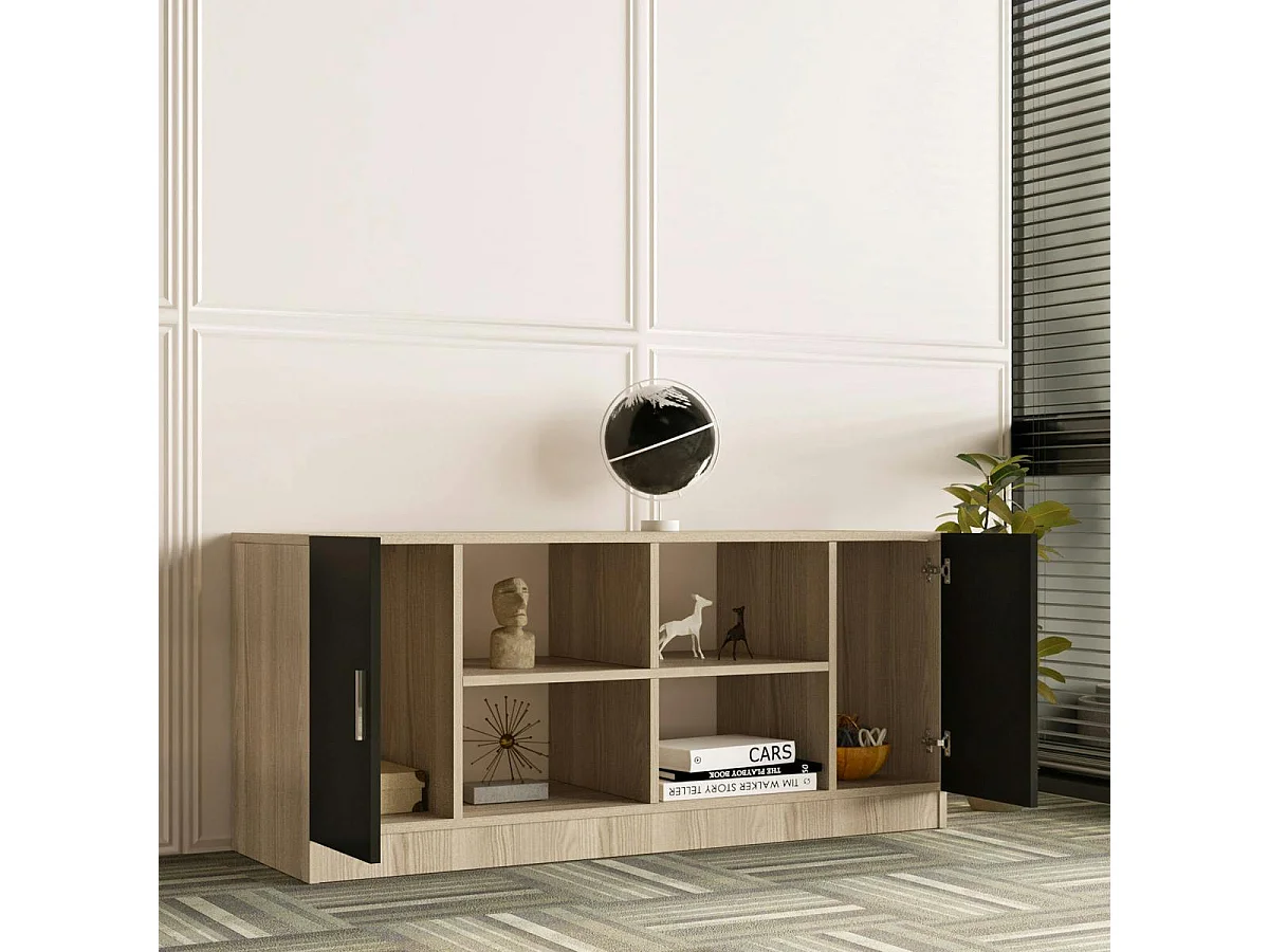 Meuble TV moderne décor bois 2 portes noires MARFA