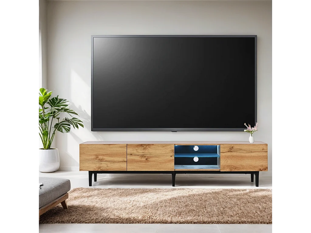 URBAN MEUBLE Meuble TV moderne effet grain de bois avec lumières LED variables