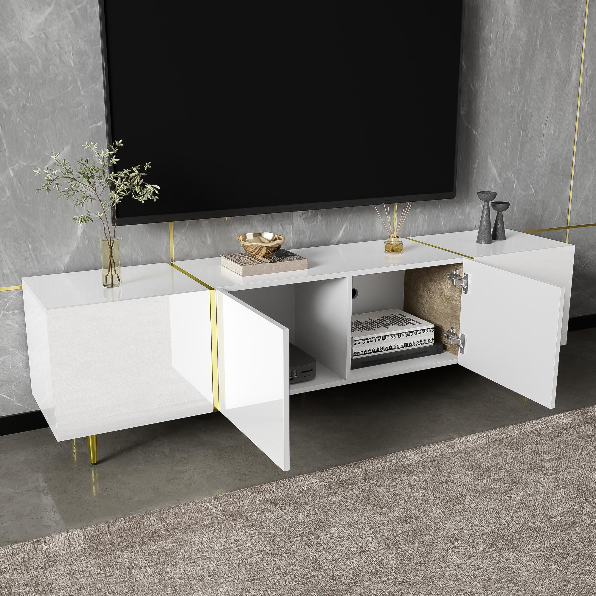 Meuble TV moderne et épuré à quatre portes en laqué blanc