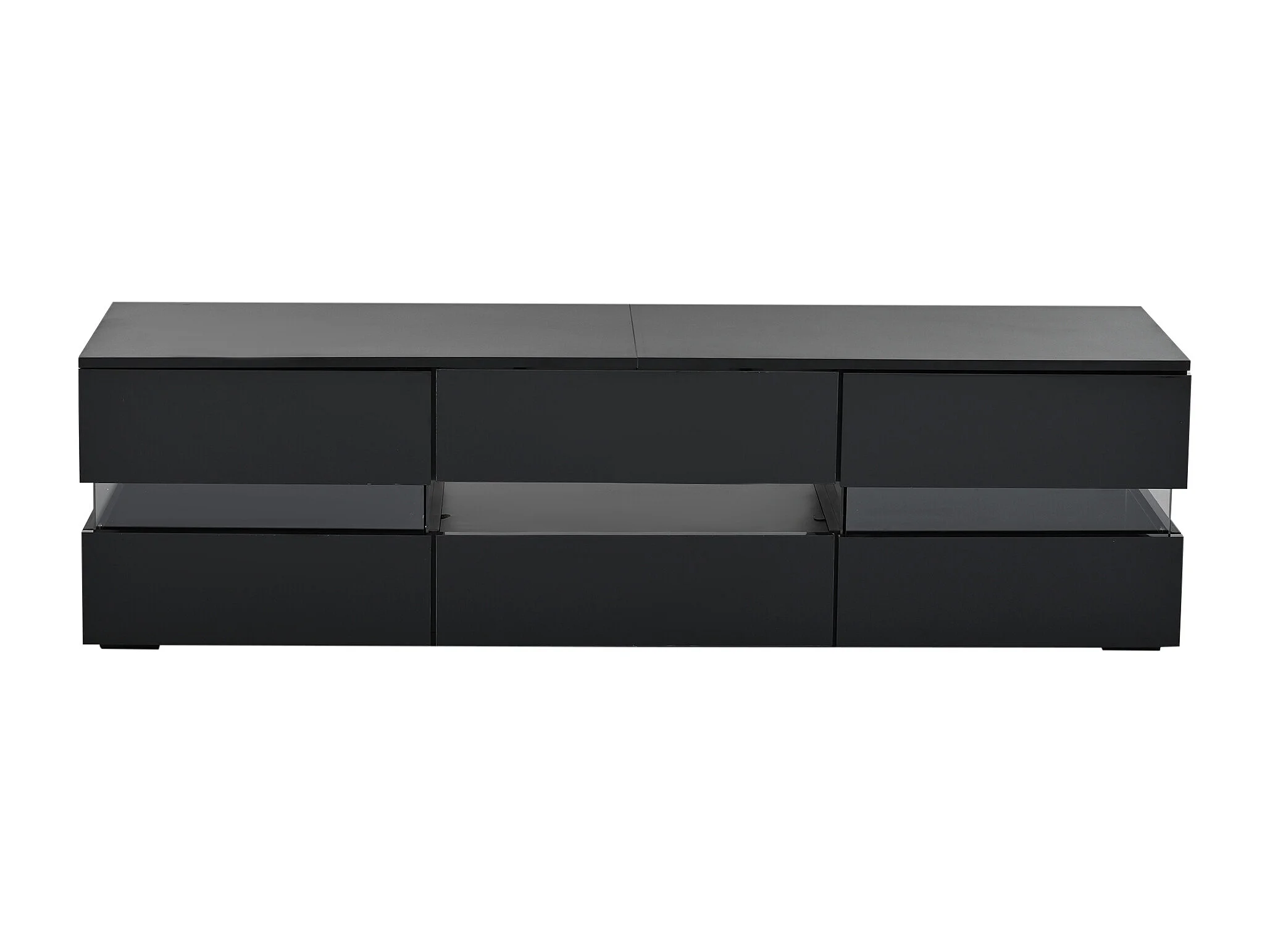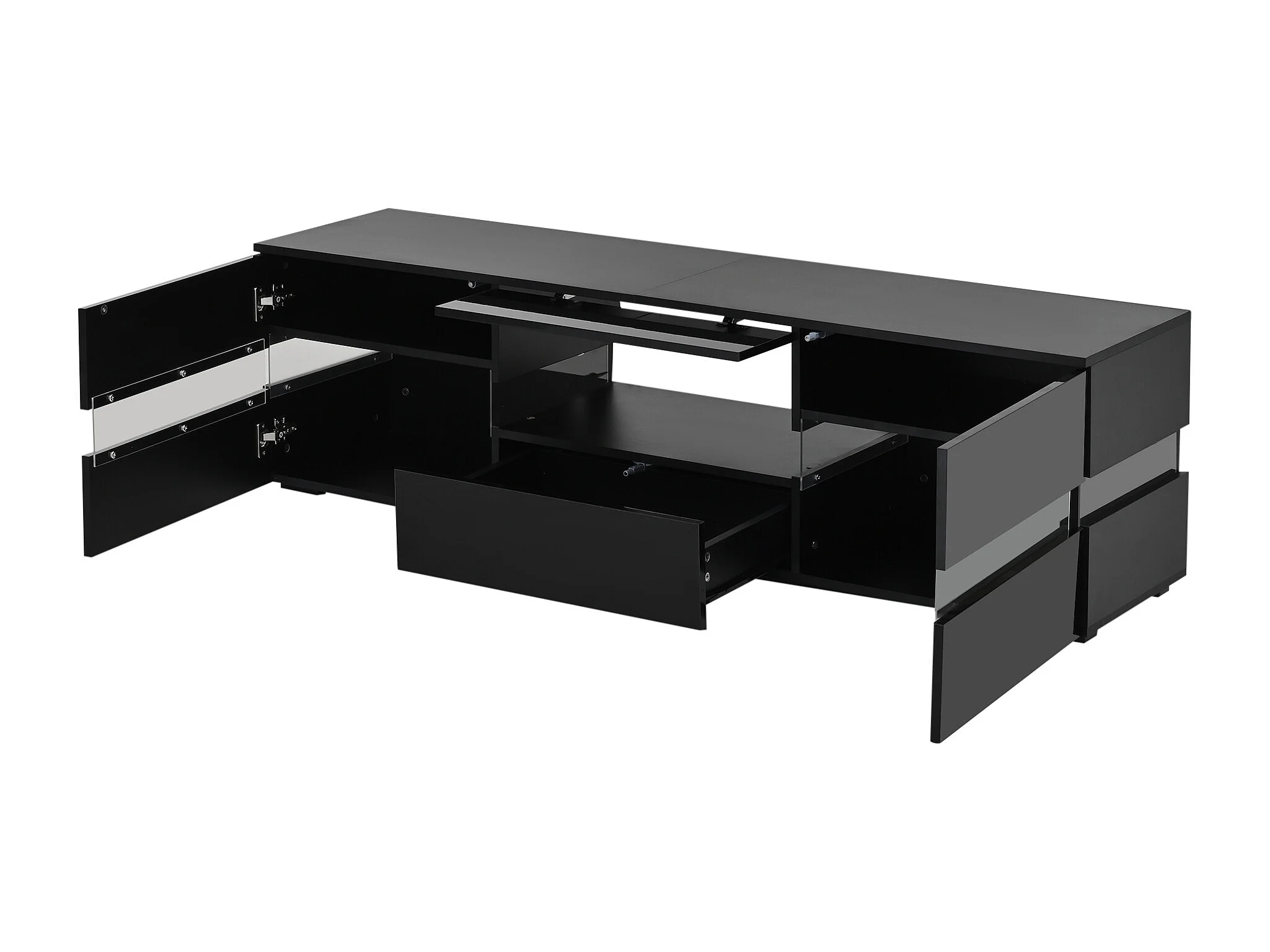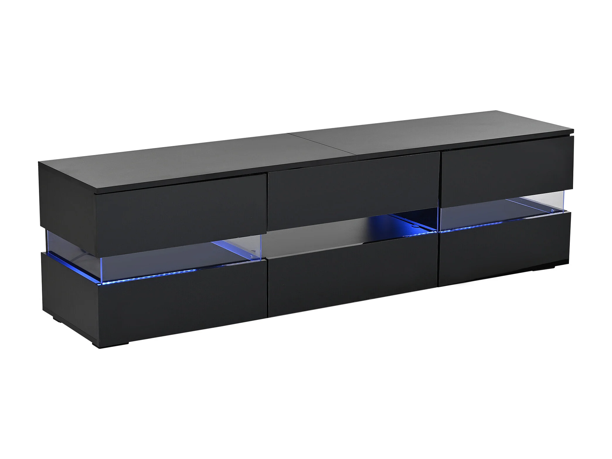 Meuble TV moderne laqué brillant avec LED, 2 portes et 1 tiroir - Noir