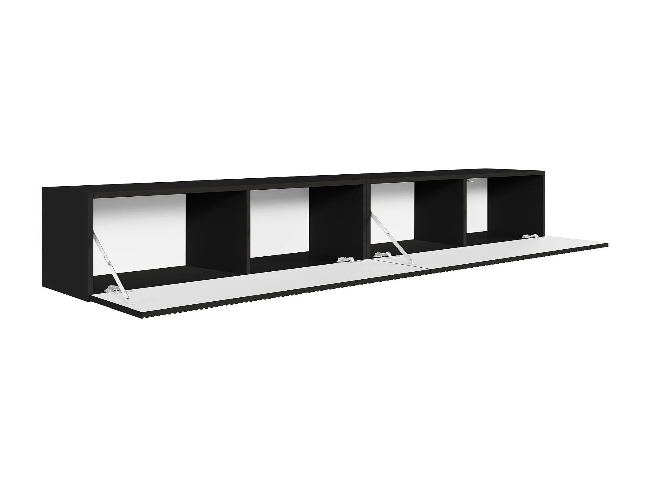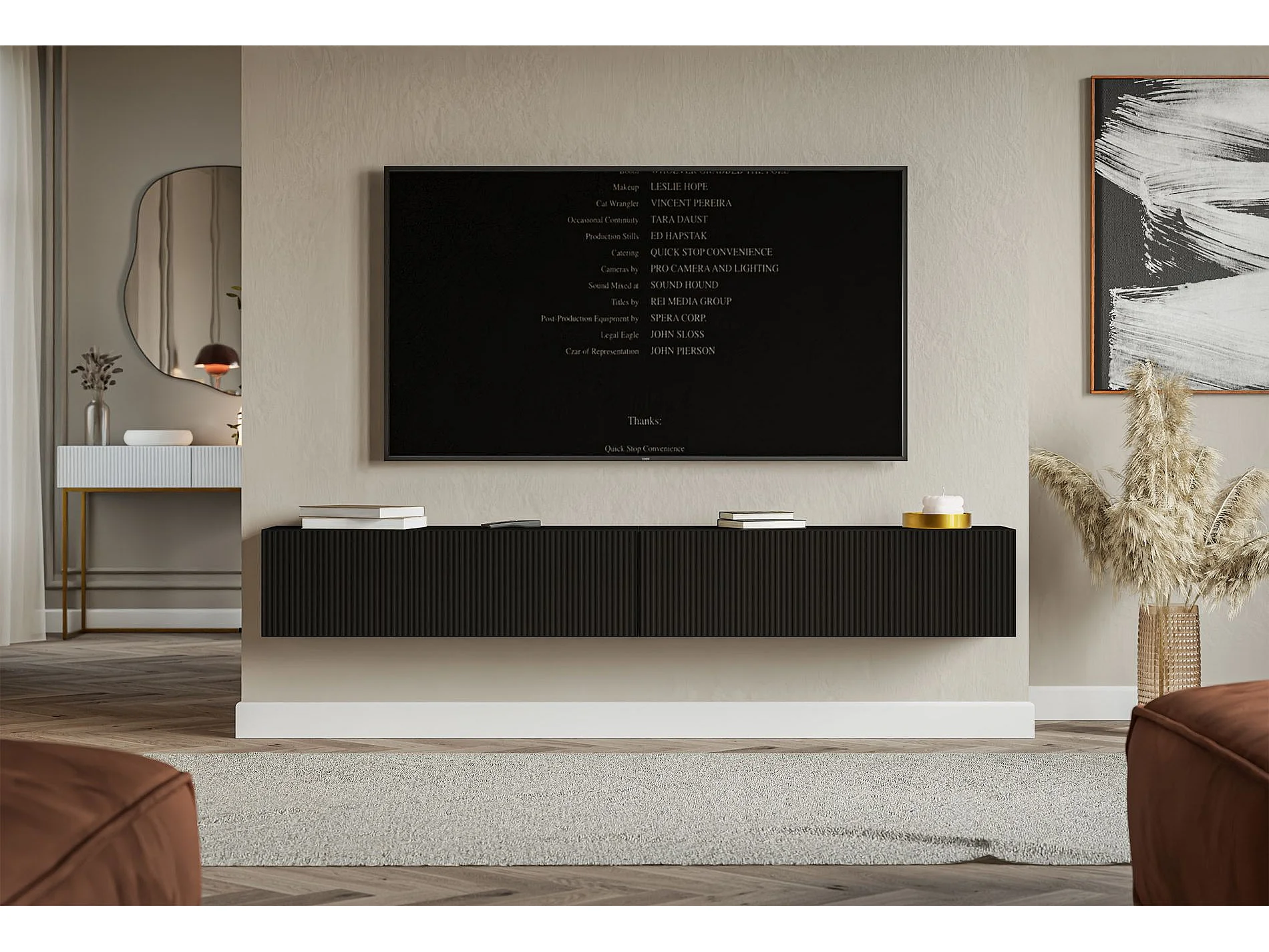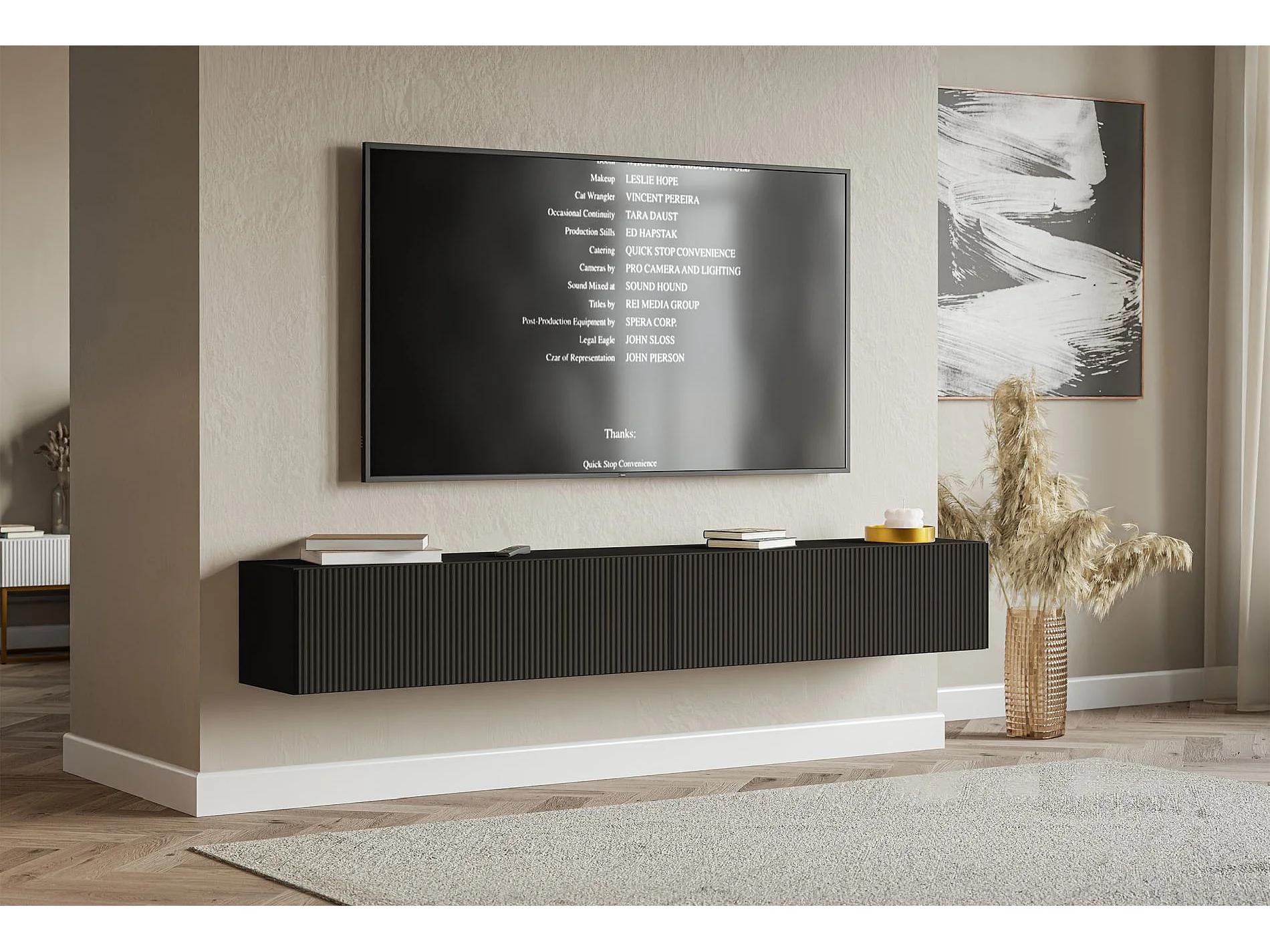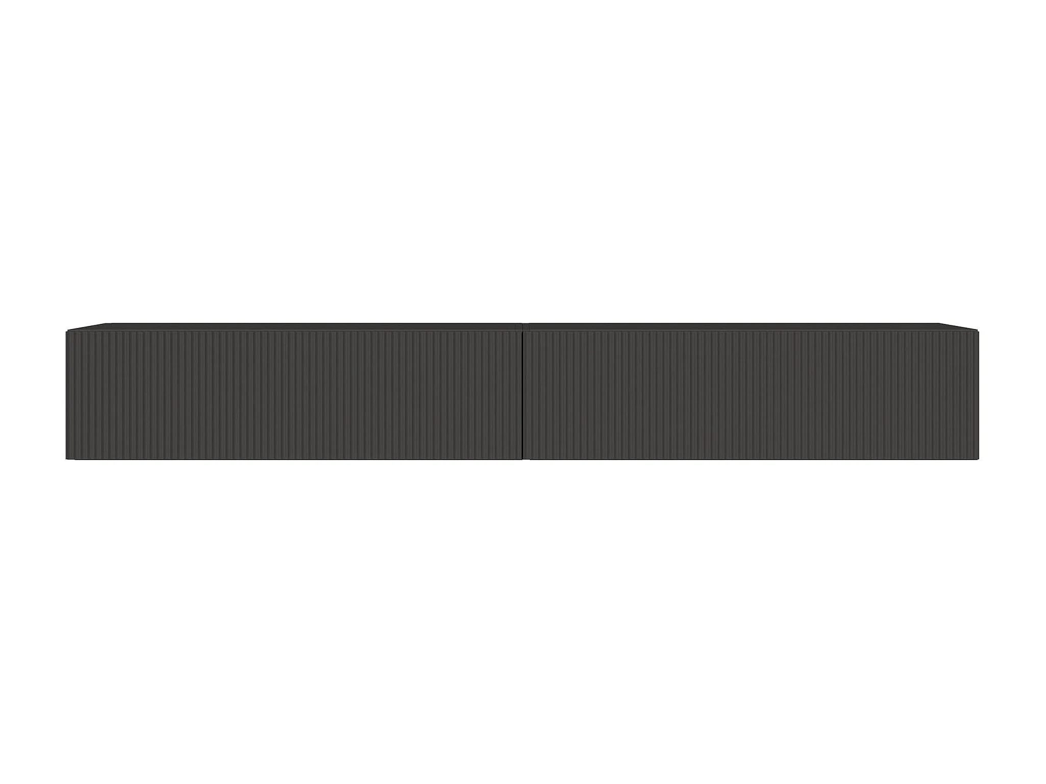 Meuble TV mural avec façades à lamelles rainurées – 2 portes – noir – 200 cm – VELDIO